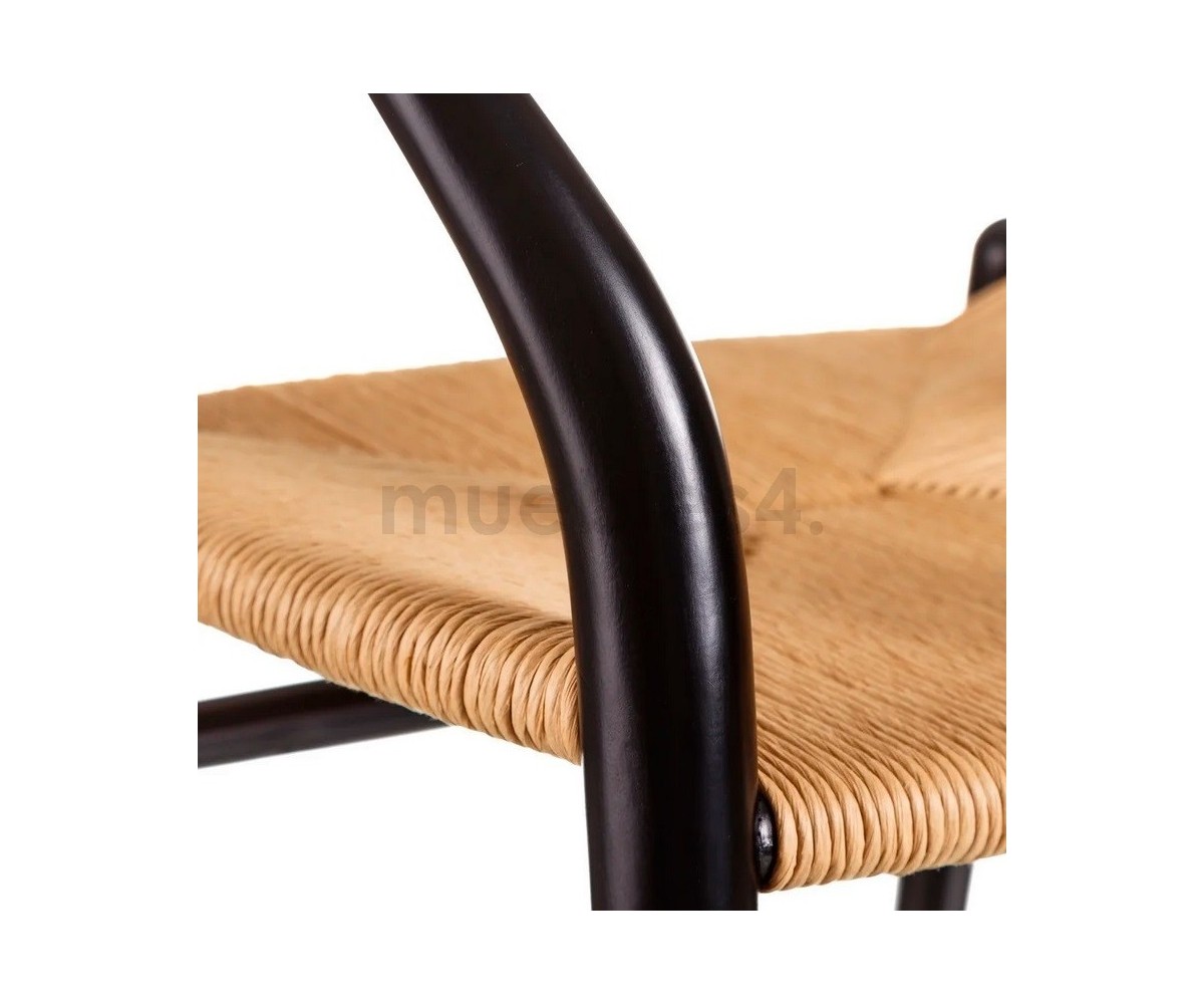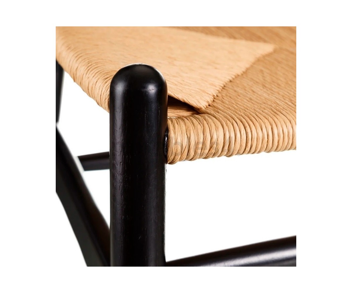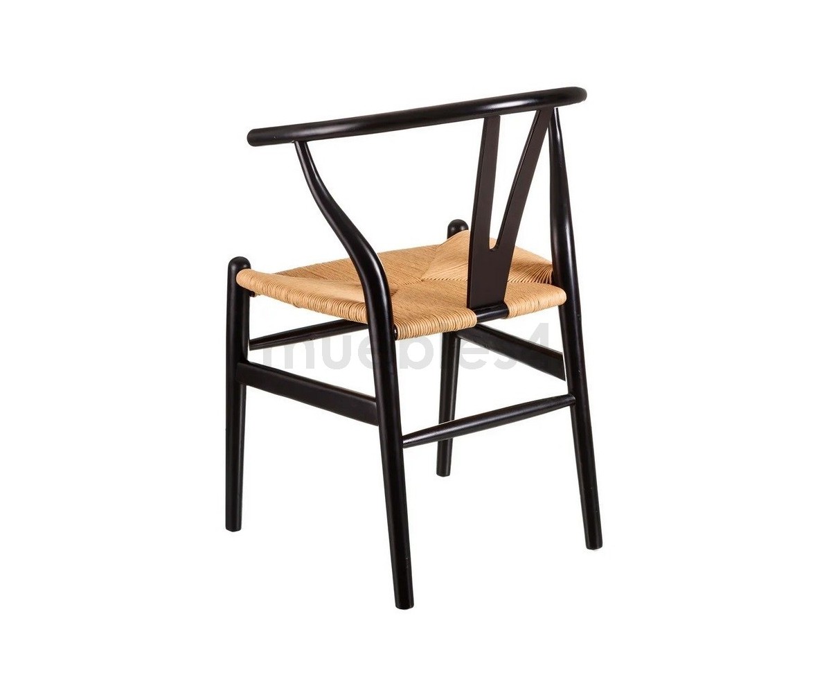 Silla inspirada en un diseño de Hans J. Wegner. Estructura fabricada en madera de abedul lacado color negro, asiento trenzada en enea color natural. Réplica exacta con materiales originales de máxima calidad.