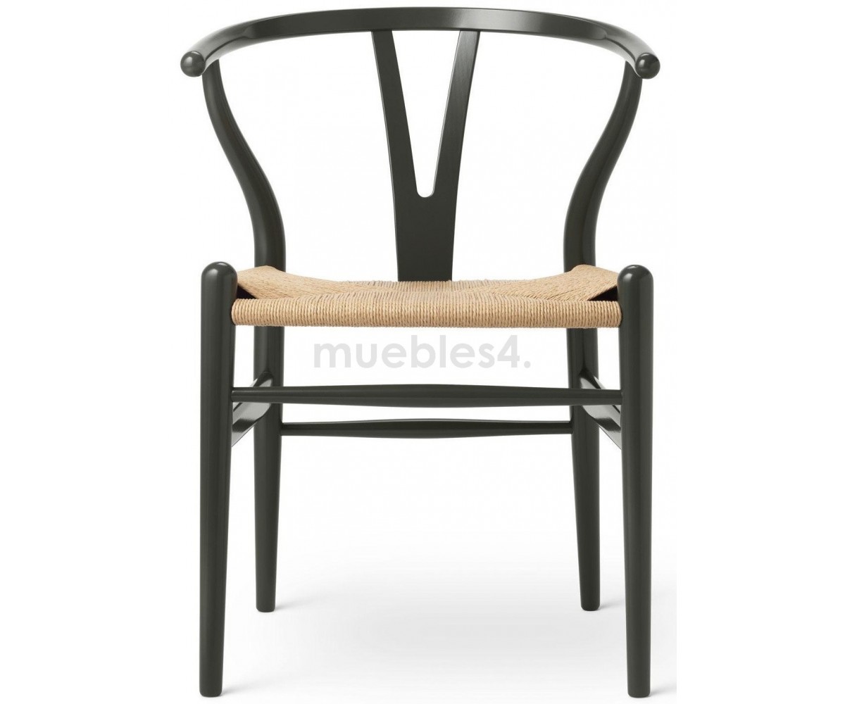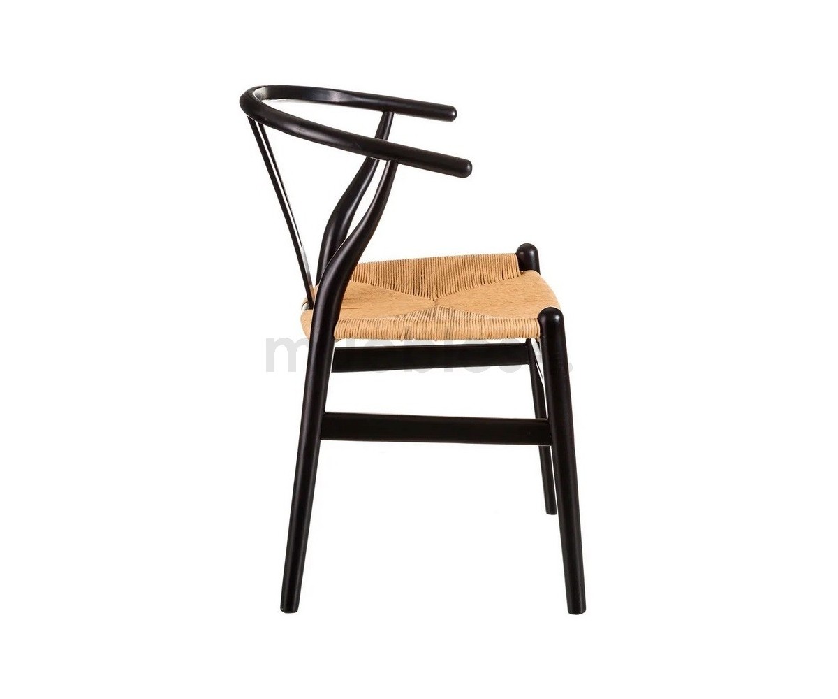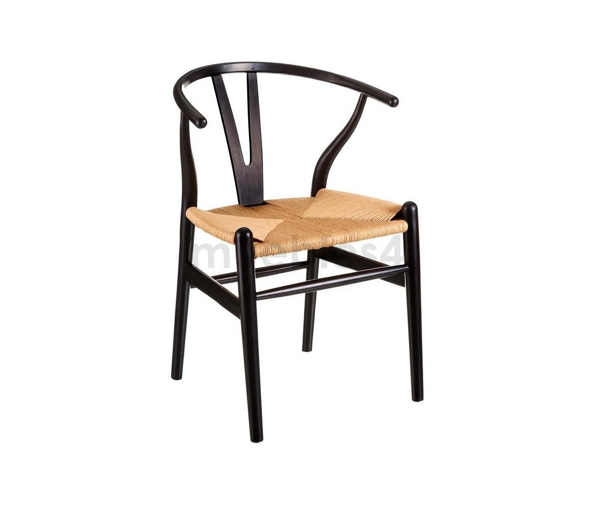 Silla inspirada en un diseño de Hans J. Wegner. Estructura fabricada en madera de abedul lacado color negro, asiento trenzada en enea color natural. Réplica exacta con materiales originales de máxima calidad.