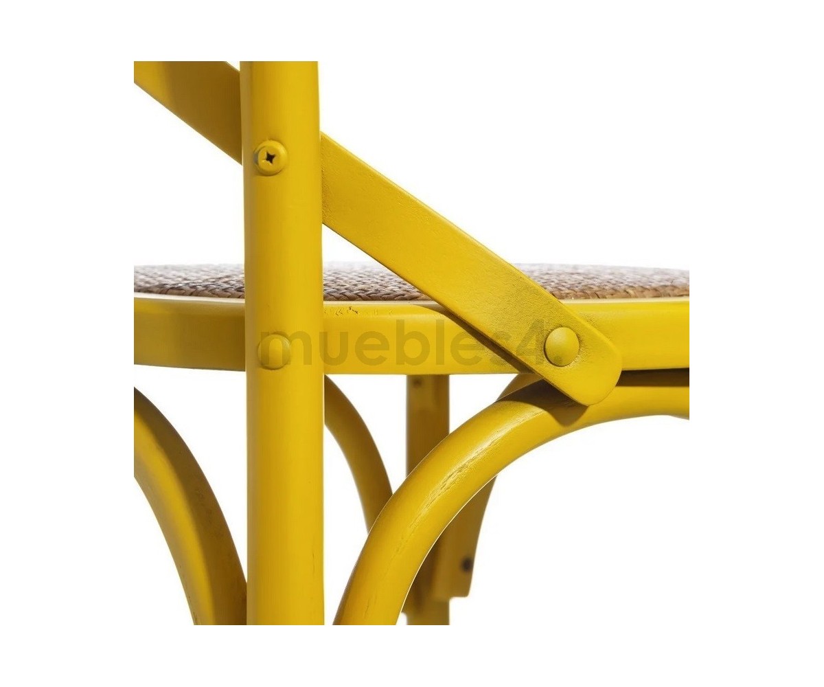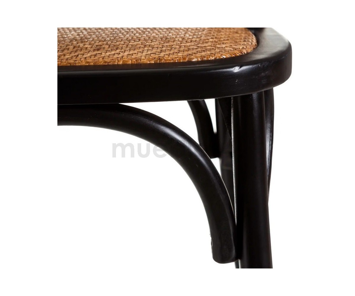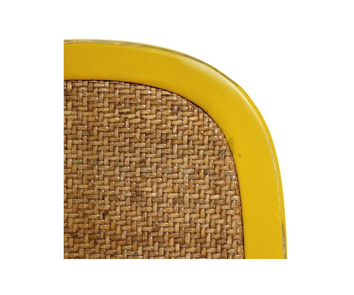 Silla inspirada en un diseño de Michael Thonet. Estructura fabricada en madera natual de olmo macizo, terminación TRIPLE lacado color negro, crema y amarillo. Asiento en rattán acolchado. Réplica exacta con materiales originales de máxima calidad.