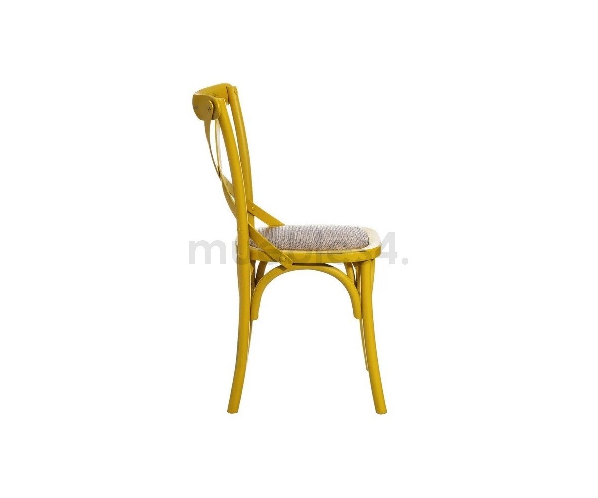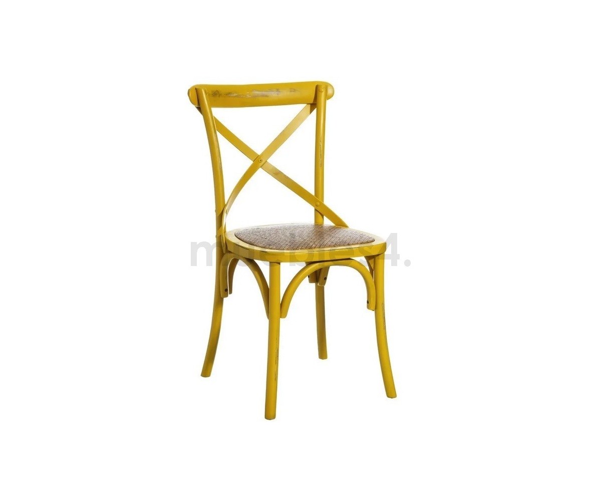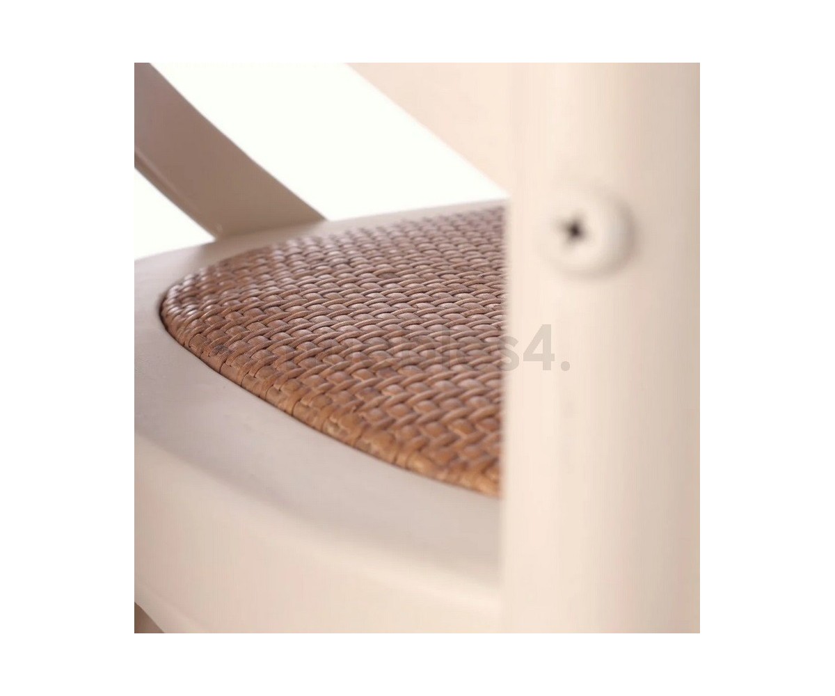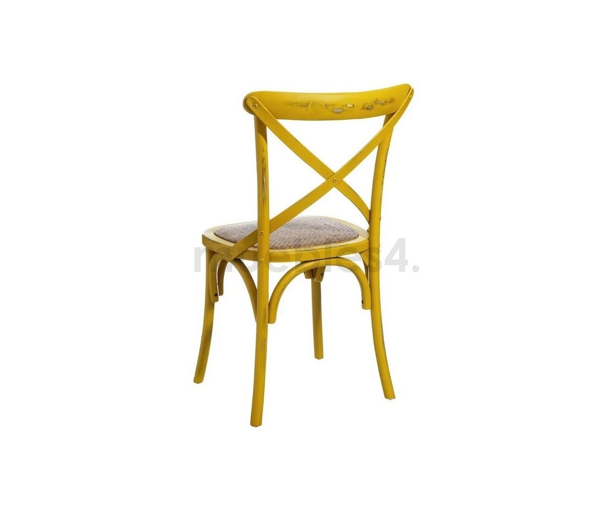 Silla inspirada en un diseño de Michael Thonet. Estructura fabricada en madera natual de olmo macizo, terminación TRIPLE lacado color negro, crema y amarillo. Asiento en rattán acolchado. Réplica exacta con materiales originales de máxima calidad.