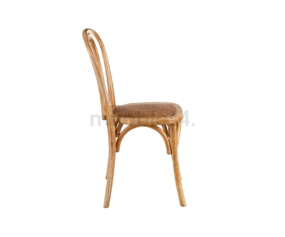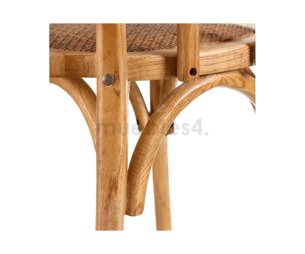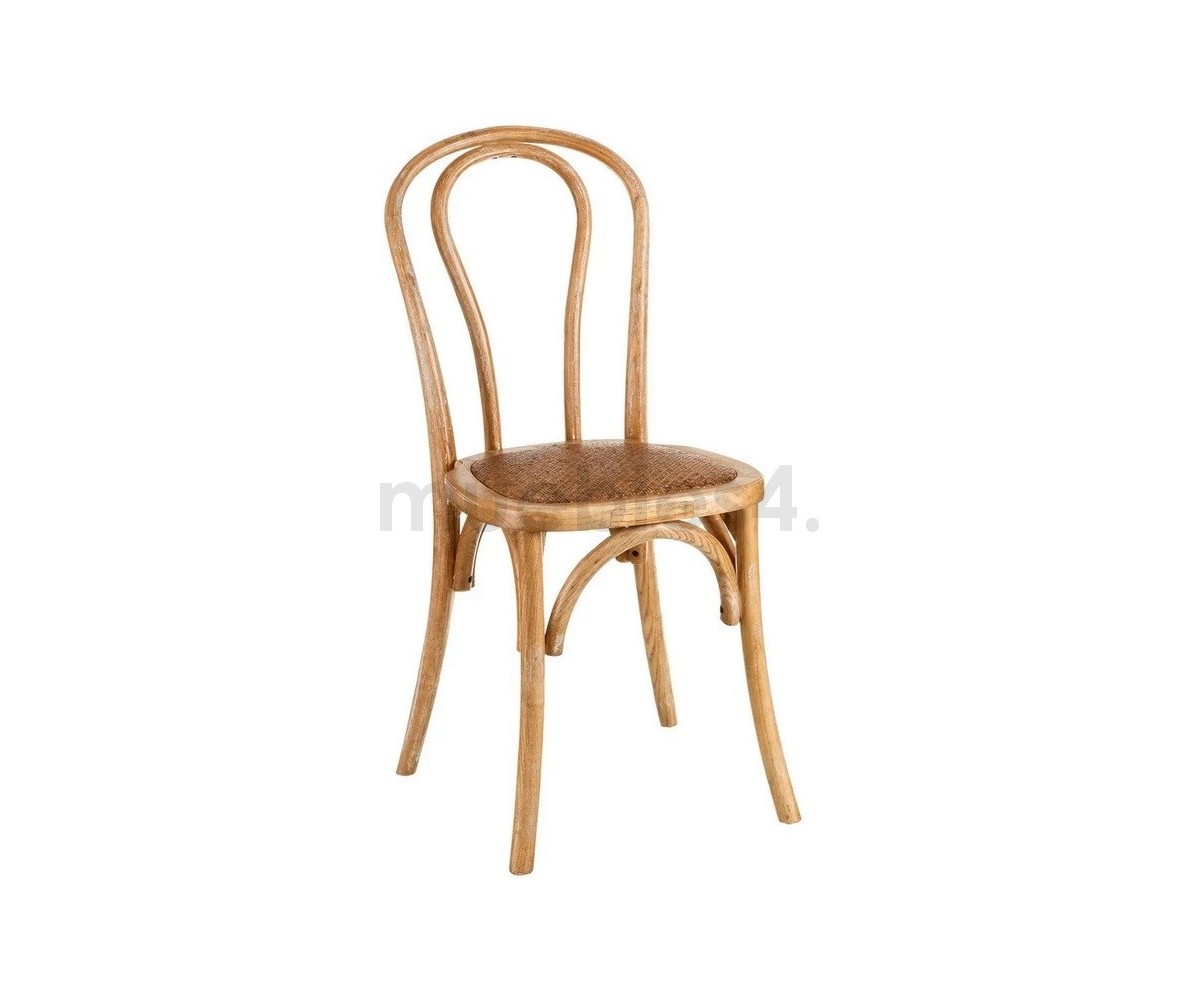Silla inspirada en un diseño de Michael Thonet. Estructura fabricada en madera natual de olmo macizo. Asiento en rattán natural. Réplica exacta con materiales originales de máxima calidad.