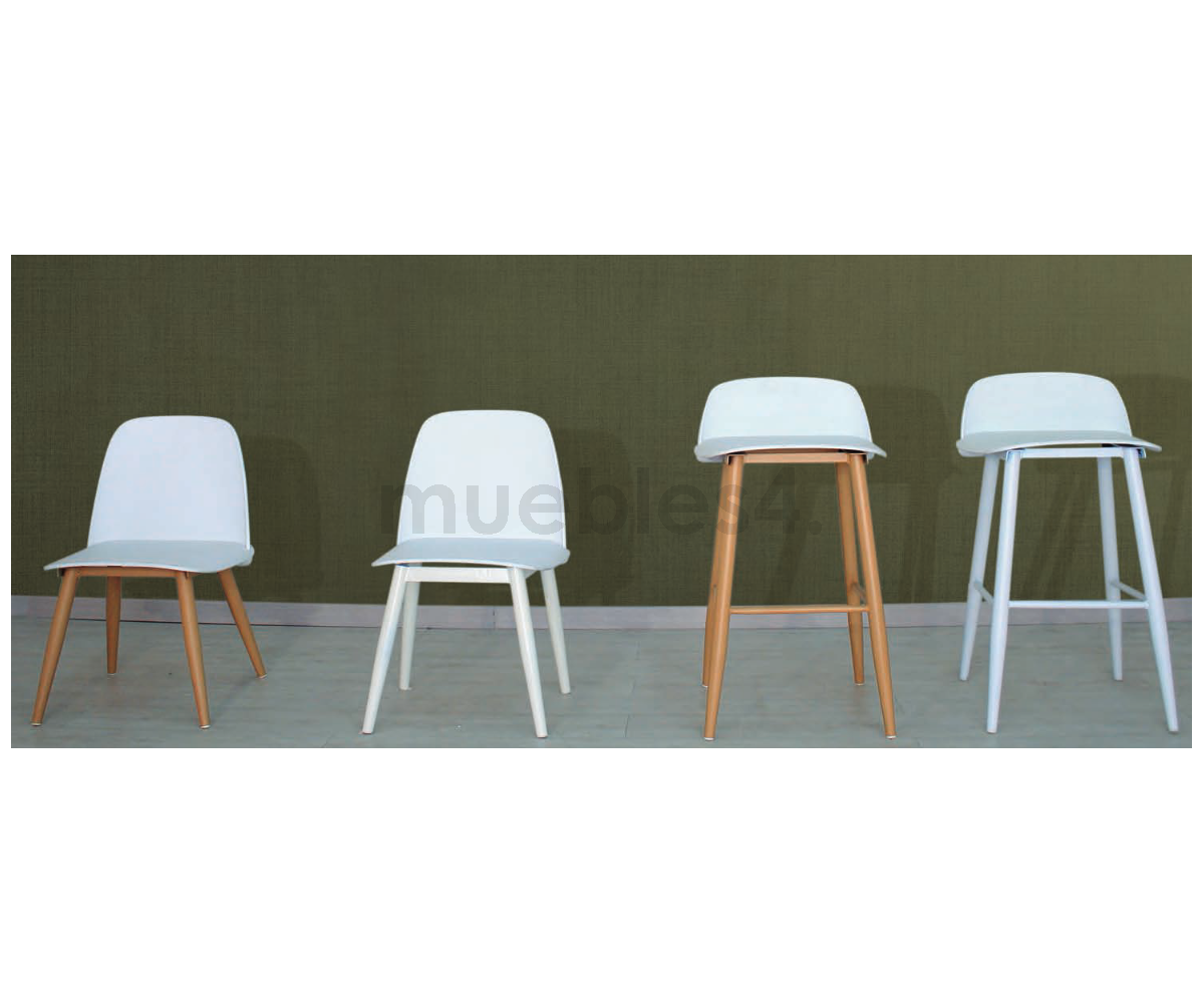 Silla inspirada en un diseño de David Geckeler. Carcasa fabricada en polipropileno inyectado de alta resistencia, disponible en color blanco. Estructura fabricada en acero de máxima calidad, lacado mismo color que la carcasa. También disponible en taburete. Réplica exacta con materiales originales de máxima calidad.