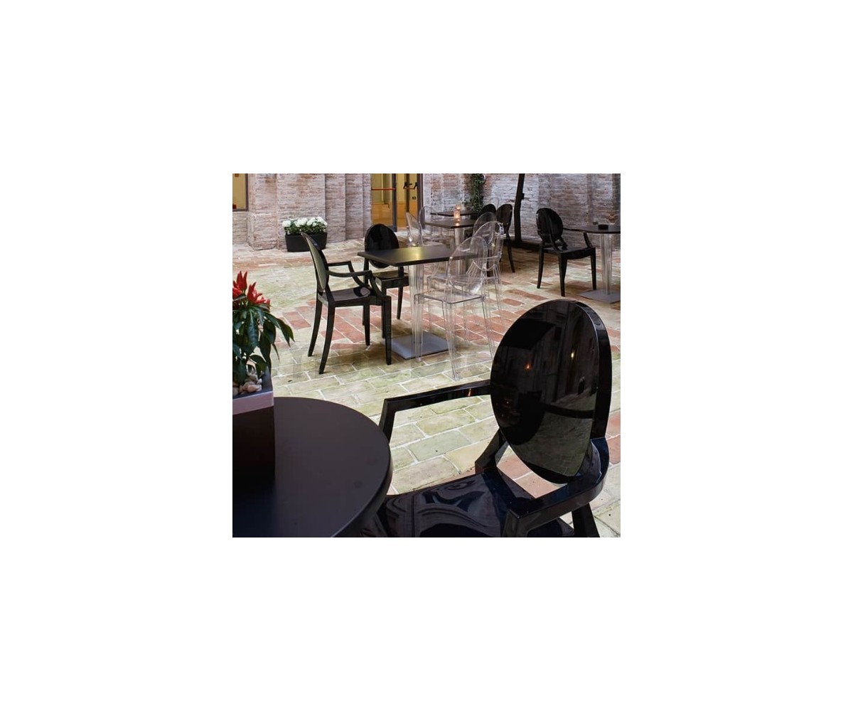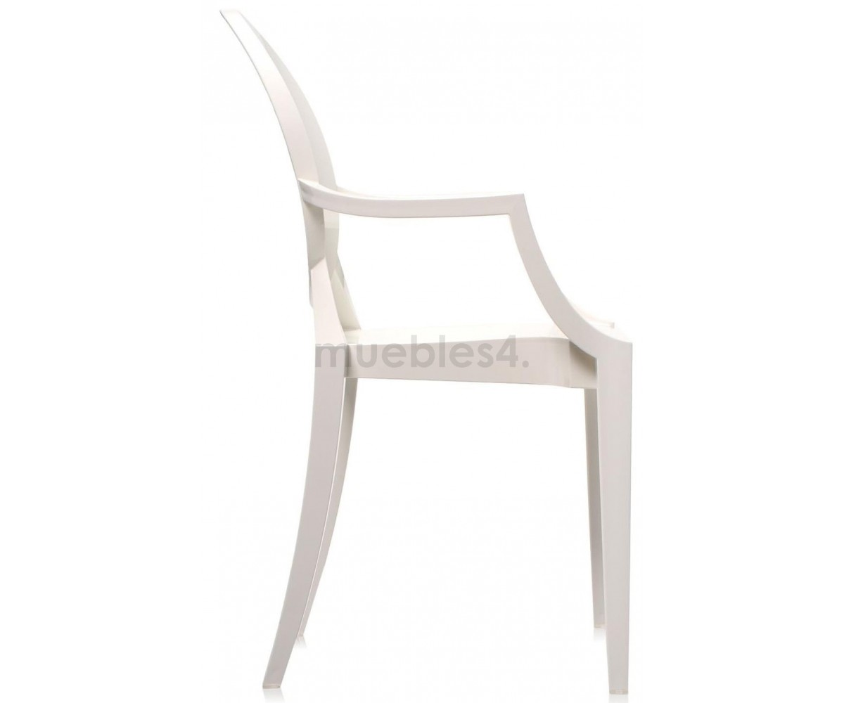 Silla inspirada en un diseño de Philippe Starck. Louis Ghost es la primera silla del mundo fabricada en policarbonato transparente. Icónica y atemporal, pieza de mobiliario de gran carisma y atractivo estético. El estilo barroco Luis XV se reexamina para asombrar, emocionar y fascinar; algo que, aunque parecía imposible, resultó ser sorprendentemente ingenioso e innovador.
