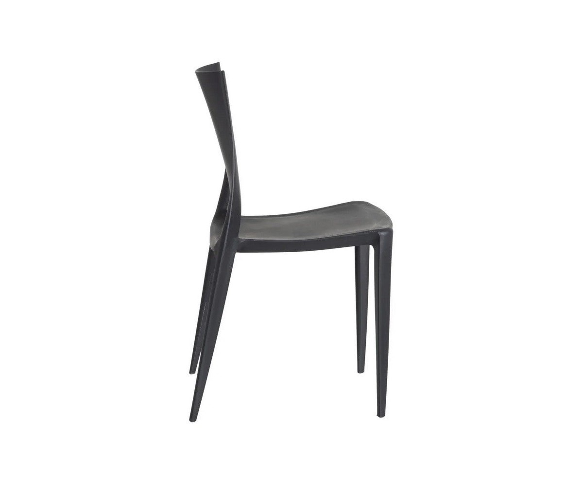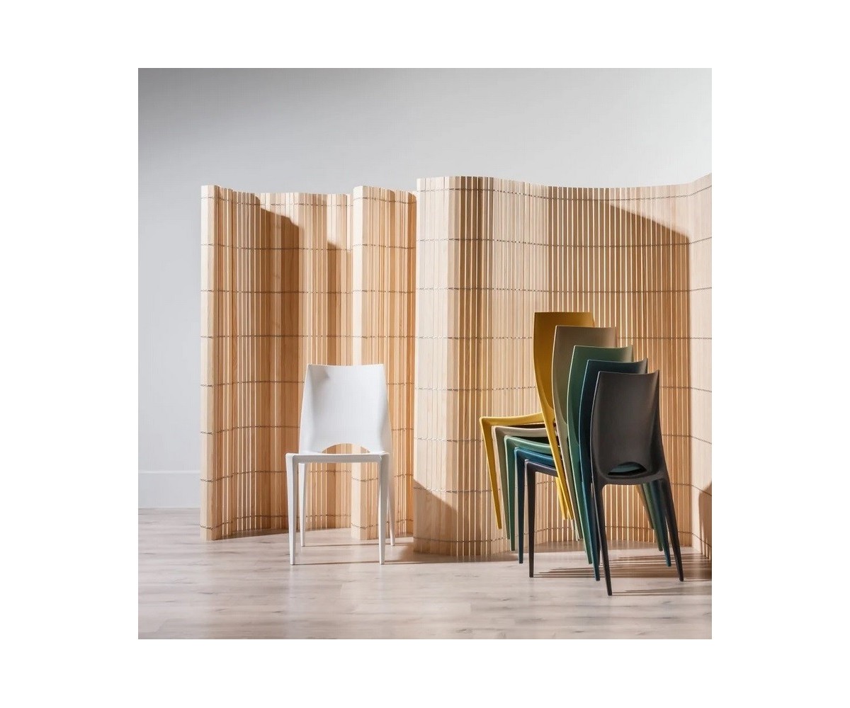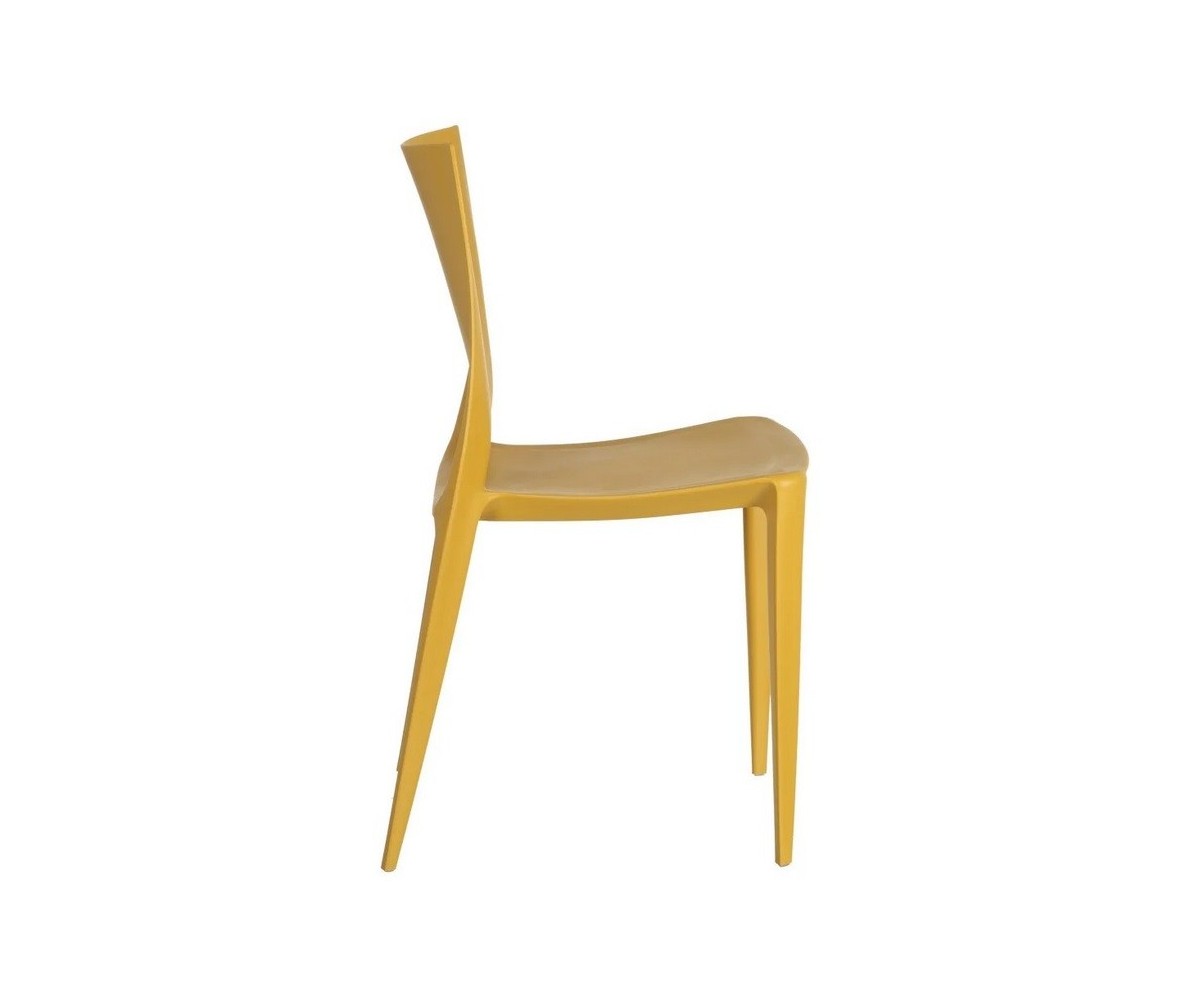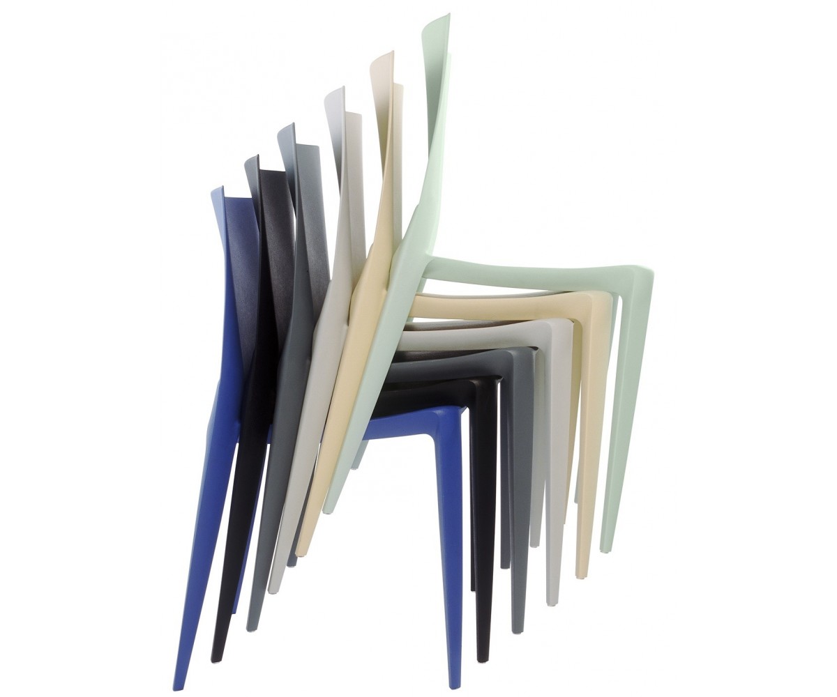 Silla inspirada en un diseño de Mario Bellini para Heller. Fabricada en polipropileno de gran dureza y durabilidad, silla modealbe por inyección, apilable. Uso interior y exterior. Respaldo con un grado de flexión que proporciona un gran confort. Superficie ligeramente texturizada, totalmente lavable. Disponible en color gris oscuro, blanco, marrón, amarillo, verde y turquesa. Réplica exacta con materiales originales de máxima calidad.