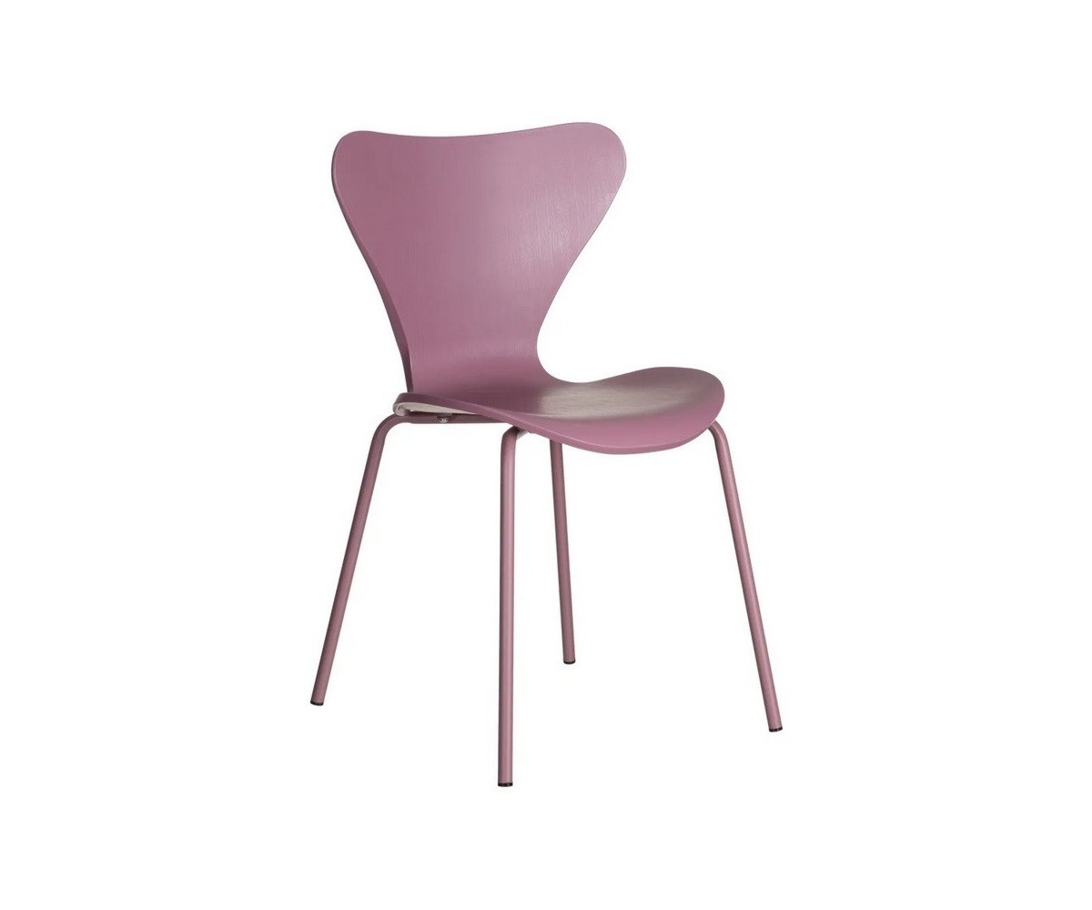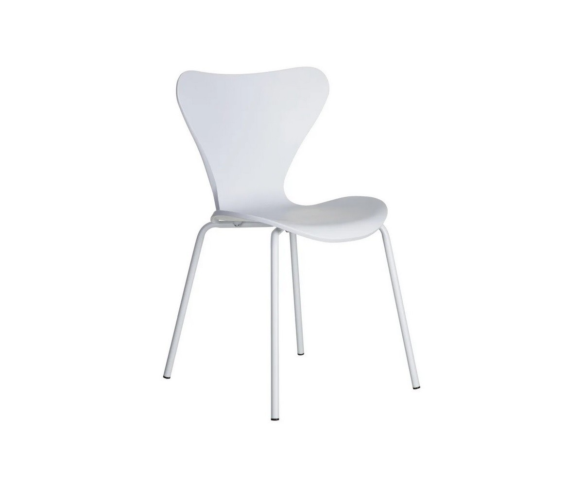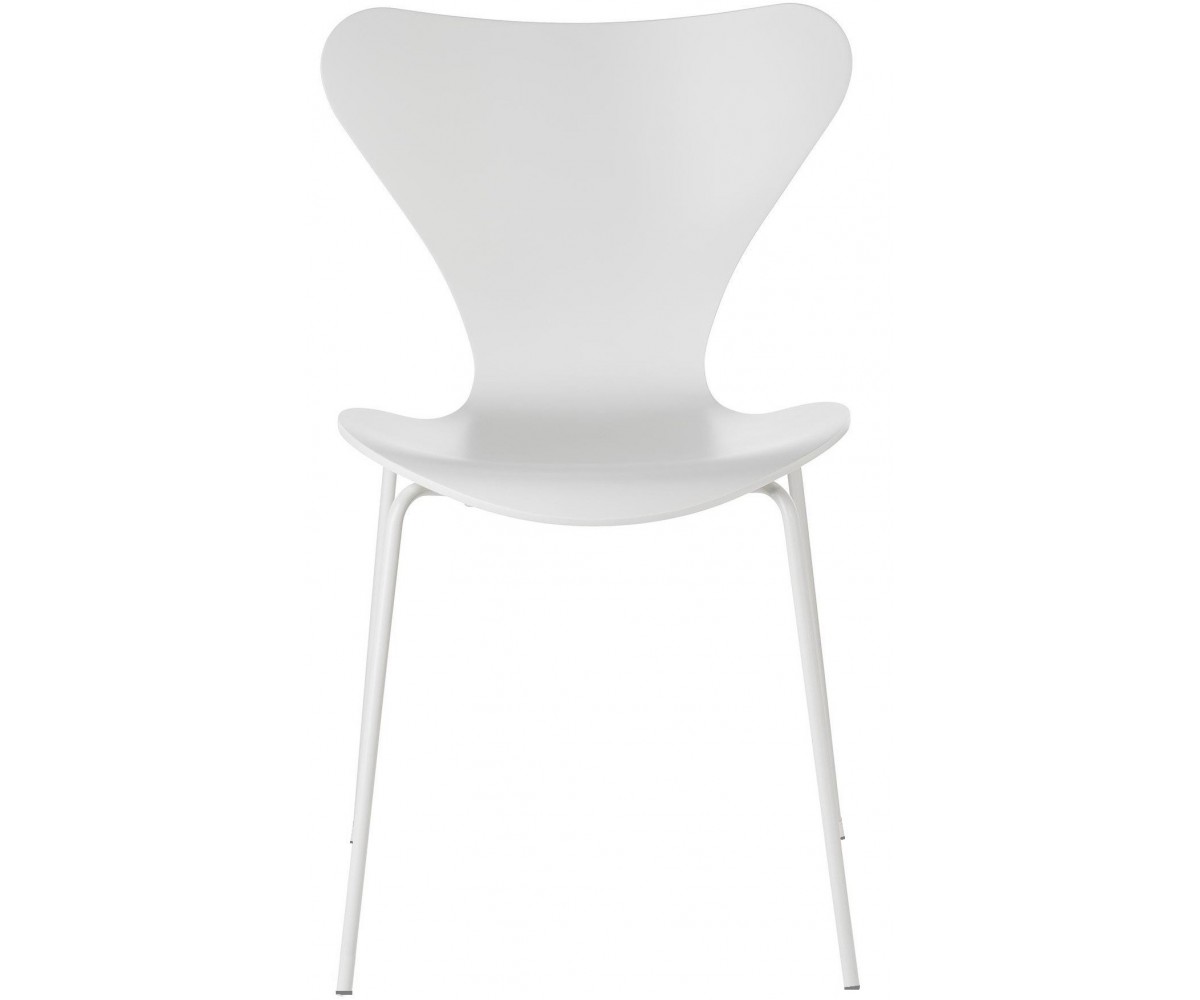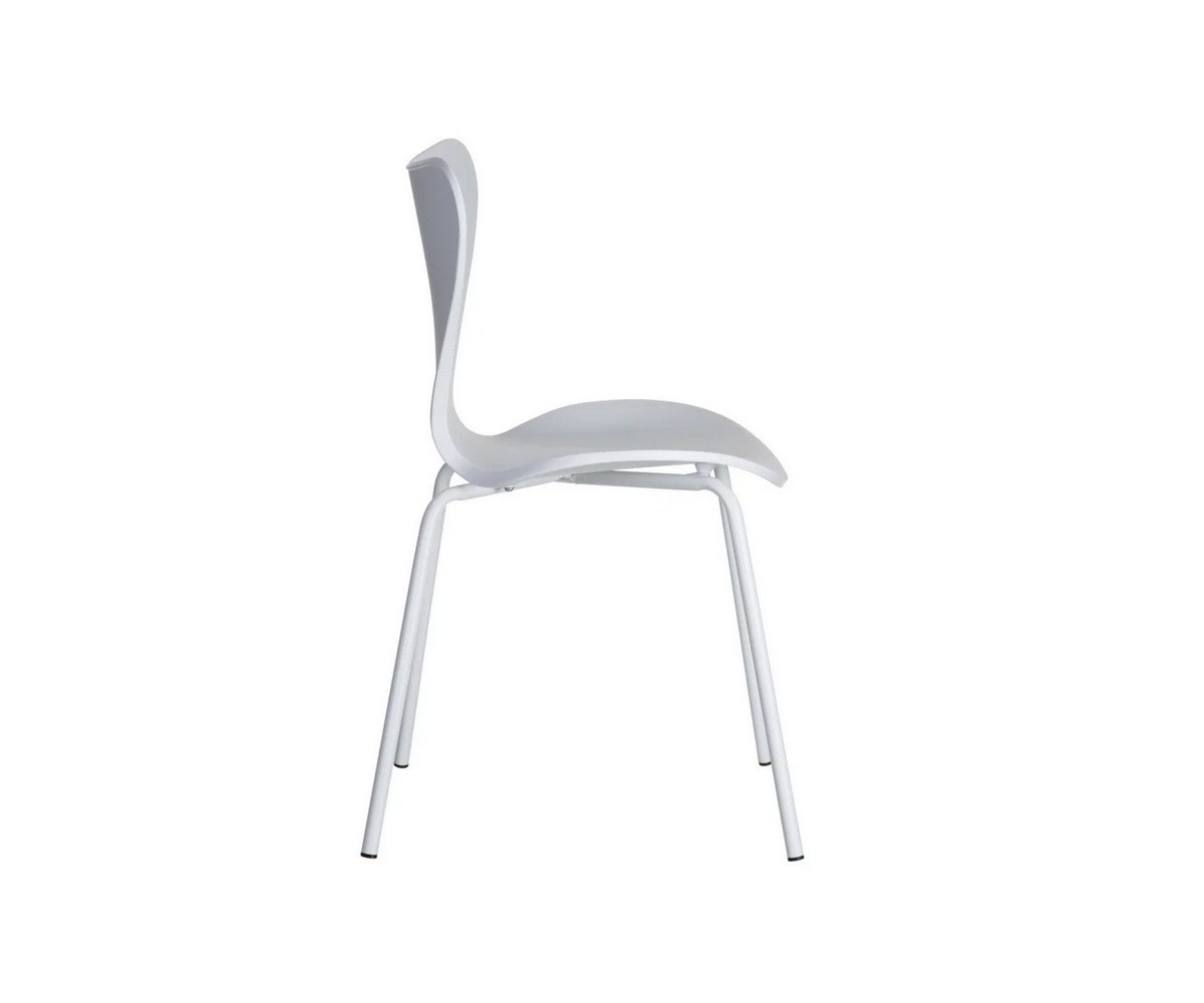 Silla inspirada en un diseño de Arne Jacobsen para Fritz Hansen. Asiento y respaldo fabricado en polipropileno inyectado de gran dureza y durabilidad, silla modeable por inyección, apilable. Uso interior y exterior. Respaldo con un grado de flexión que proporciona un gran confort. Superficie ligeramente texturizada, totalmente lavable. Estructrura tubular en acero con TRIPLE lacado mismo color que carcasa. Disponible en color blanco, negro, morado y verde menta. Réplica exacta con materiales originales de máxima calidad.