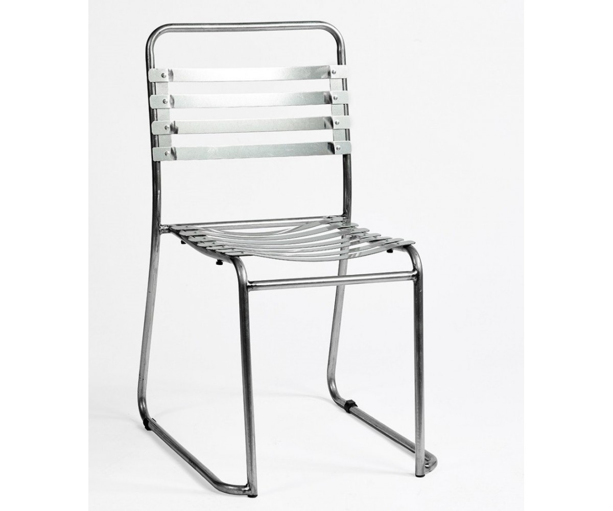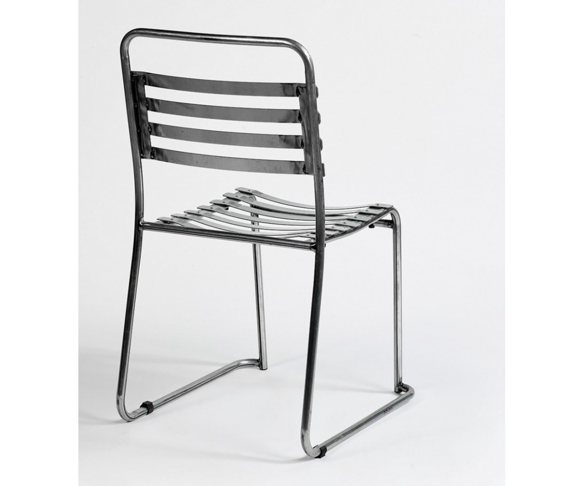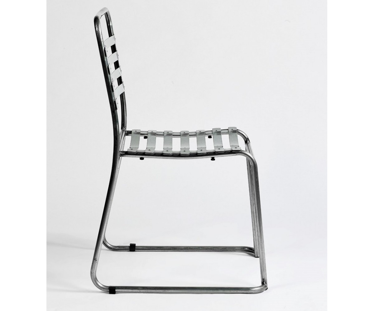 Silla inspirada en un diseño de Harald Guggenbichler. Fabricada mediante un armazón tubular en acero galvanizado cepillado, tanto para interior como exterior. Réplica exacta con materiales originales de máxima calidad.