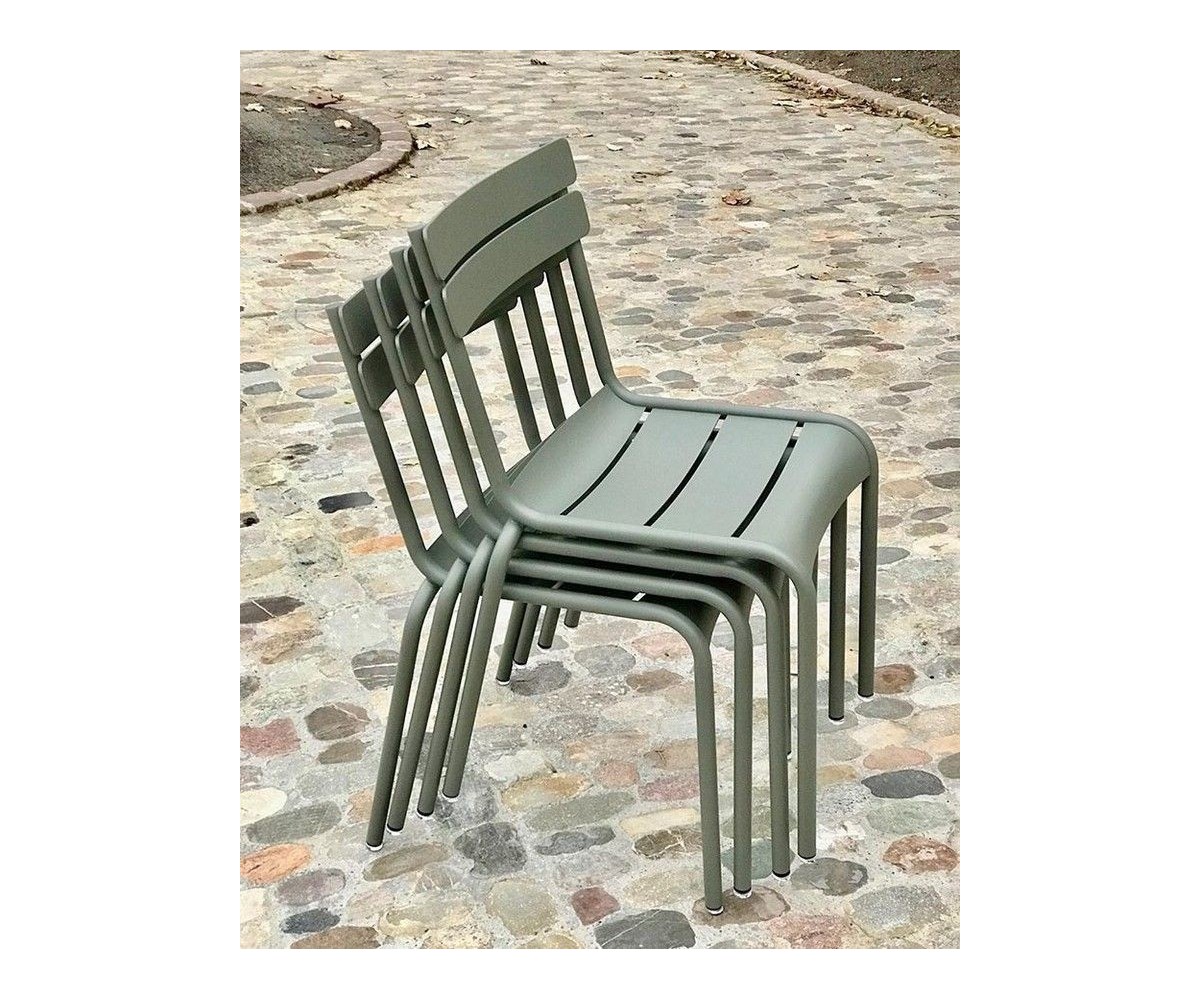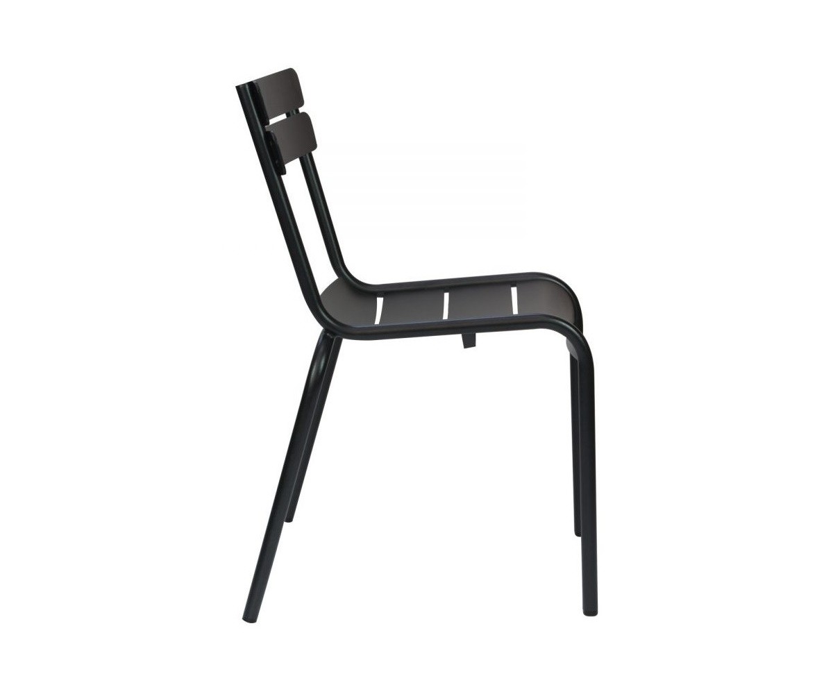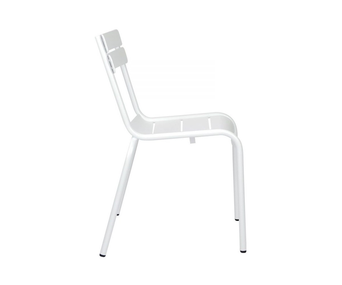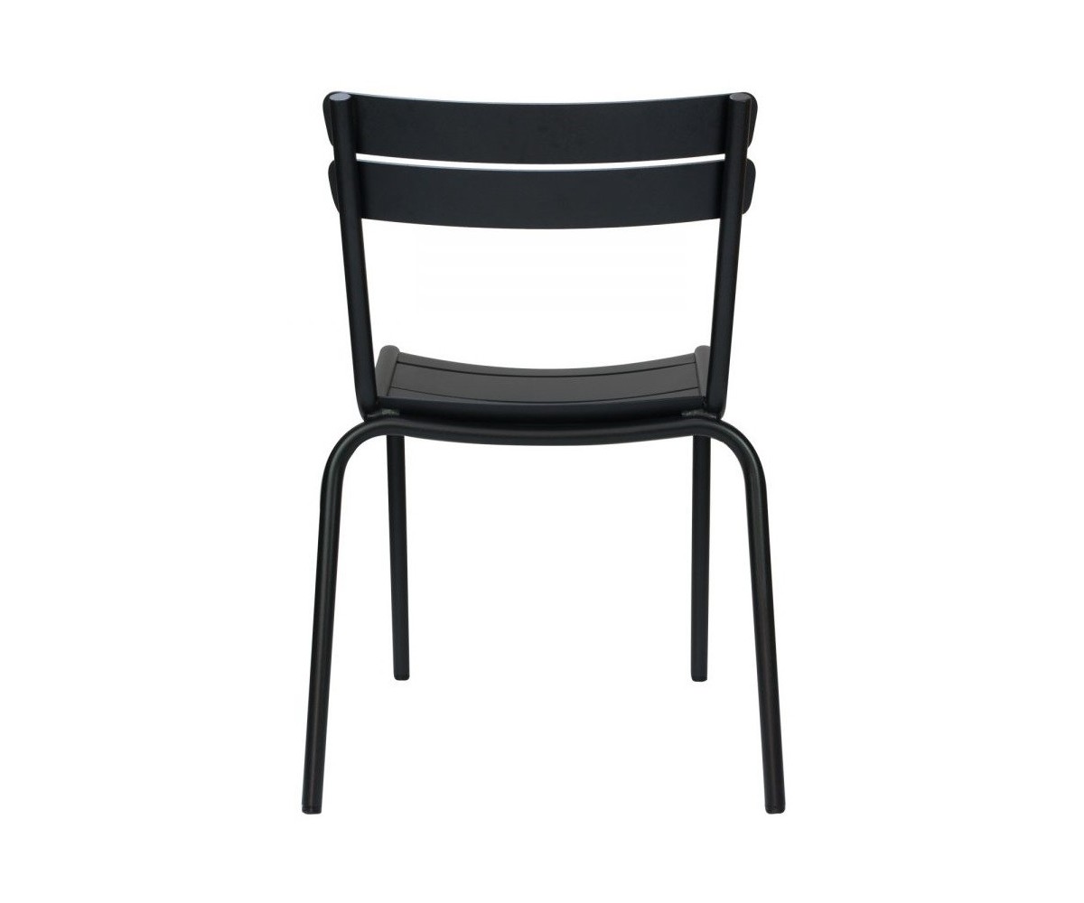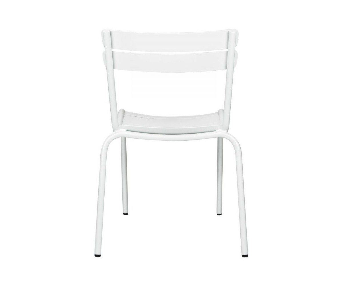 Silla sin brazos inspirado en un diseño de Frédéric Sofia para Fermod. Fabricada en acero con triple lacado color negro o blanco. Se puede utilizar tanto para exterior como para interior. Apilable. Réplica exacta con materiales originales de máxima calidad.