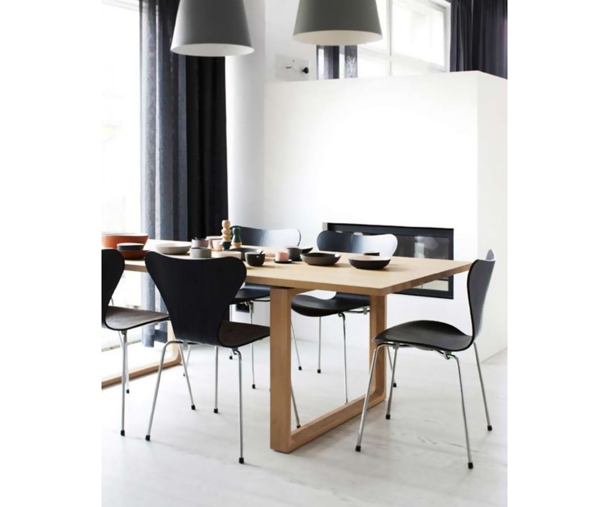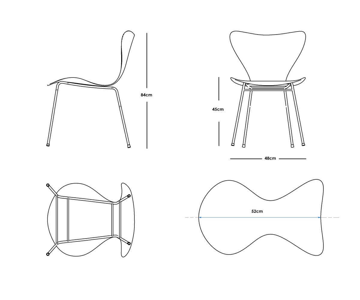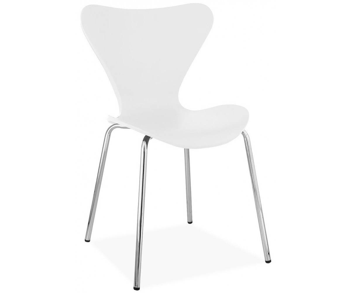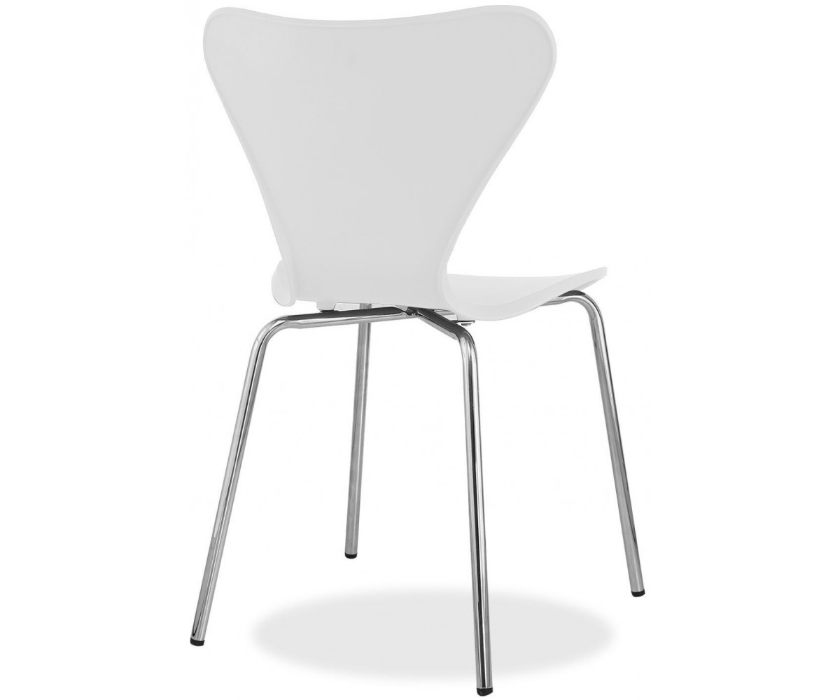 Silla inspirada en un diseño de Arne Jacobsen. Estructura tubular en acero inox. terminación brillo antióxido. Carcasa curvada monoblock policarbonato, terminación blanco, negro o gris. Réplica exacta con materiales originales de máxima calidad.