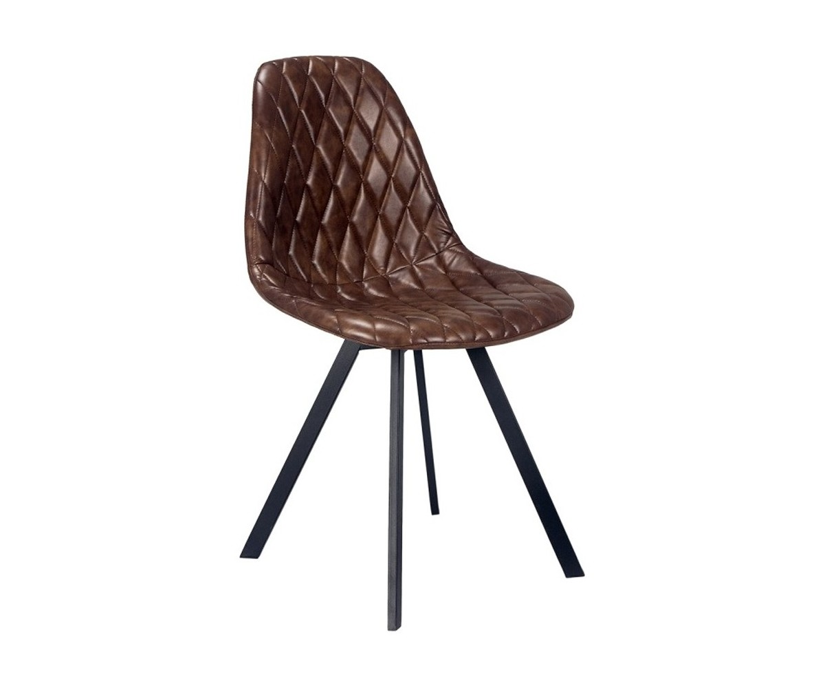 Silla retro inspirada en un diseño de Leader Betraek. Estructura en pletina de acero con triple lacado color negro. Tapizado en piel ecológica cosida a mano. Réplica exacta con materiales originales de máxima calidad.