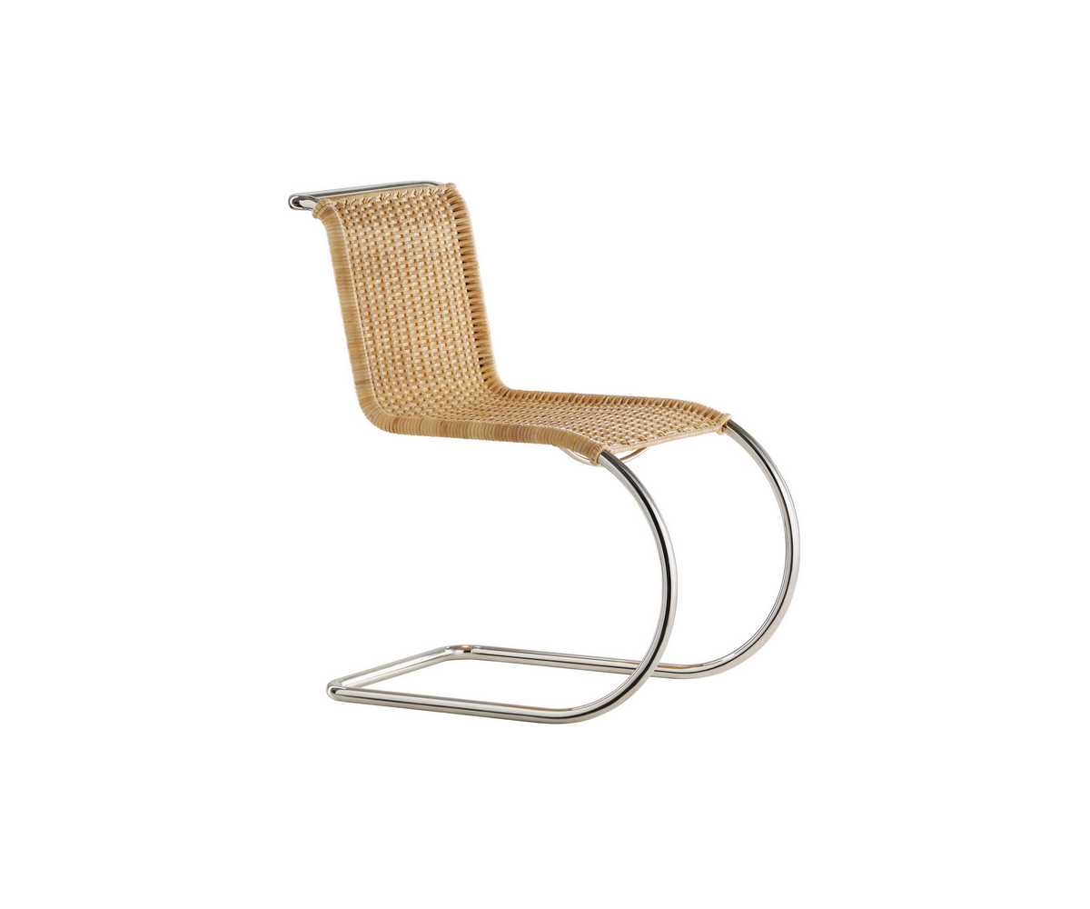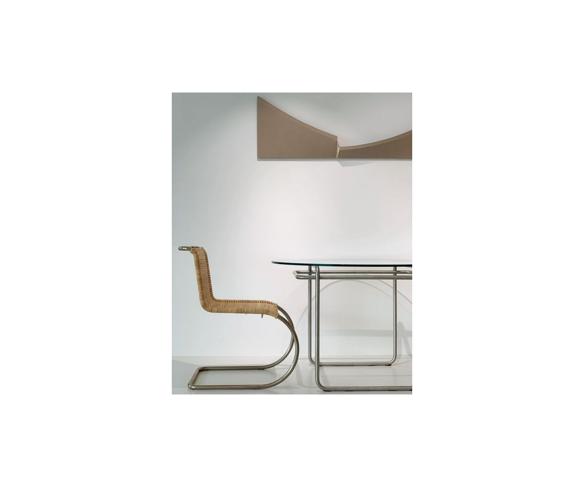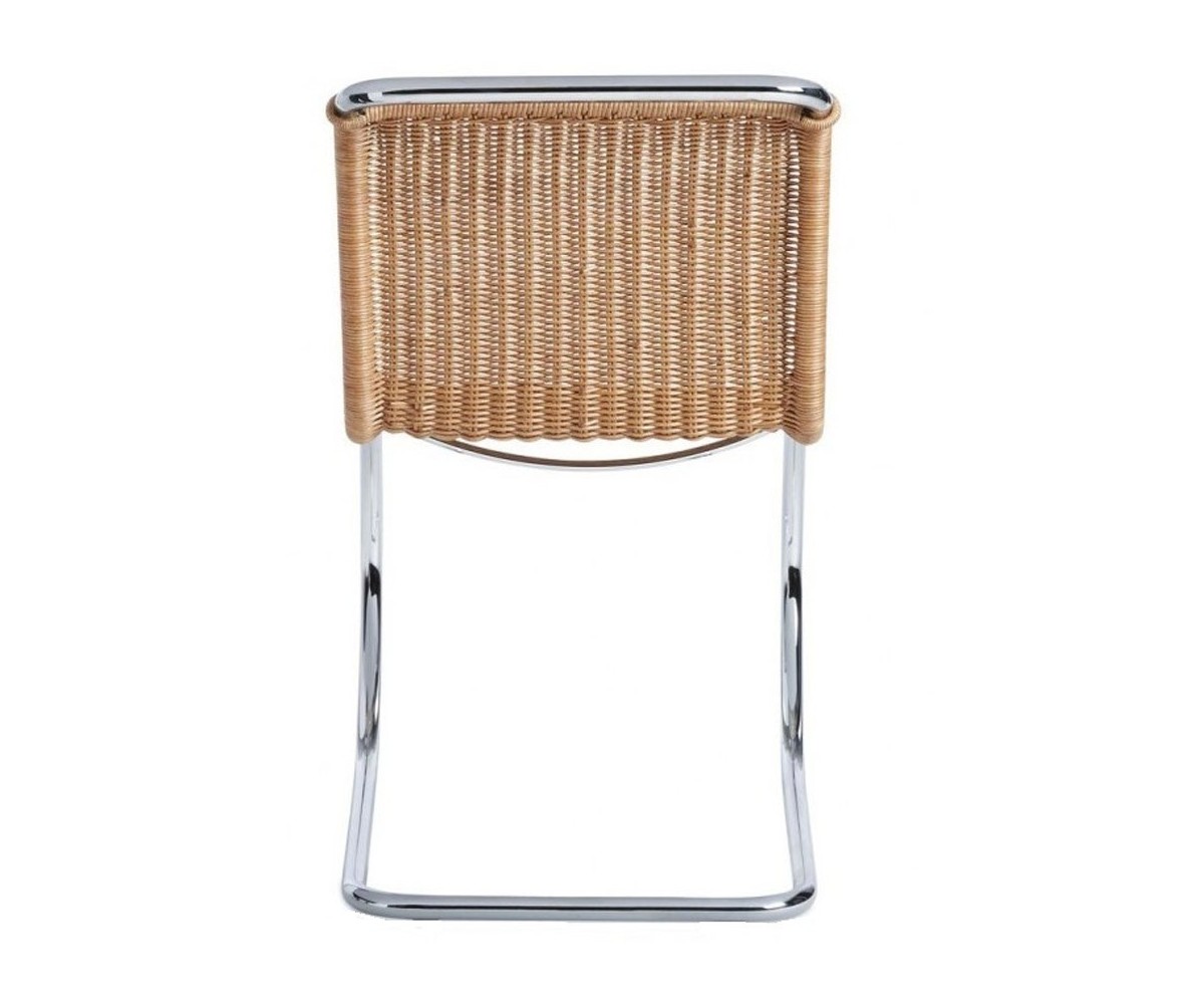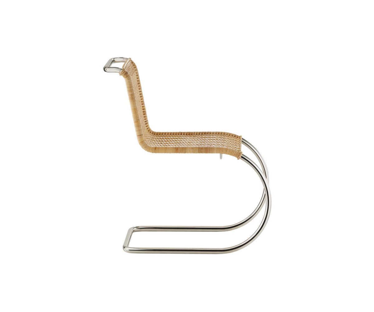 Silla fabricada en Italia, inspirada en un diseño de Ludwig Mies van der Rohe. Estructura armazón tubular de acero niquelado y con asiento en mimbre de doble entrelazado de palma rattan fabricado a mano artesanalmente. También disponible en piel. Réplica exacta con materiales originales de máxima calidad.