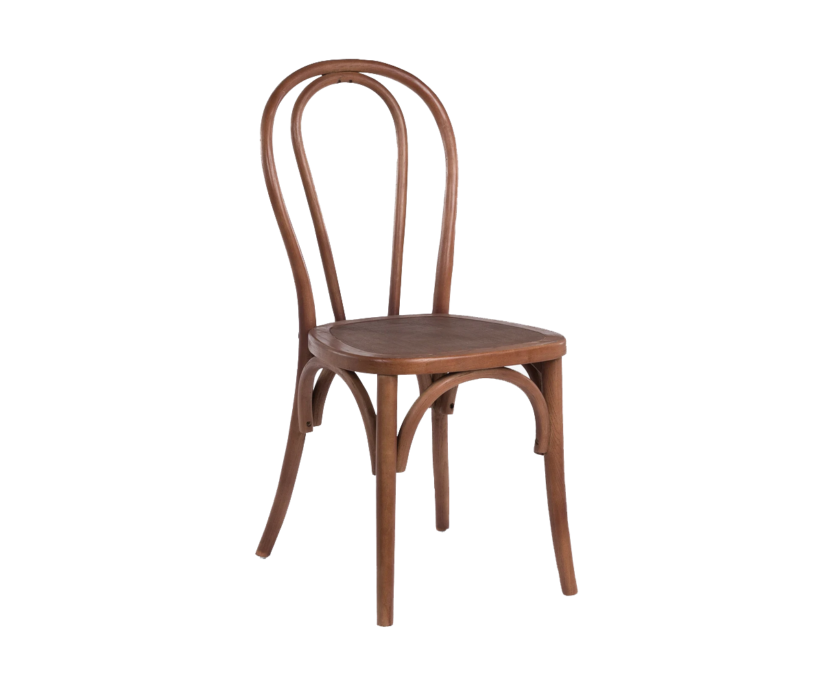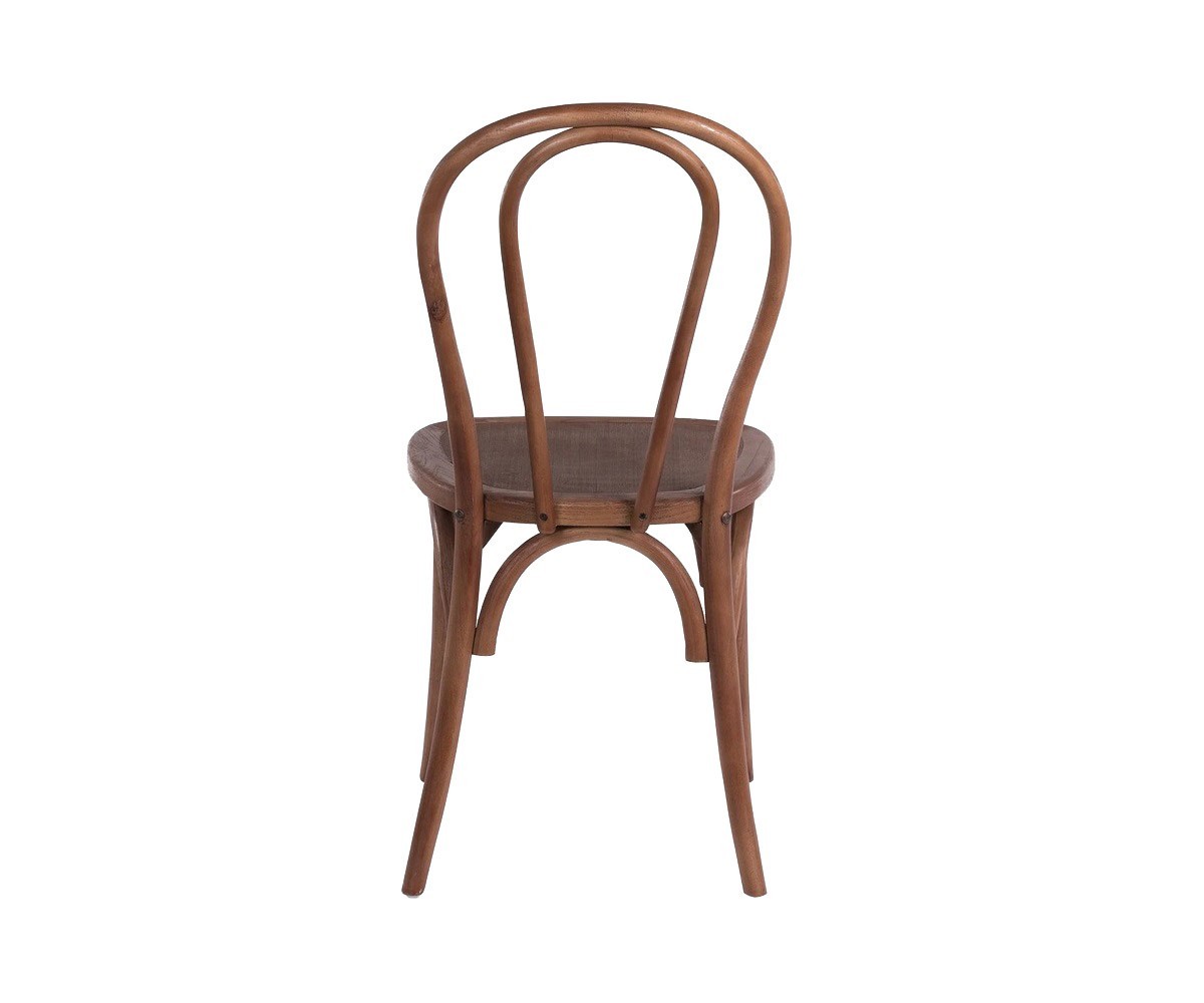Silla inspirada en un diseño de Michael Thonet. Estructura fabricada en madera de olmo macizo terminación oscuro. Asiento en madera de olmo oscuro. Réplica exacta con materiales originales de máxima calidad.