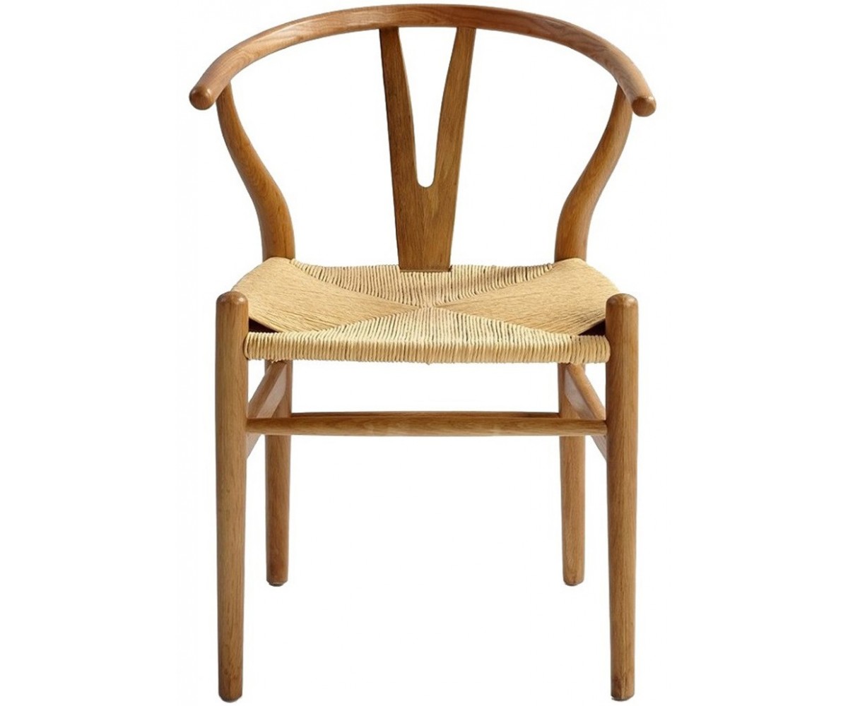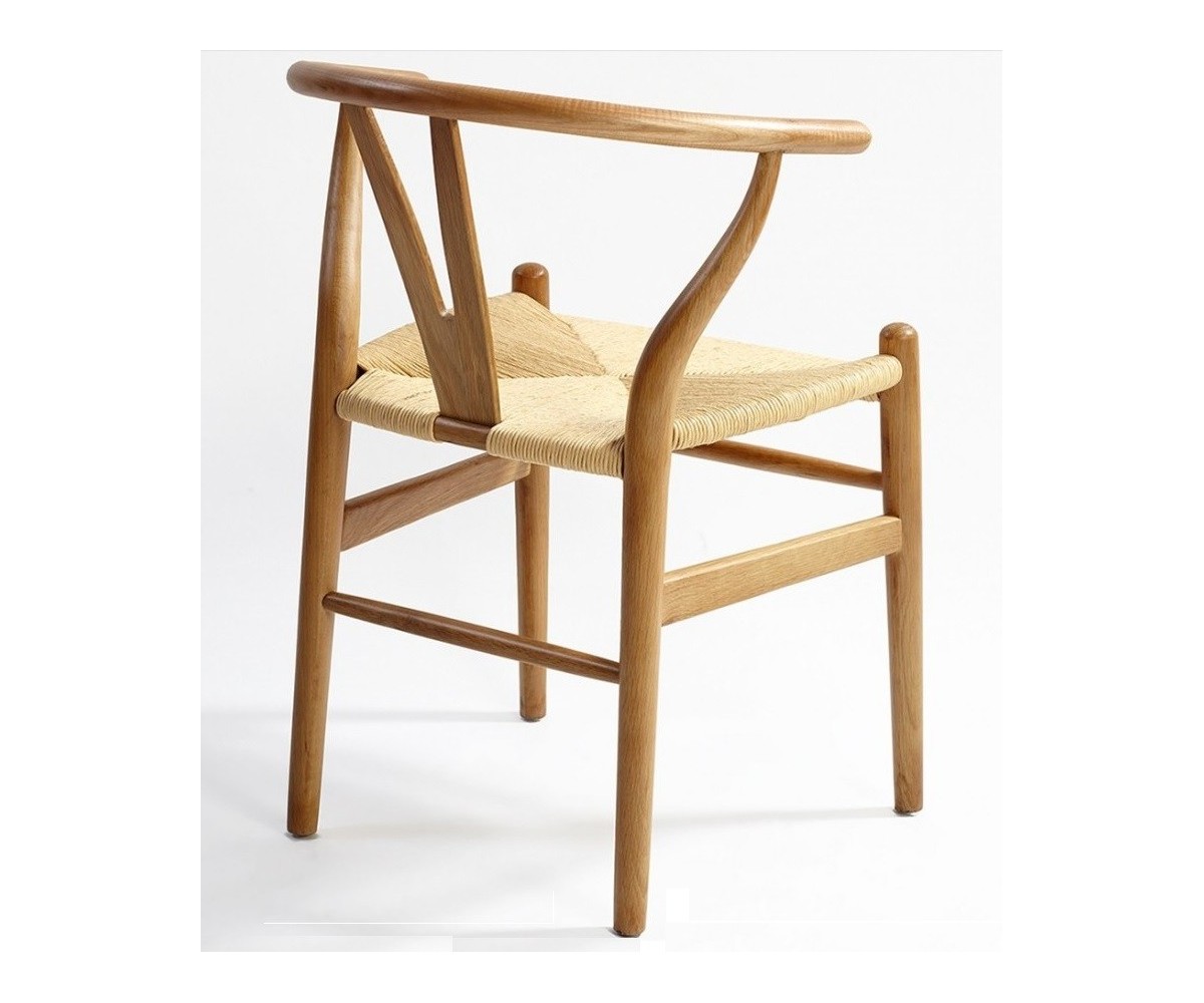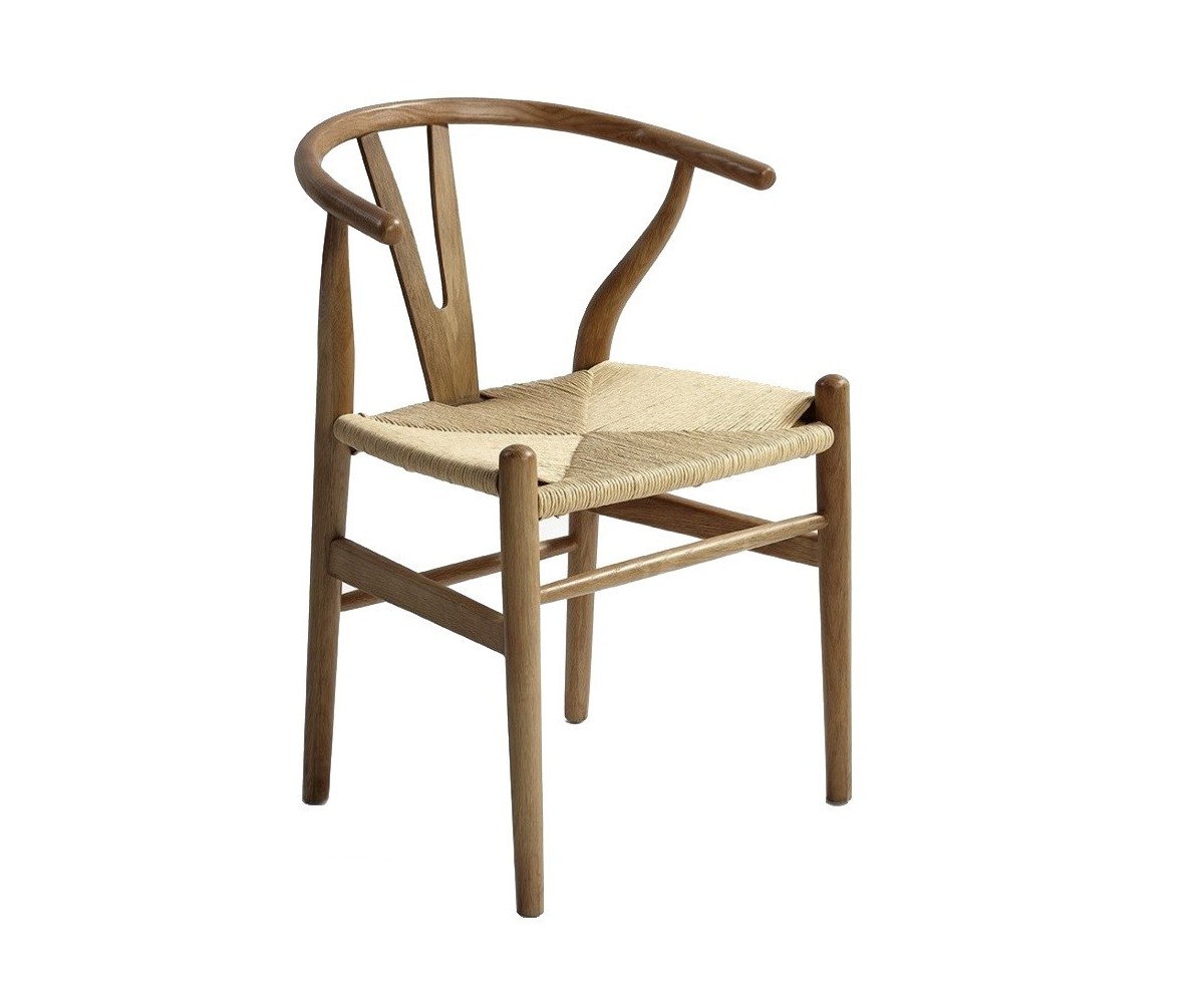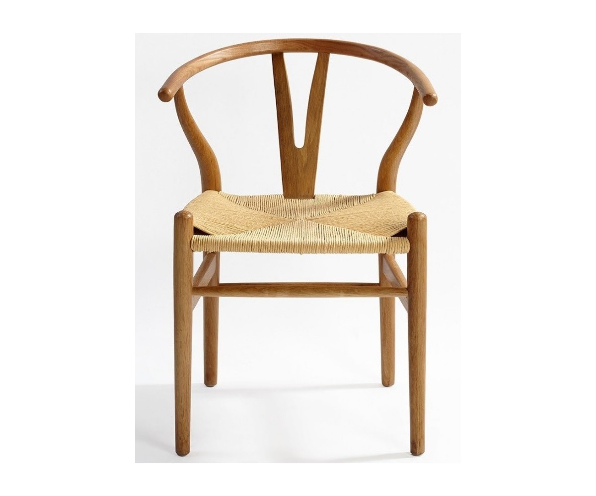 Silla inspirada en un diseño de Hans J. Wegner. Estructura fabricada en madera de fresno oscurol, asiento trenzada en enea color natural. Réplica exacta con materiales originales de máxima calidad.