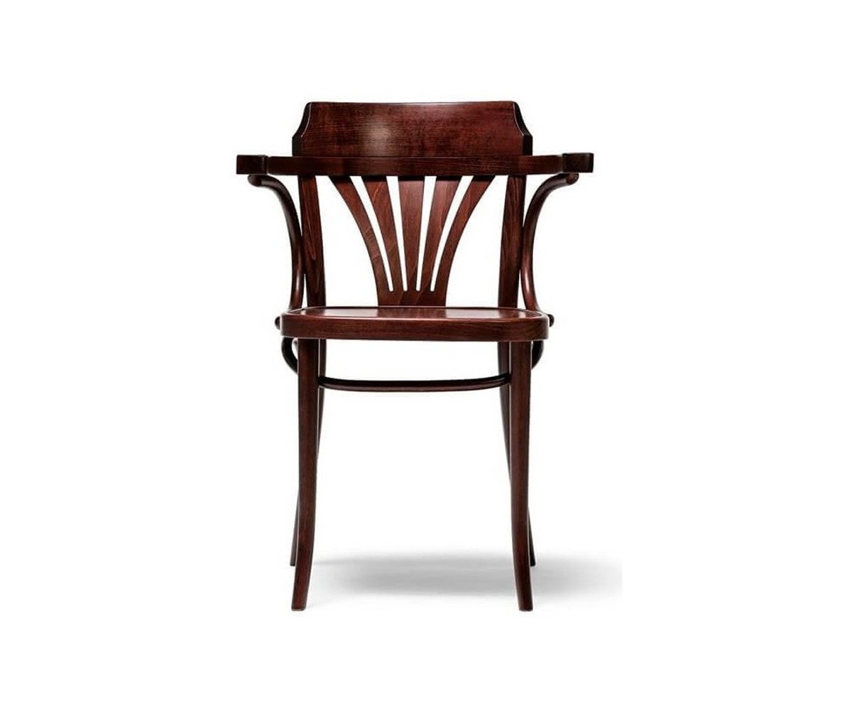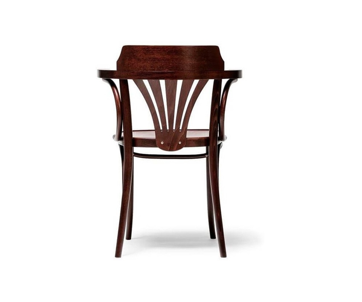 Silla inspirada en un diseño de Michael Thonet. Estructura fabricada en madera de roble macizo, terminación nogal oscuro o cerezo clarol. También disponible en taburete. Réplica exacta con materiales originales de máxima calidad.