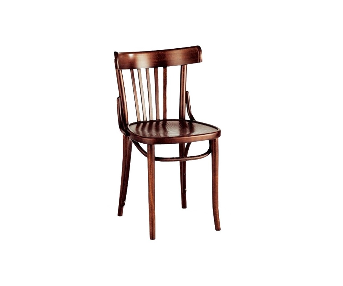 Silla inspirada en un diseño de Michael Thonet. Estructura fabricada en madera de roble macizo, terminación nogal barnizado. También disponible en taburete. Réplica exacta con materiales originales de máxima calidad.