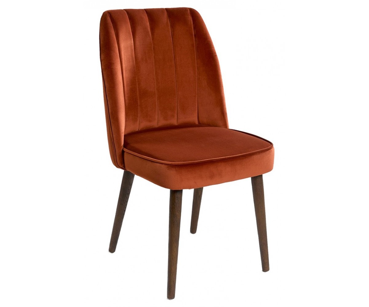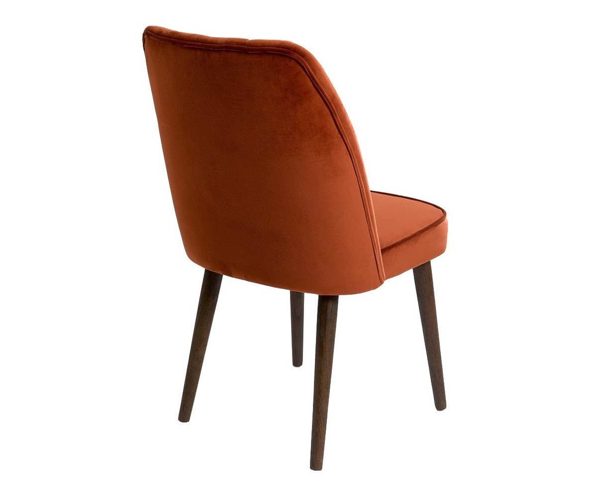 Silla de comedor inspirada en un diseño de Oliver B. Estructura en acero, patas de madera macizaq de roble teñido, tapizada en tejido terciopelo. Réplica exacta con materiales originales de máxima calidad.