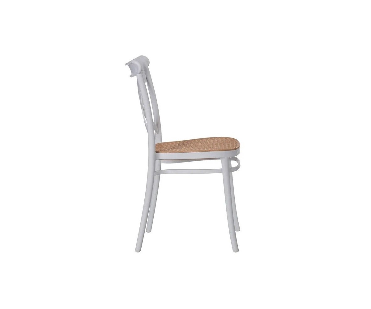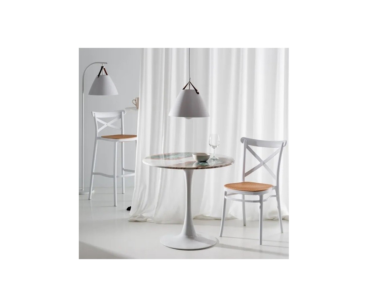 Silla danesa inspirada en un diseño de Michael Thonet. Fabricada en policarbonato inyectado de alta dureza y antiralladuras. Terminación blanco y negro. Tacos en las patas antideslizante. Modelo apilable. Tanto para interior como exterior. Réplica exacta con materiales originales de máxima calidad.