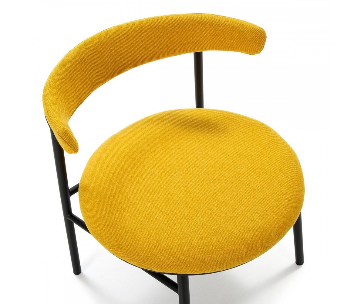 Silla inspirada en un diseño de Anderssen y Voll. Estructura tubular en acero terminación triple lacado color negro. Asiento y respaldo fabricado en madera recubierto de espuma indeformable y tapizado en tejido color amarillo. Réplica exacta con materiales originales de máxima calidad.