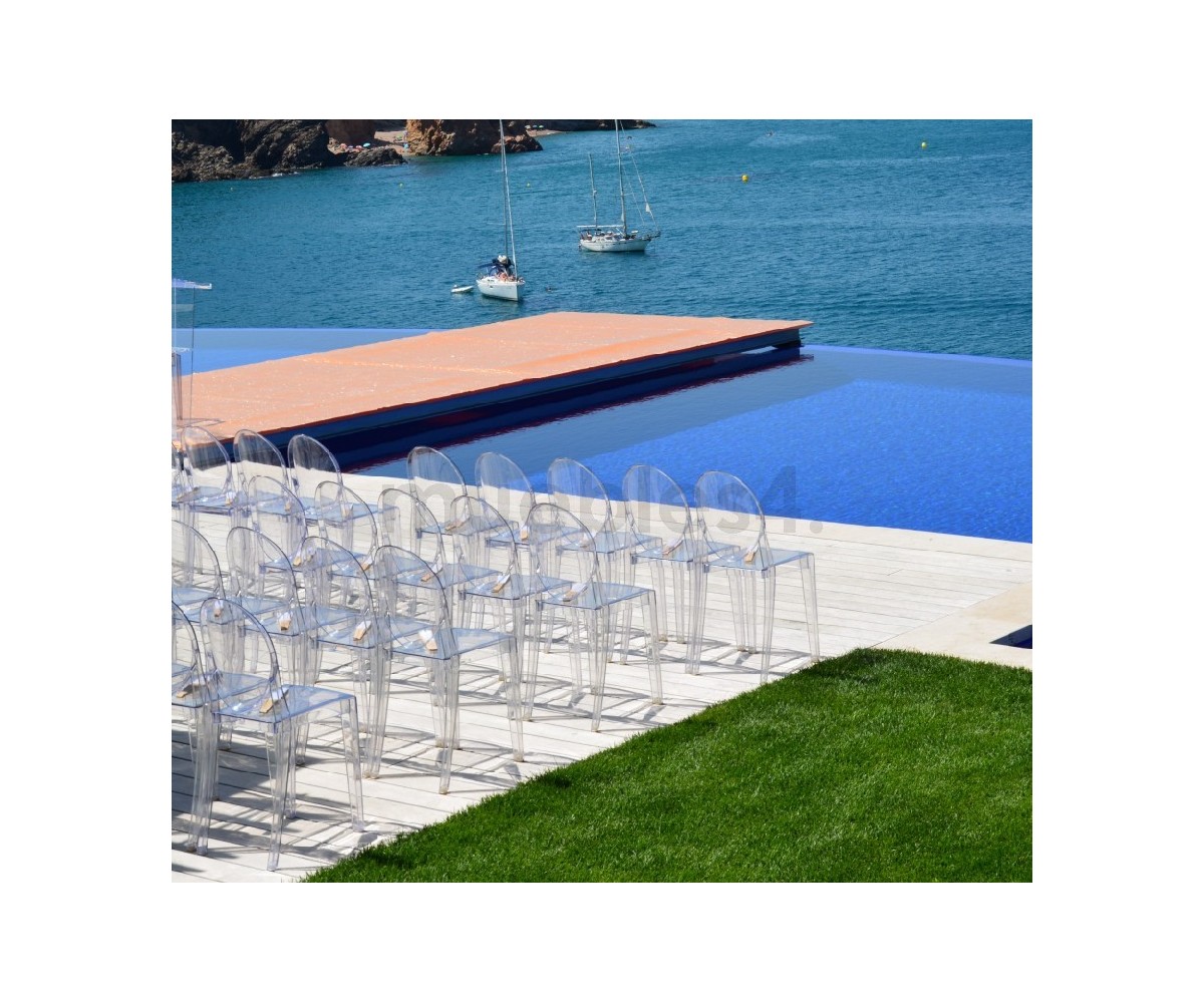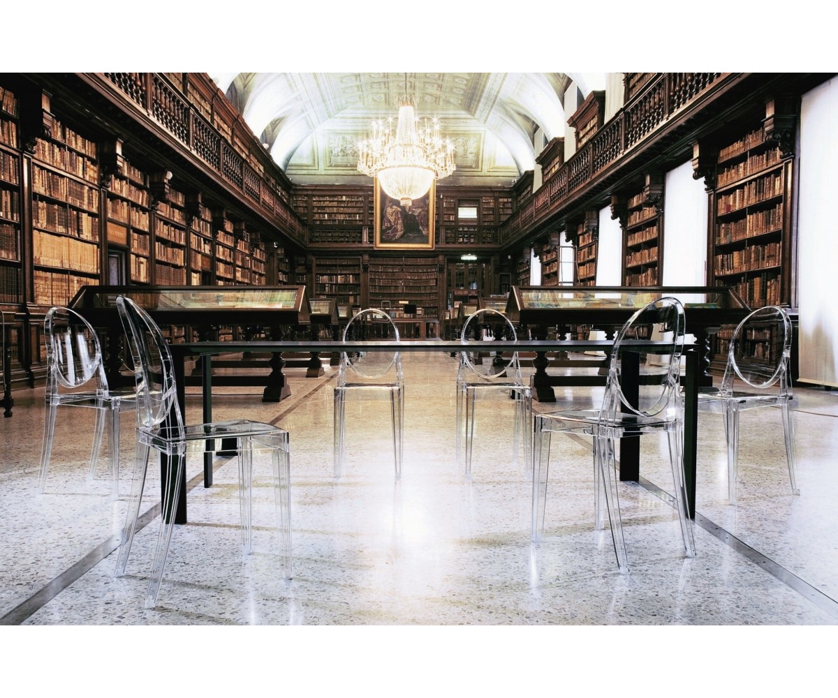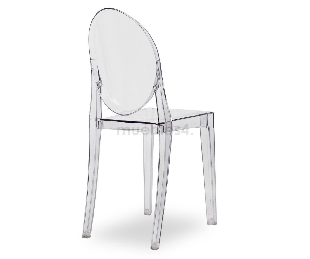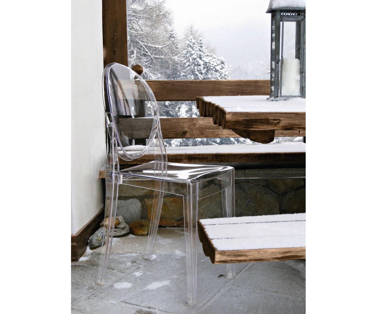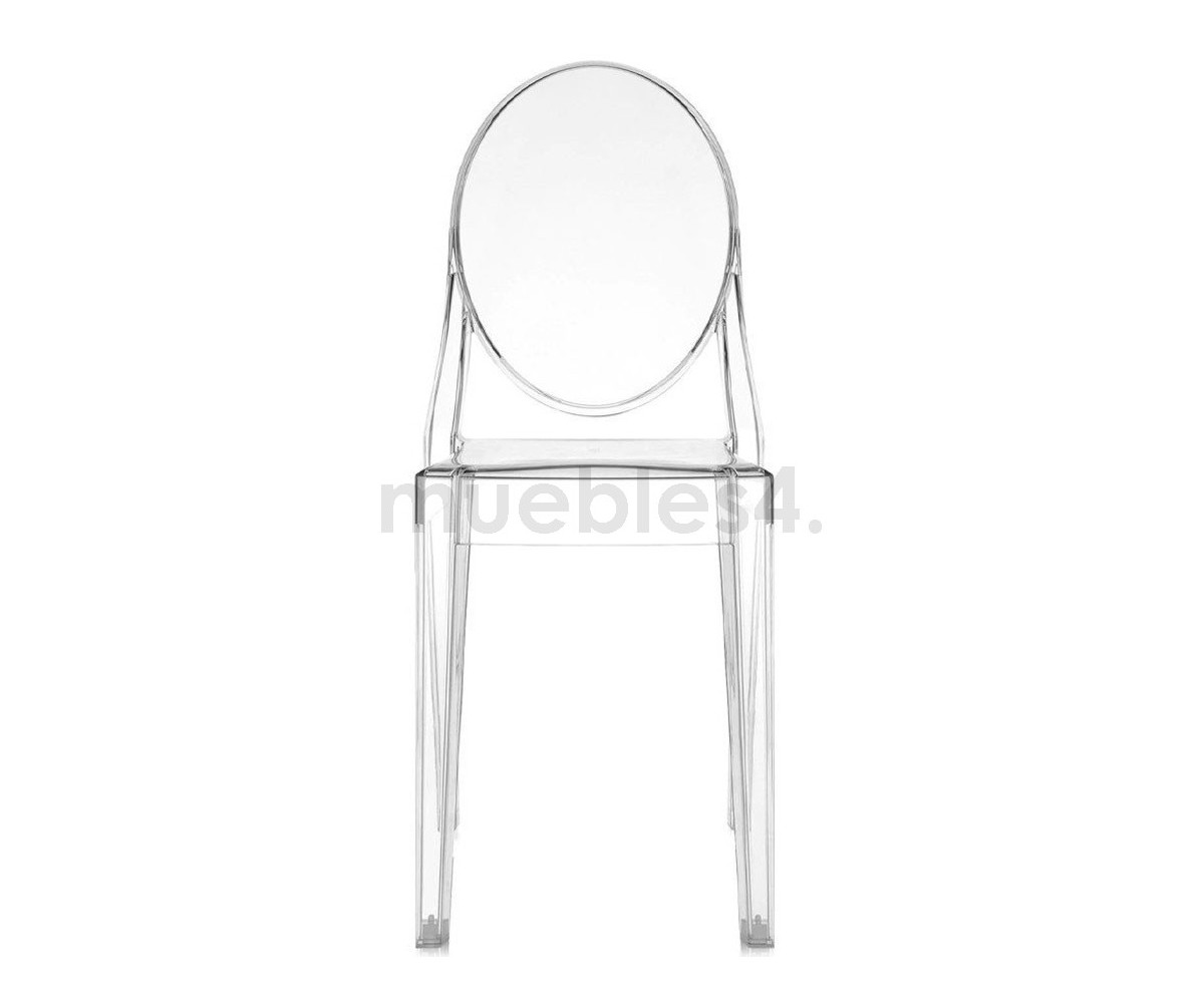 Silla inspirada en un diseño de Philippe Starck. Victoria Ghost es una silla que nace de la inspiración de las líneas clásicas del respaldo redondeado que recuerda la forma de los antiguos medallones, mientras que el asiento es geométricamente lineal. Se puede utilizar en todo tipo de ambientes, desde modernos hasta clásicos a los que da un toque de excentrismo.
