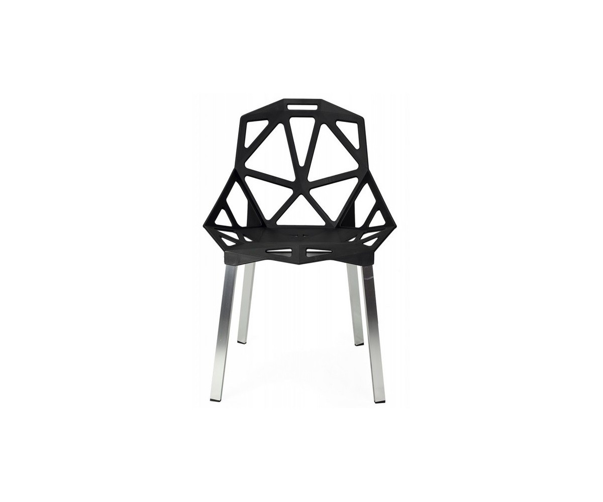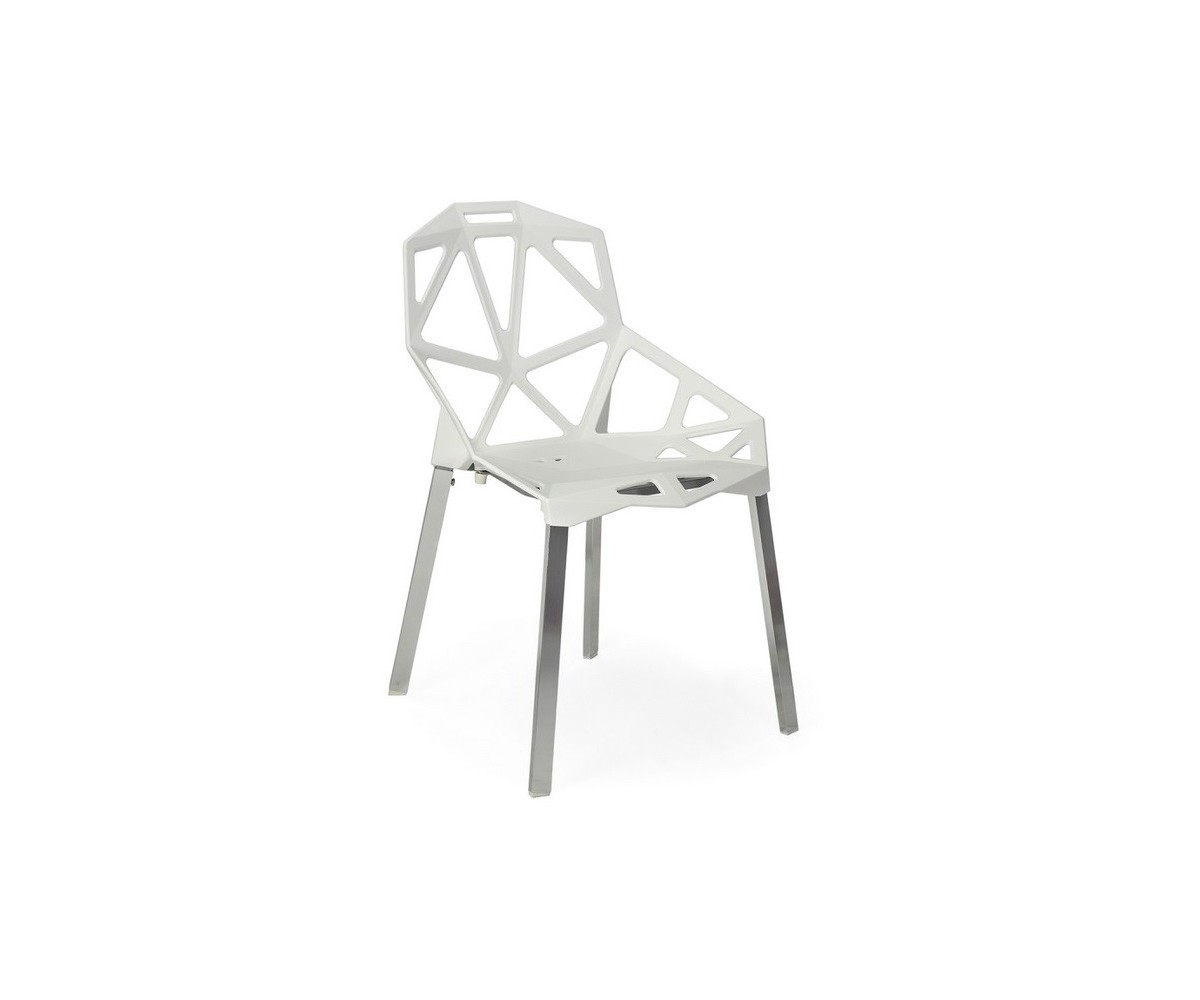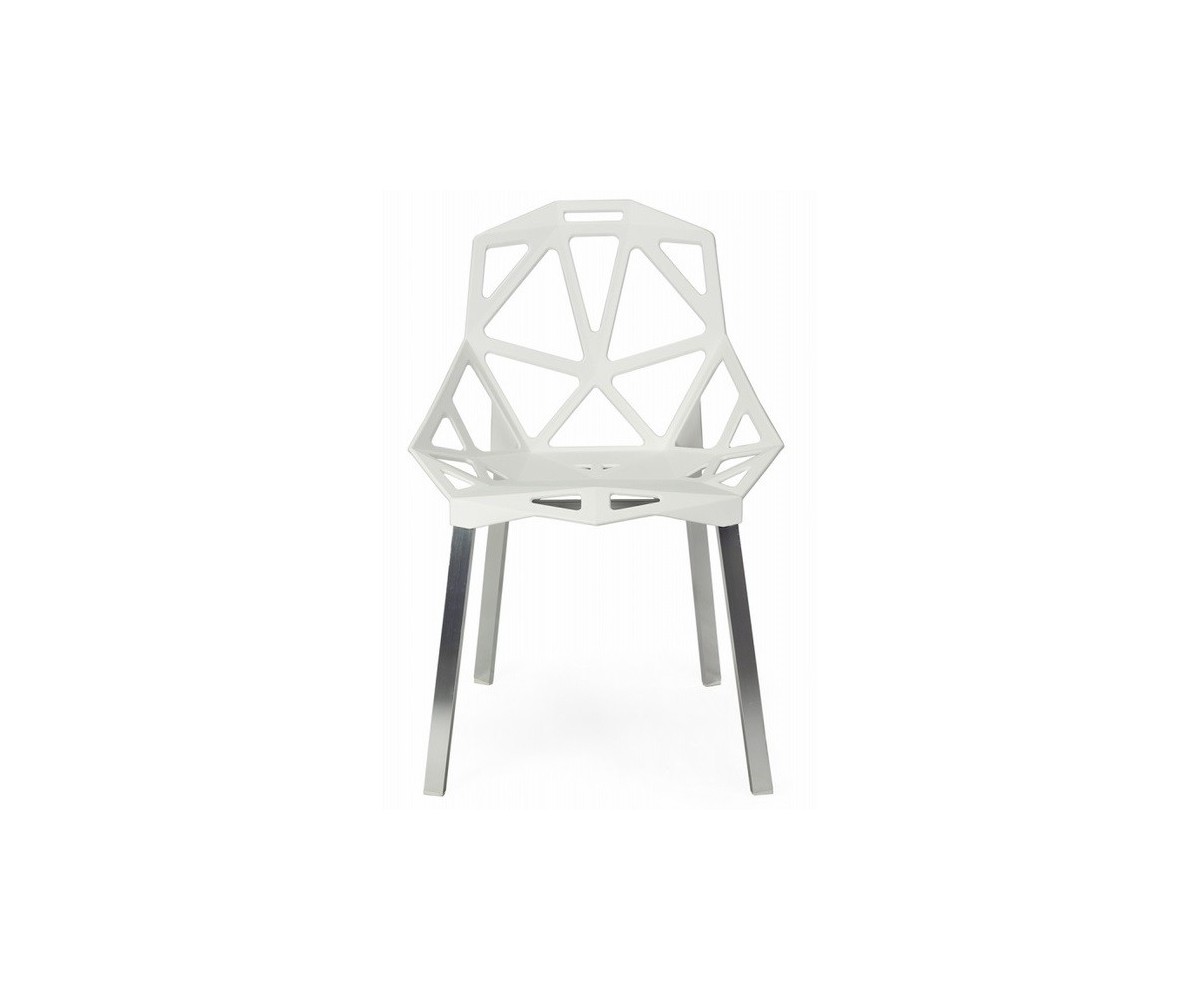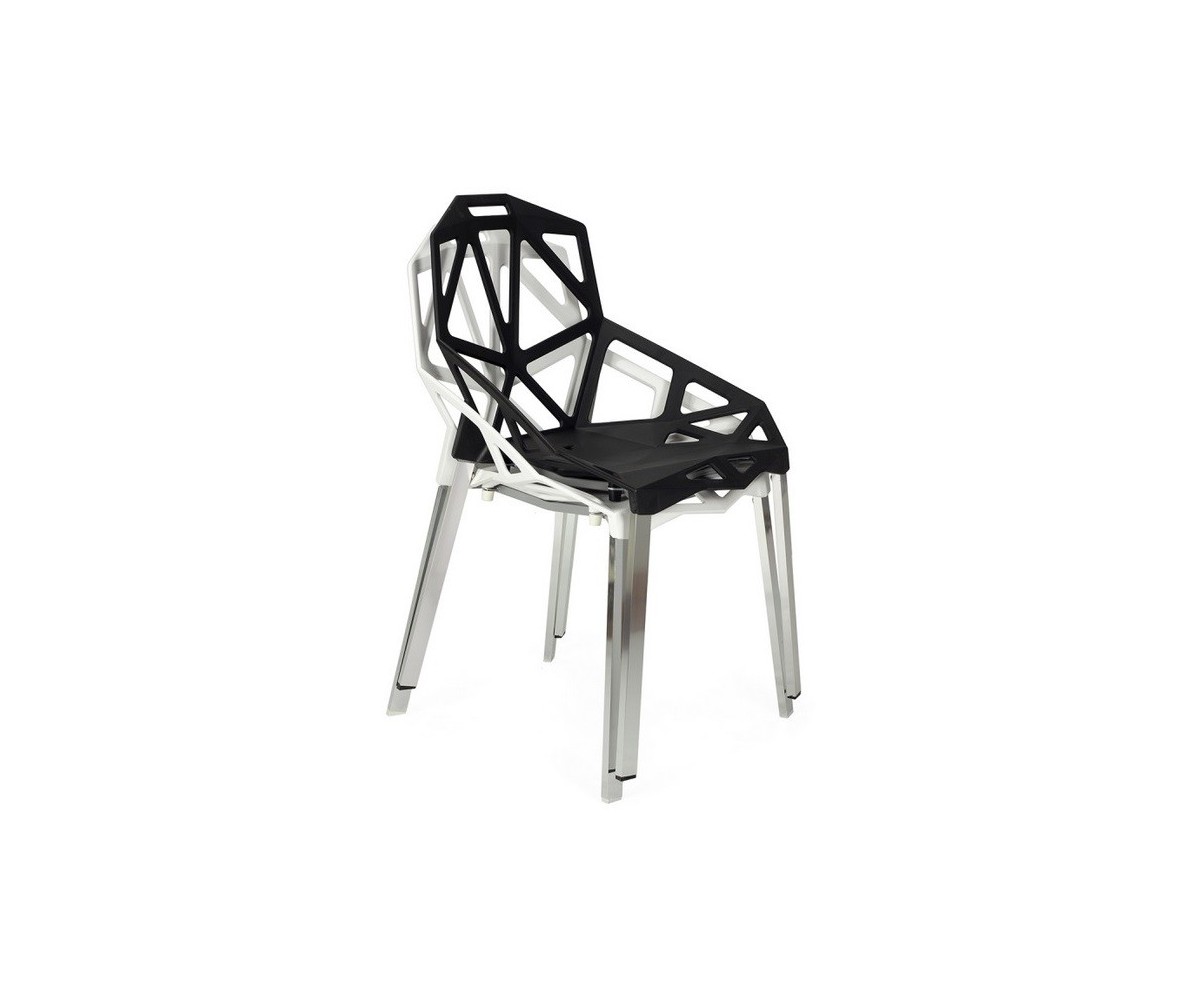 Silla apilable, inspirada en un diseño de Konstantin Grcic. Patas y carcasa fabricadas en aluminio y policarbonato, patas terminación color plata, carcasa terminación color blanco o negro. Réplica exacta con materiales originales de máxima calidad.