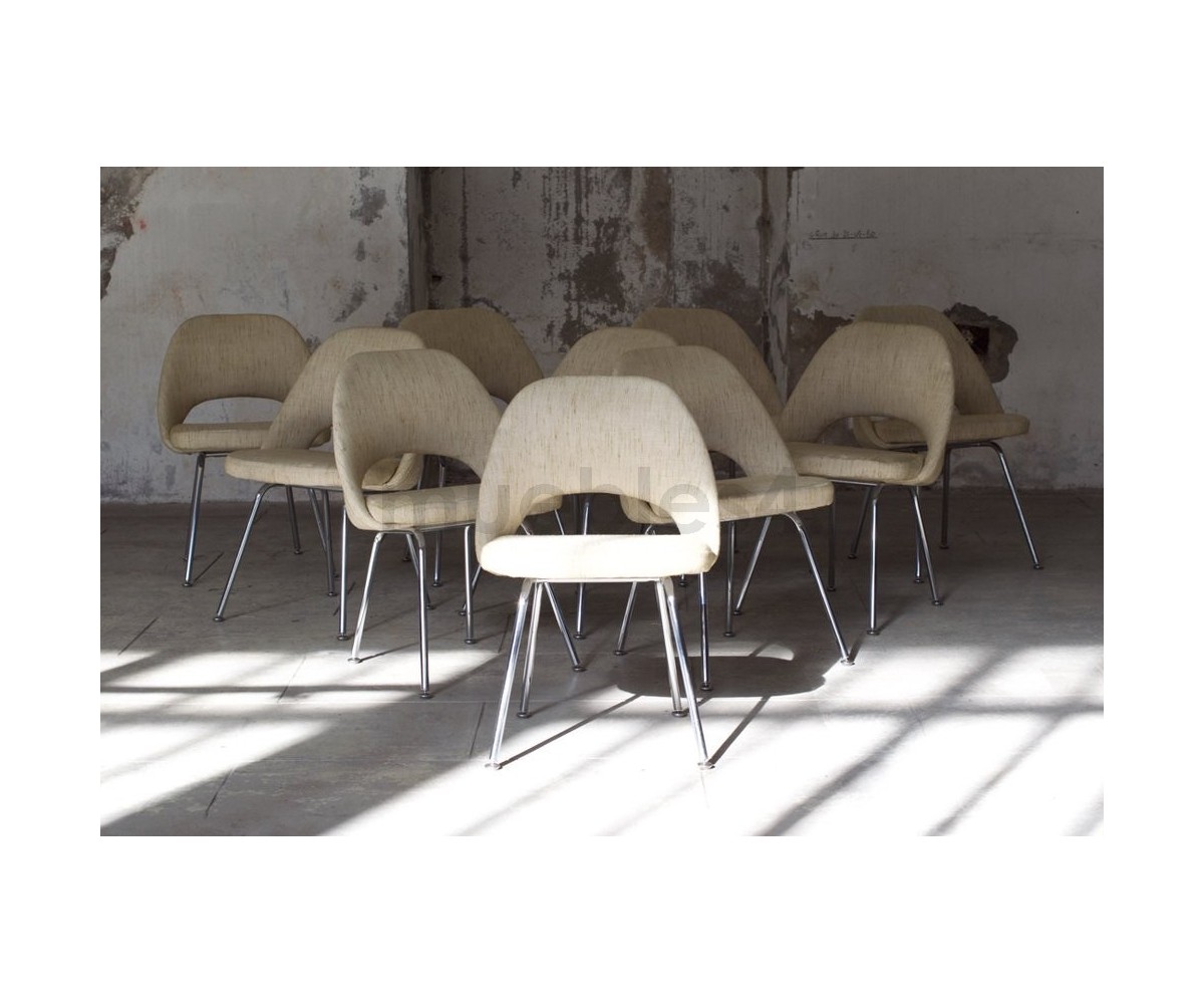 Silla Conferencie inspirada en un diseño de Eero Saarienen edidtada por Knoll. Es, hoy en día, uno de los diseños más famosos de la firma, apareciendo en casi todos los proyectos de interiorismo de Florence Knoll. En su innovadora colección de 1957, Eero Saarinen transformó los asientos ejecutivos en una forma fluida y escultural.