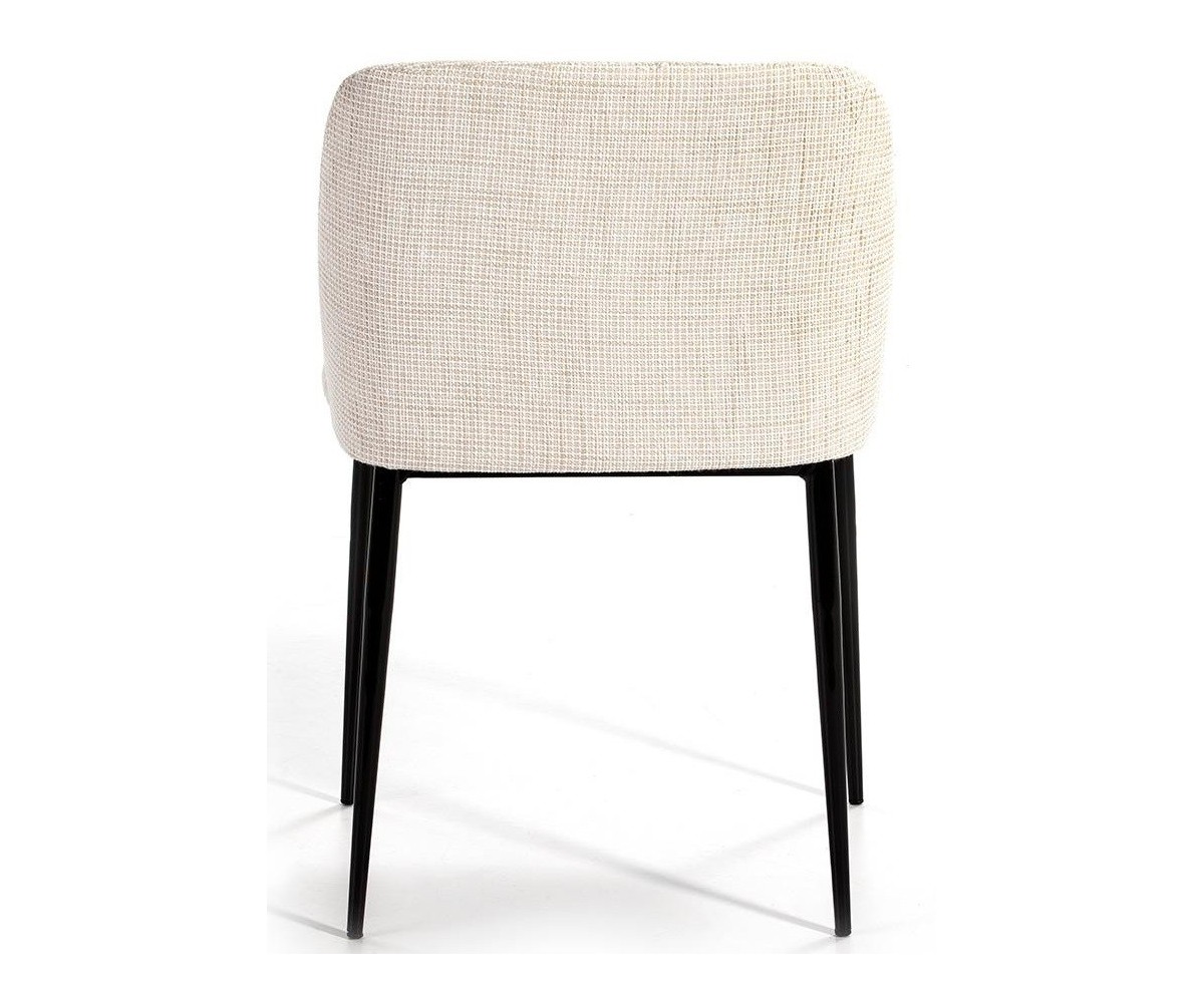 Silla de comedor inspirada en un diseño de Rodolfo Dordoni. Patas con estructura tubular en acero con triple lacado al horno color negro. Asiento y resplado relleno de espuma indeformable, tapizado en tela 100% primera calidad. Colores disponible blanco. También disponible en rosa, azul y verde. Réplica exacta con materiales originales de máxima calidad.