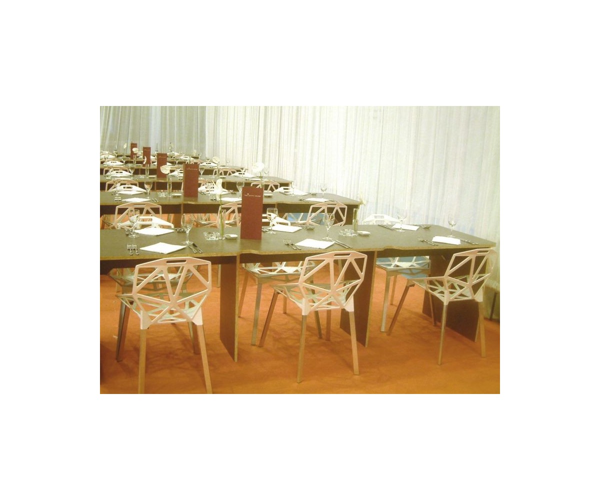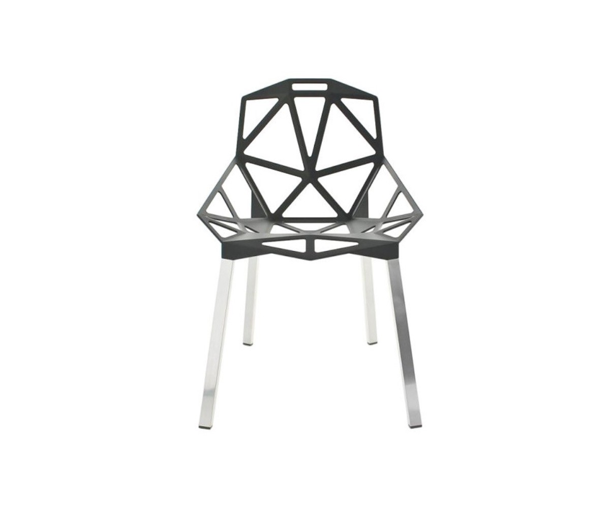 Silla apilable para interior y exterior, inspirada en un diseño de Konstantin Grcic. Carcasa en blanco o negro fabricada en ALUMINIO y ACERO, patas color plata fabricadas en ALUMINIO y ACERO. Réplica exacta con materiales originales de máxima calidad.