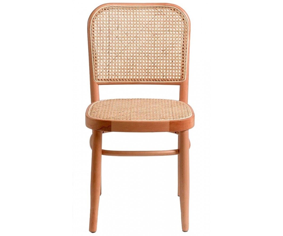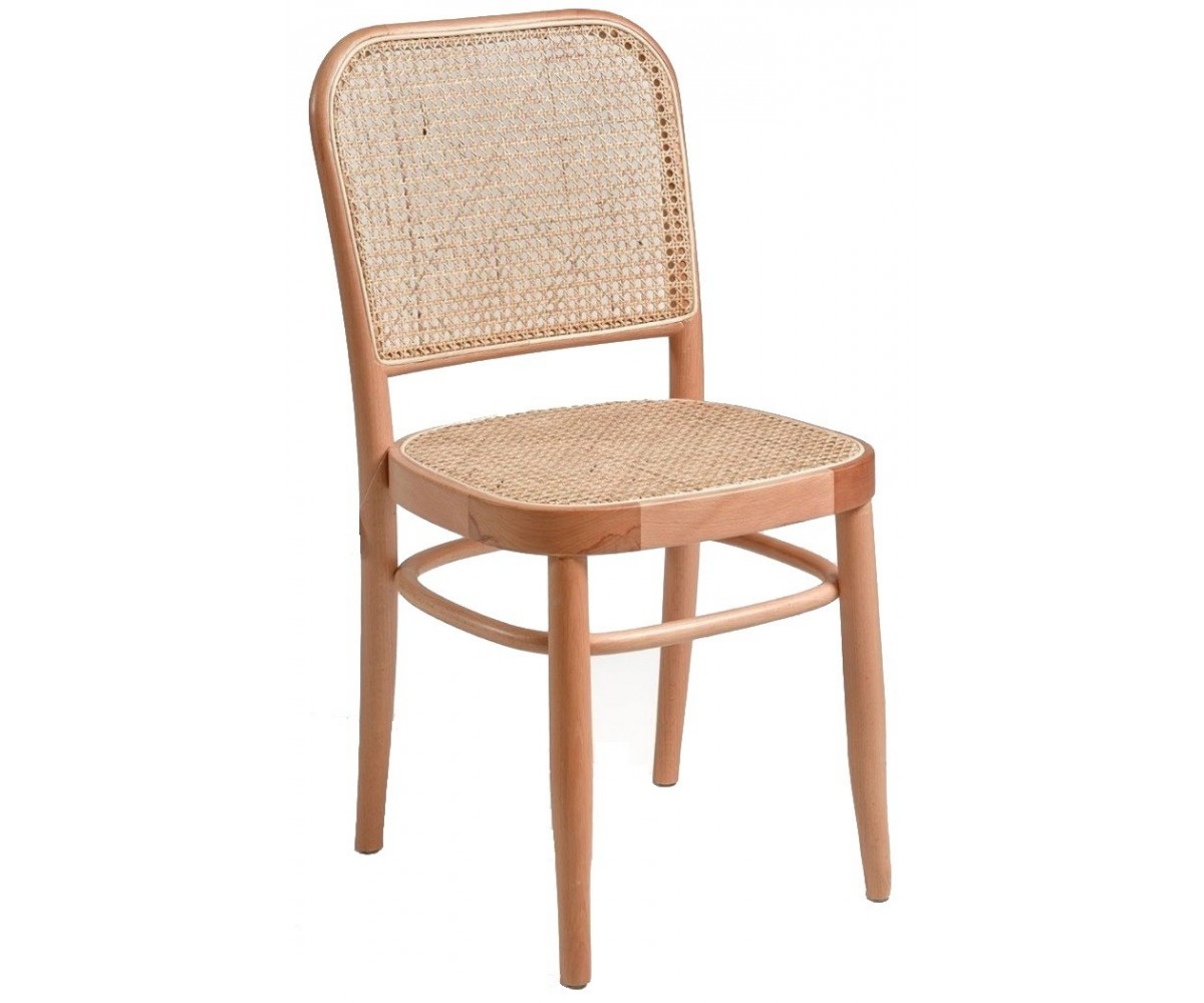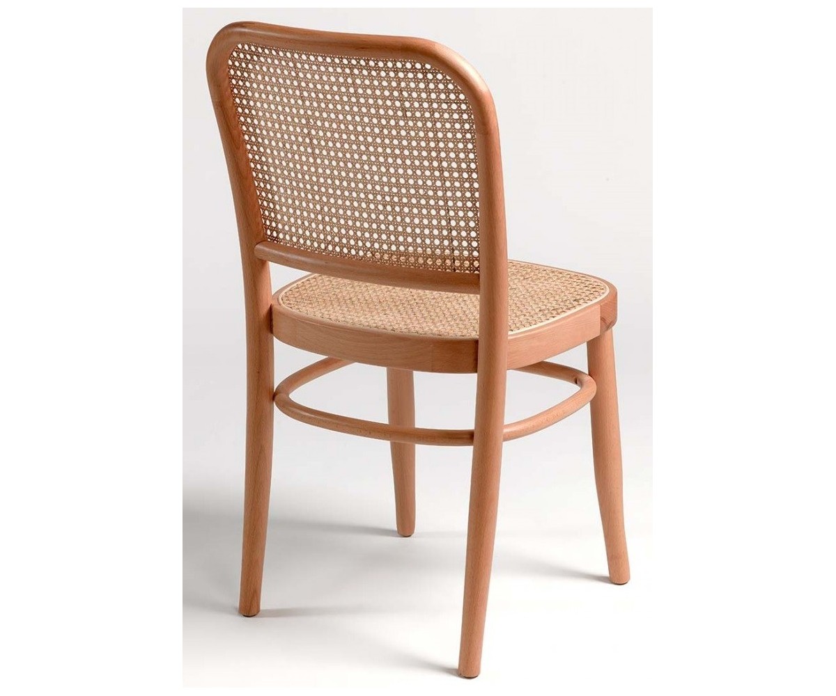 Silla inspirada en un diseño de Josef Hoffmann para Thonet. Estructura fabricada en madera de roble maciza tratado natural. Asiento en rattán natural. No apilable. Réplica exacta con materiales originales de máxima calidad.