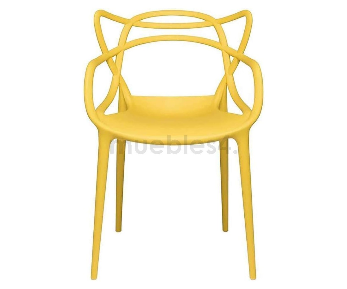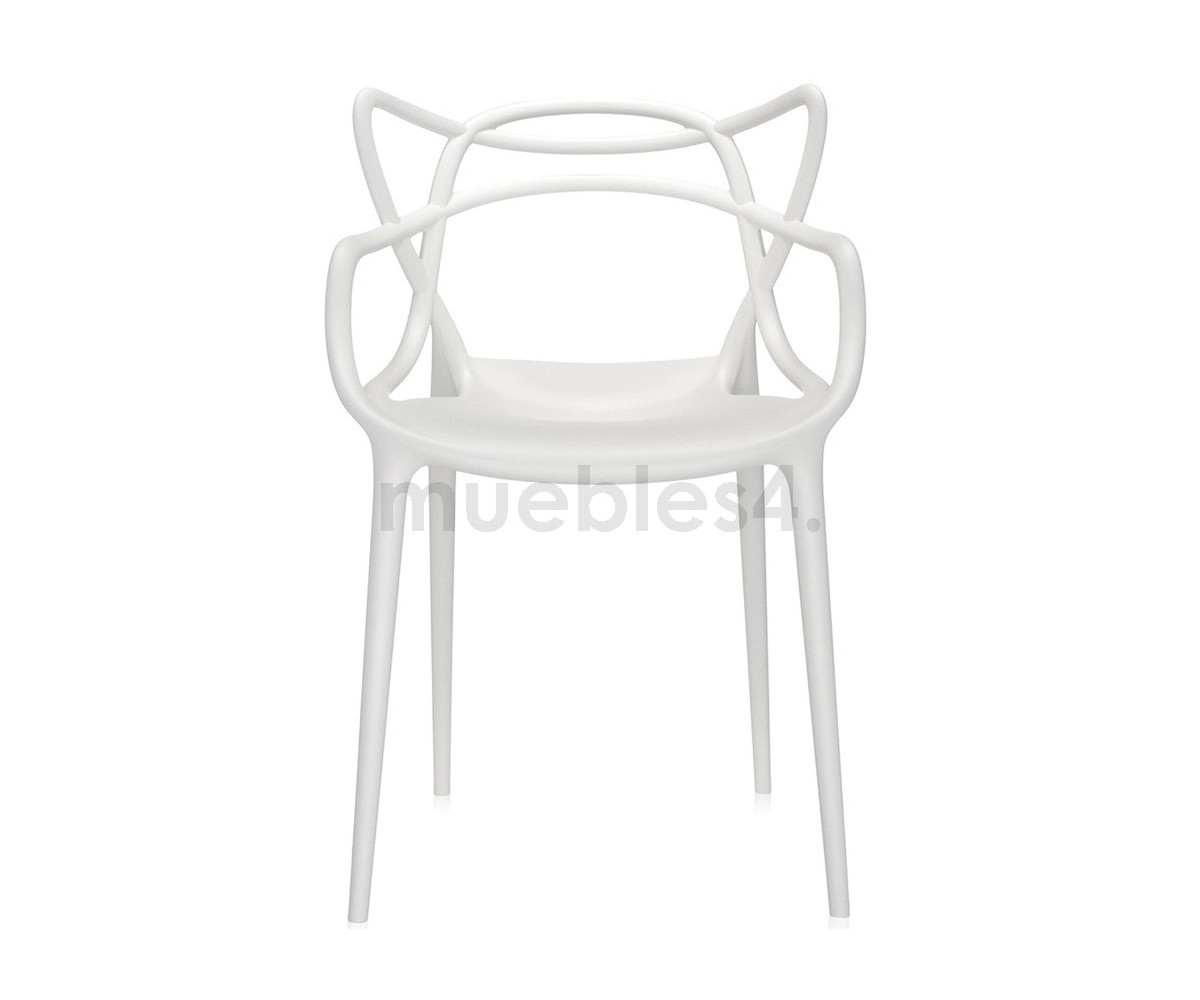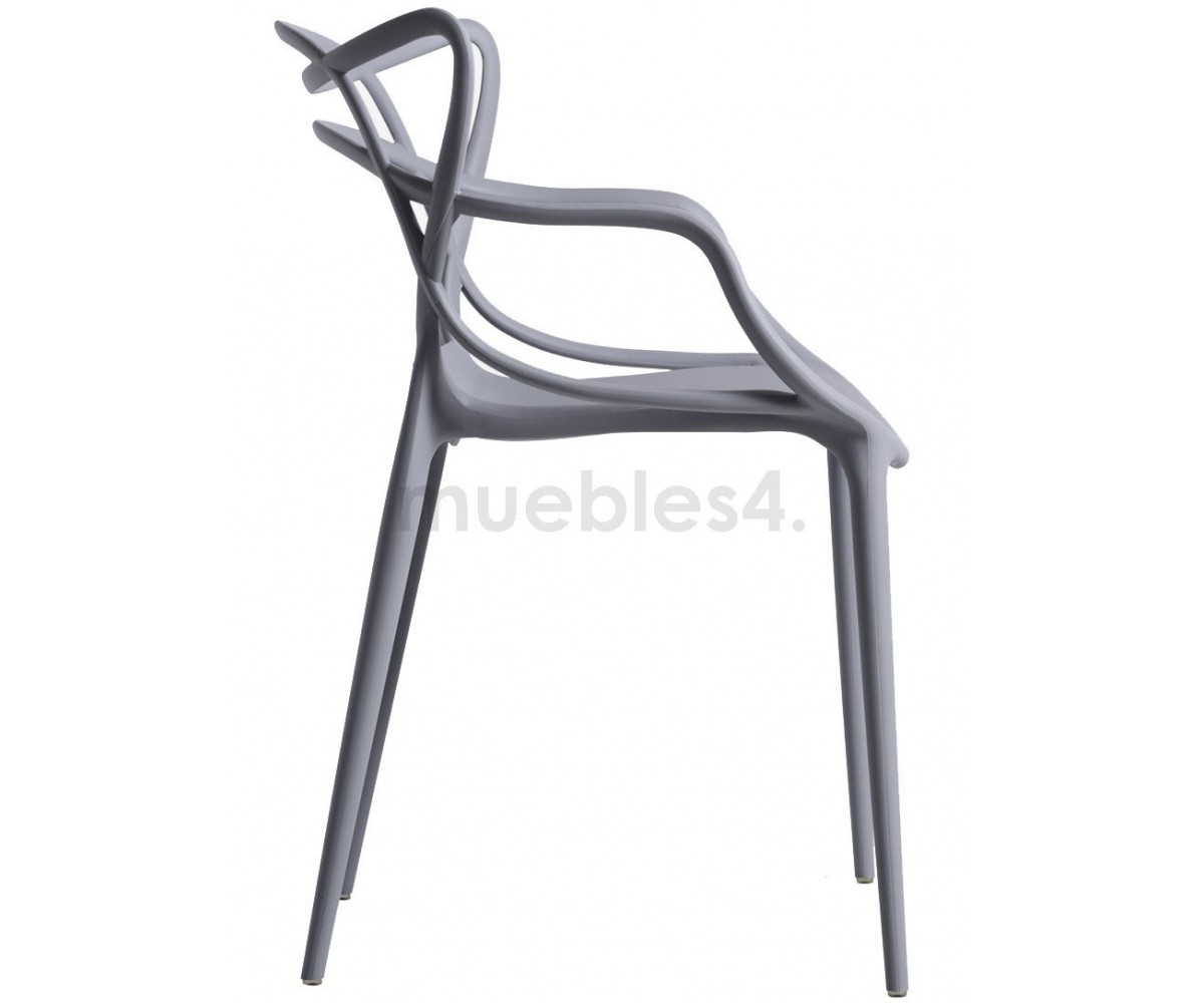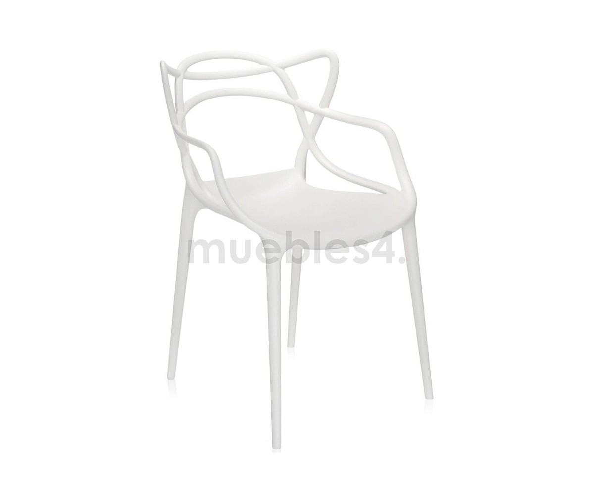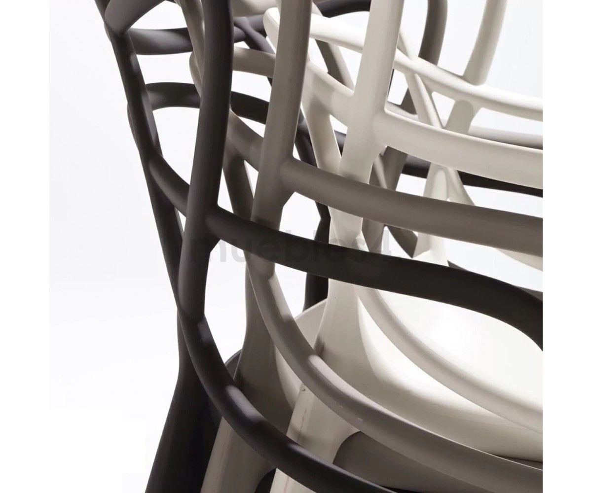 Silla apilables, inspirada en un diseño de Philippe Starck. La silla Masters es un escultórico diseño apilable que rinde homenaje a 3 icónicas piezas del diseño: La silla Tulip de Eero Saarinen, la Serie 7 de Arne Jacobsen y la Plastic Chair con base metálica Eiffel de Charles y Ray Eames. La fusión de las 3 obras forma la silla Masters. Apoyada sobre cuatro finas patas, el asiento de la silla Masters es amplio y cómodo. La particularidad de la silla es por lógica el respaldo, y todo su conjunto tiene un acabado especial con un aspecto atractivo, dando vida a una fusión de diferentes estilos.