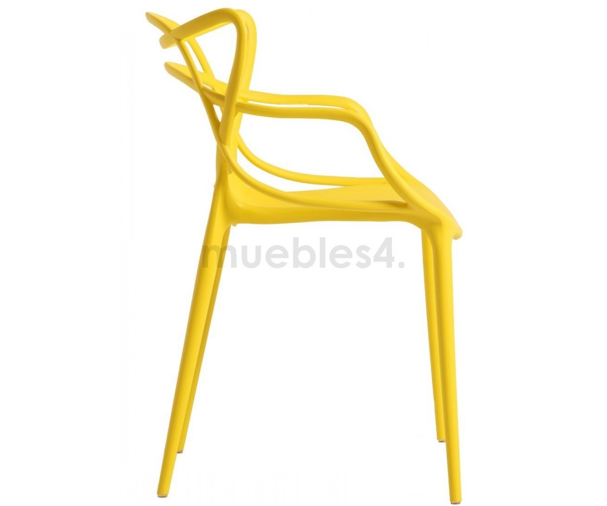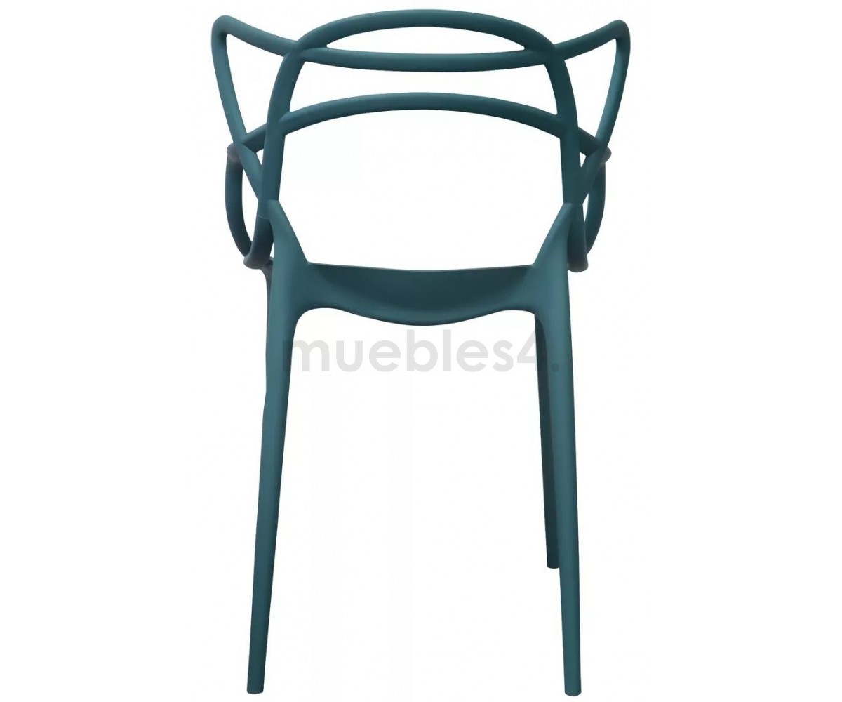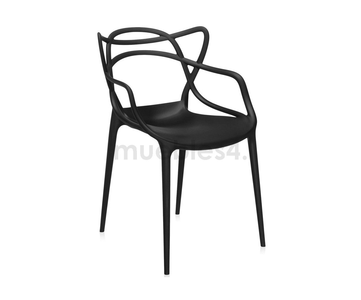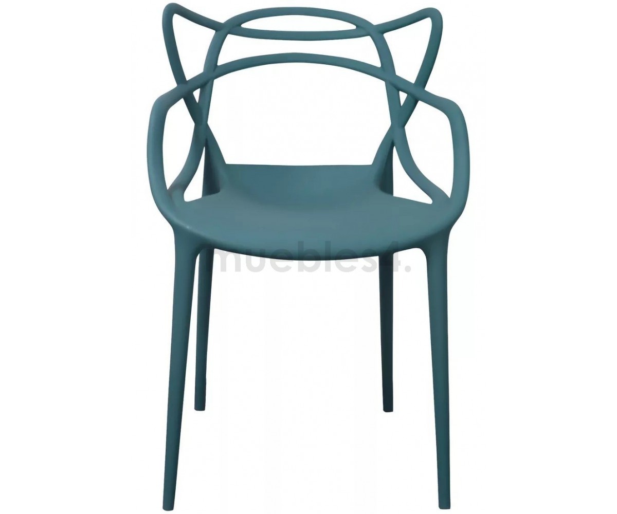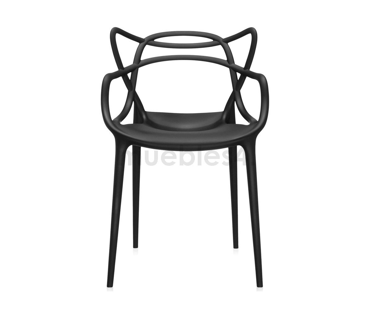 Silla apilables, inspirada en un diseño de Philippe Starck. La silla Masters es un escultórico diseño apilable que rinde homenaje a 3 icónicas piezas del diseño: La silla Tulip de Eero Saarinen, la Serie 7 de Arne Jacobsen y la Plastic Chair con base metálica Eiffel de Charles y Ray Eames. La fusión de las 3 obras forma la silla Masters. Apoyada sobre cuatro finas patas, el asiento de la silla Masters es amplio y cómodo. La particularidad de la silla es por lógica el respaldo, y todo su conjunto tiene un acabado especial con un aspecto atractivo, dando vida a una fusión de diferentes estilos.