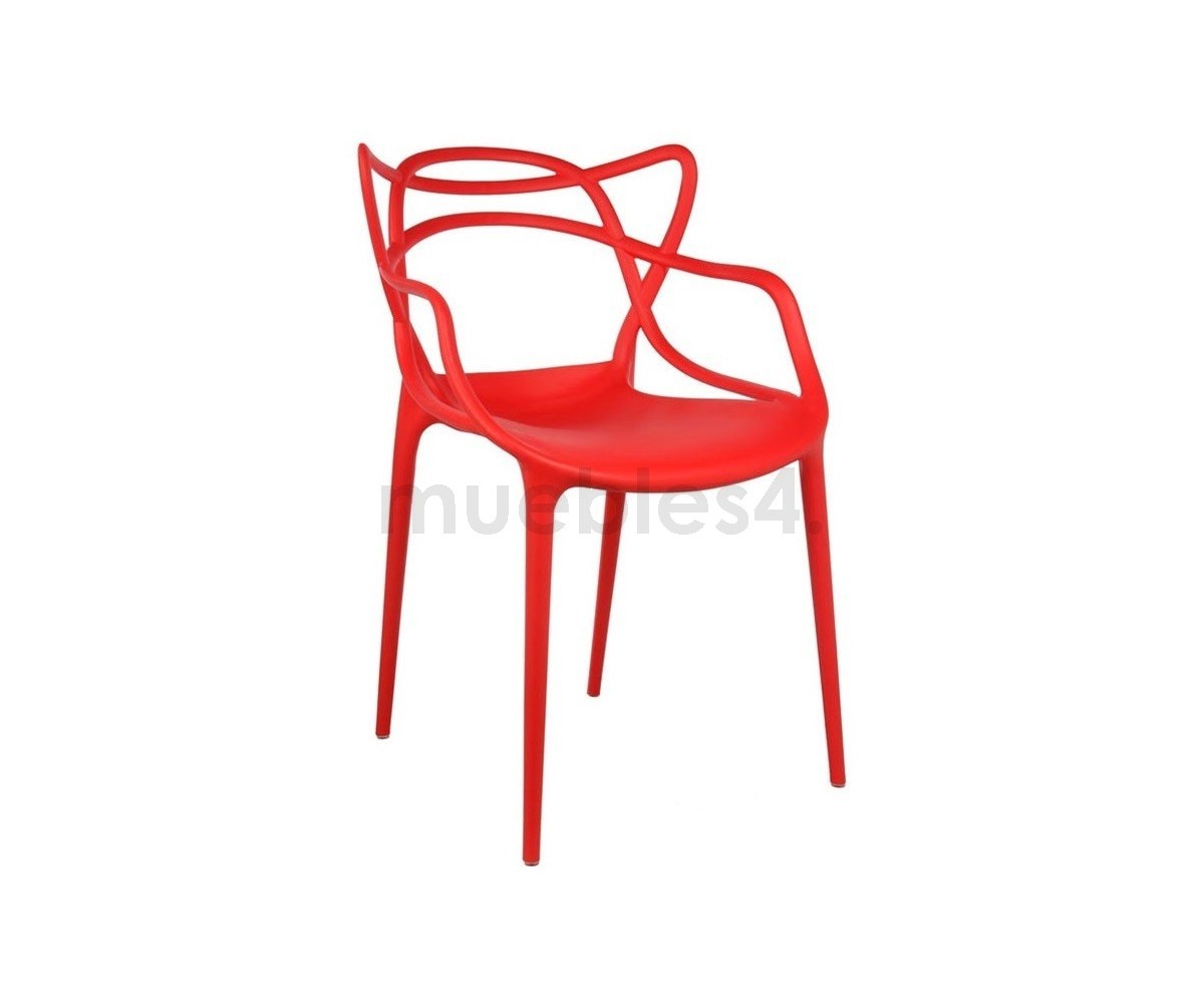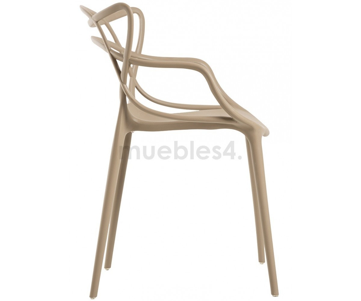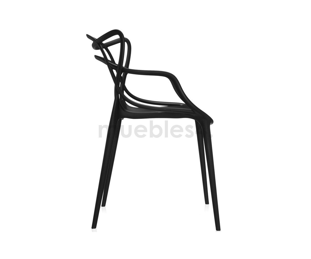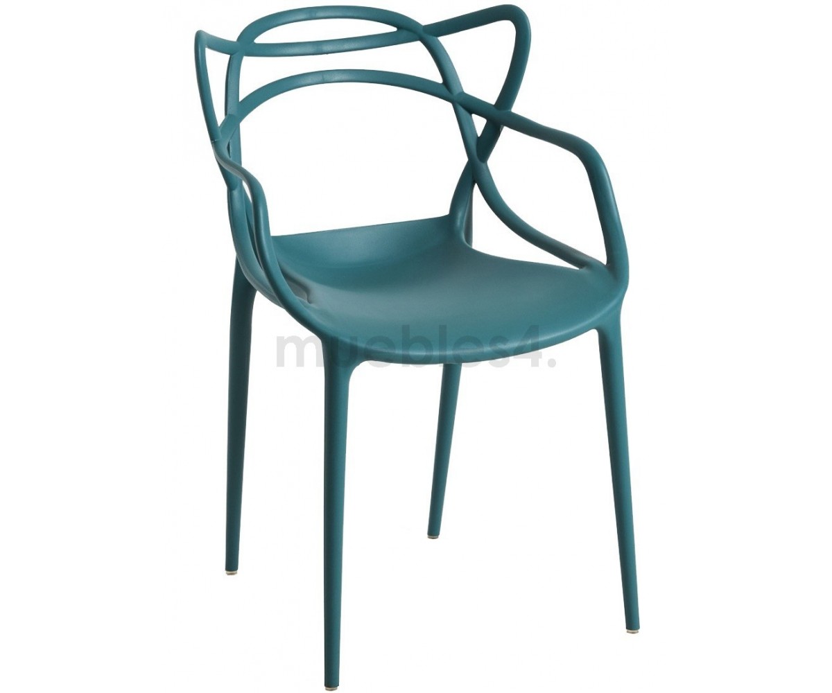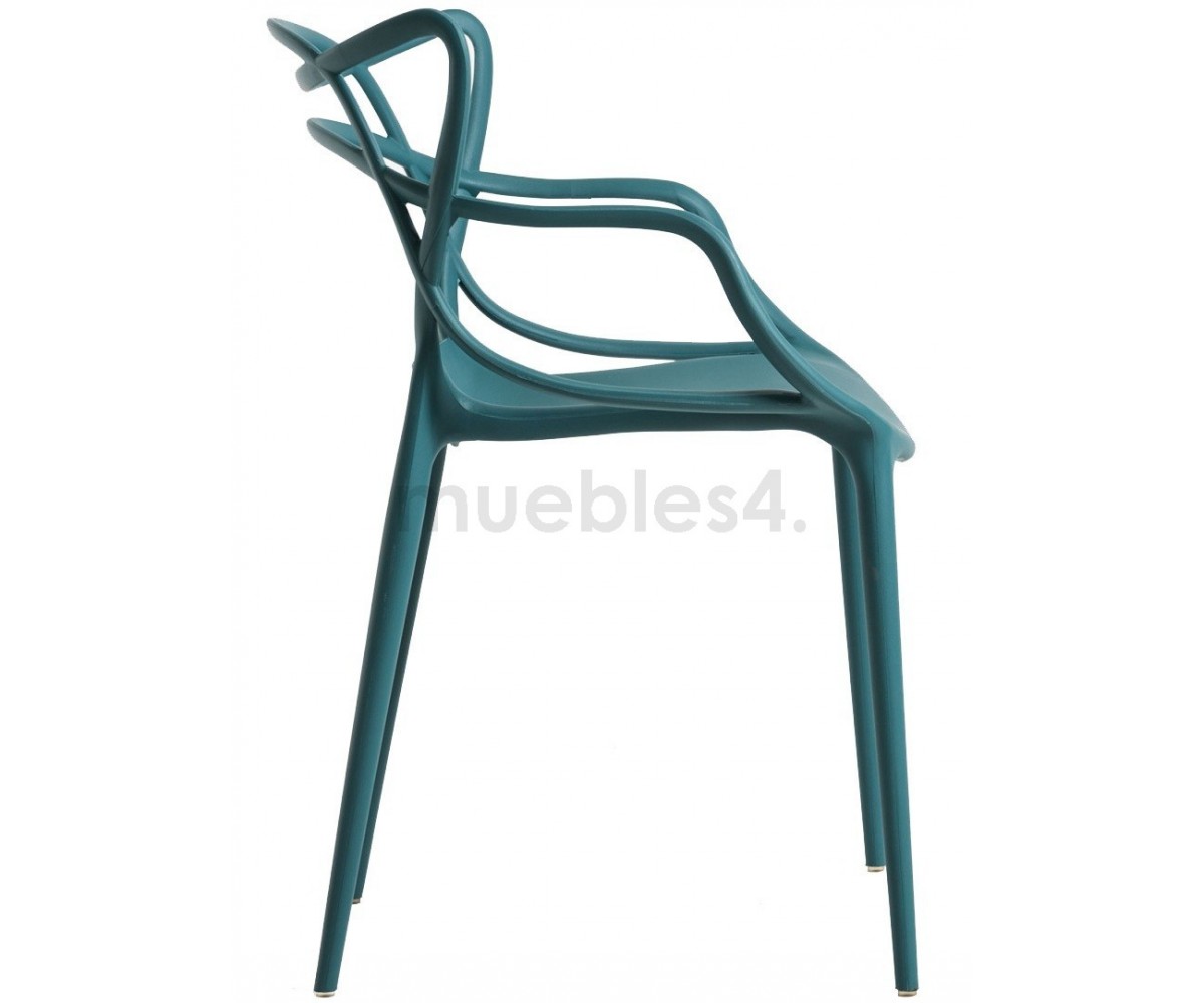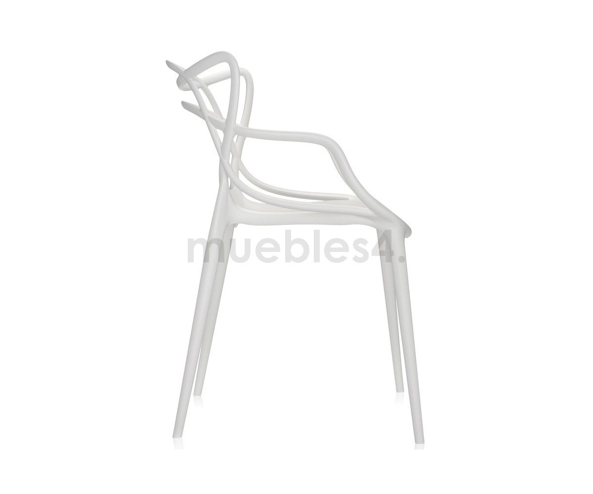 Silla apilables, inspirada en un diseño de Philippe Starck. La silla Masters es un escultórico diseño apilable que rinde homenaje a 3 icónicas piezas del diseño: La silla Tulip de Eero Saarinen, la Serie 7 de Arne Jacobsen y la Plastic Chair con base metálica Eiffel de Charles y Ray Eames. La fusión de las 3 obras forma la silla Masters. Apoyada sobre cuatro finas patas, el asiento de la silla Masters es amplio y cómodo. La particularidad de la silla es por lógica el respaldo, y todo su conjunto tiene un acabado especial con un aspecto atractivo, dando vida a una fusión de diferentes estilos.
