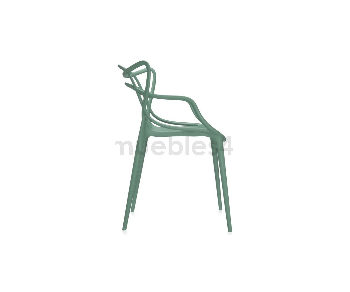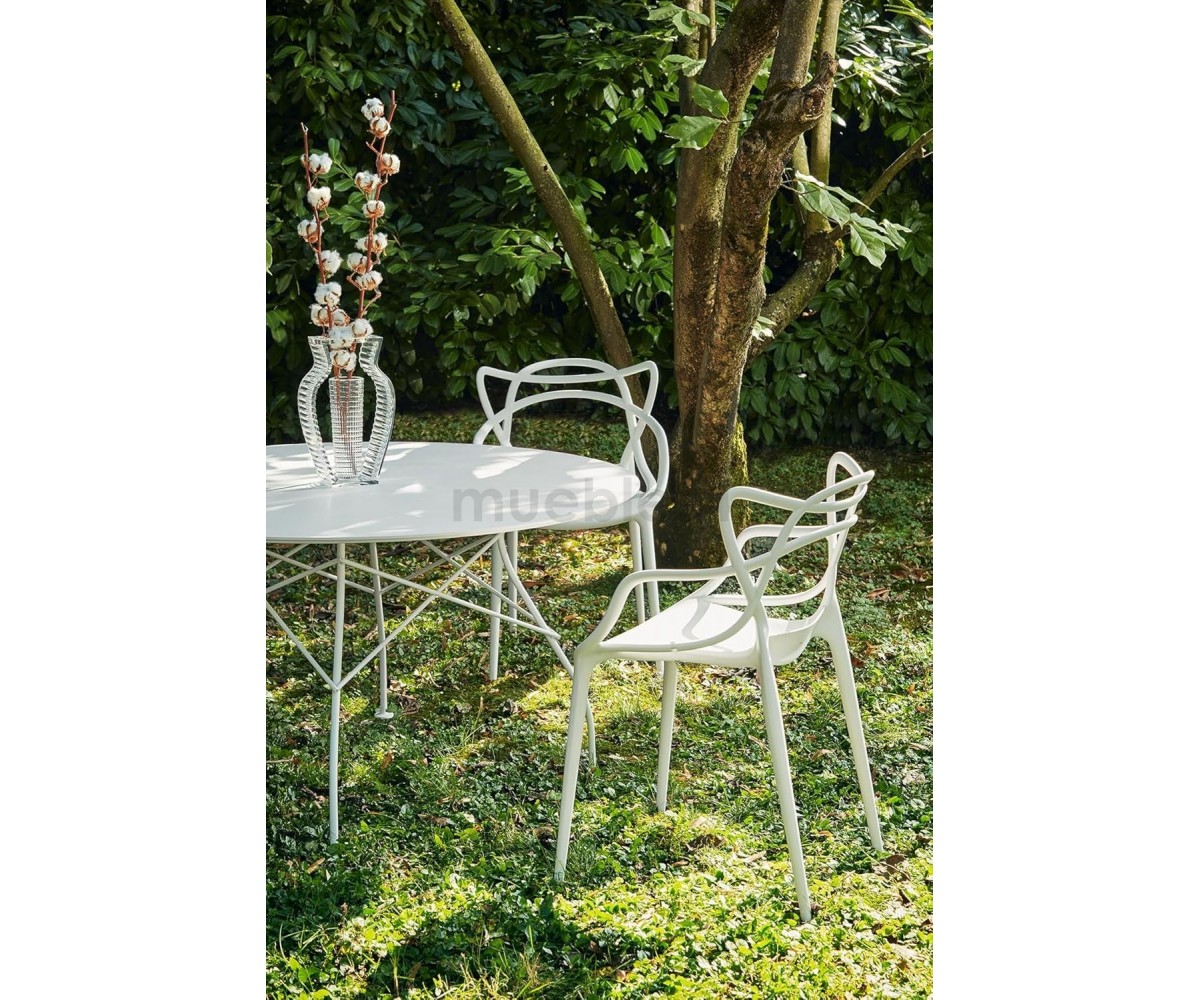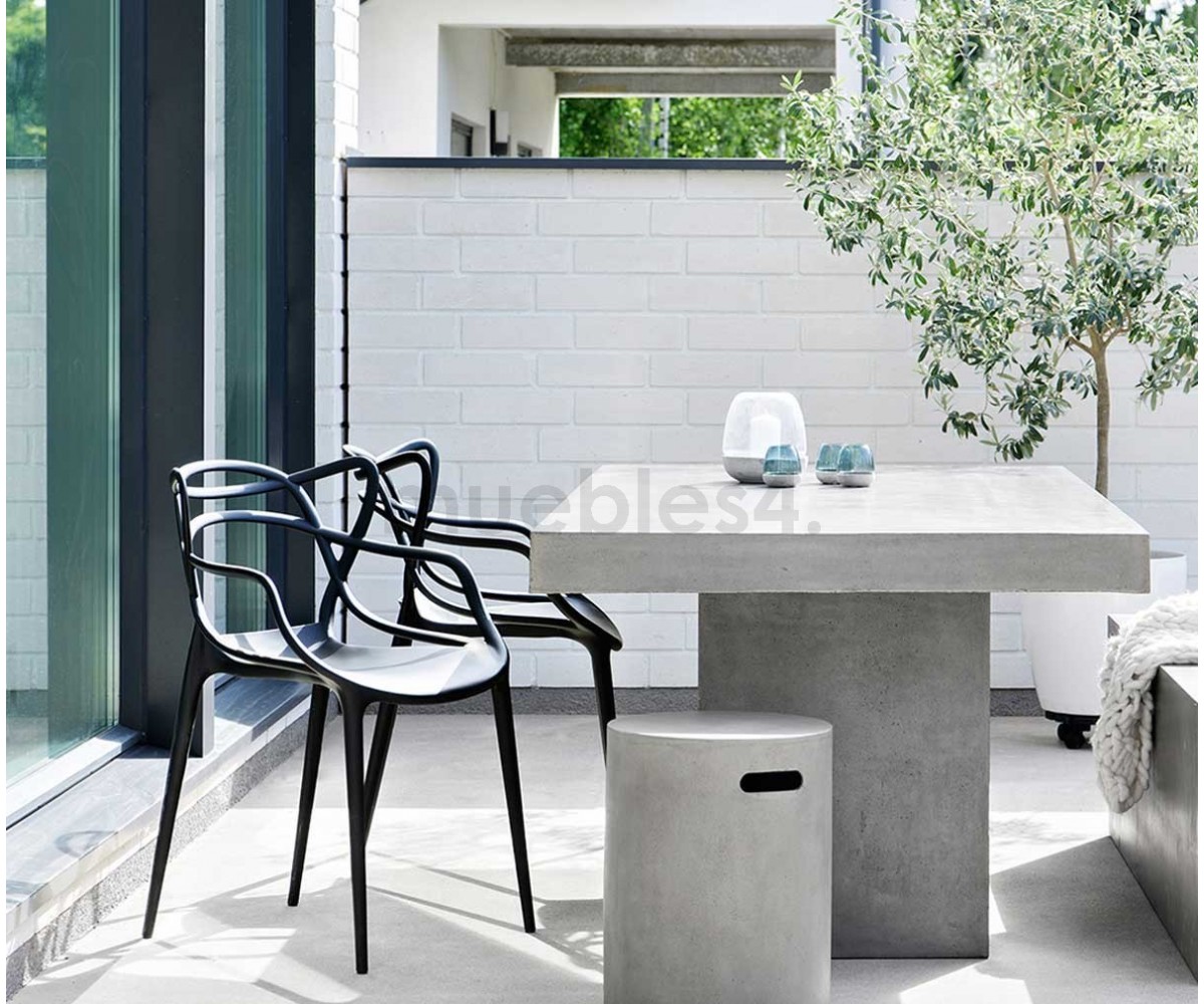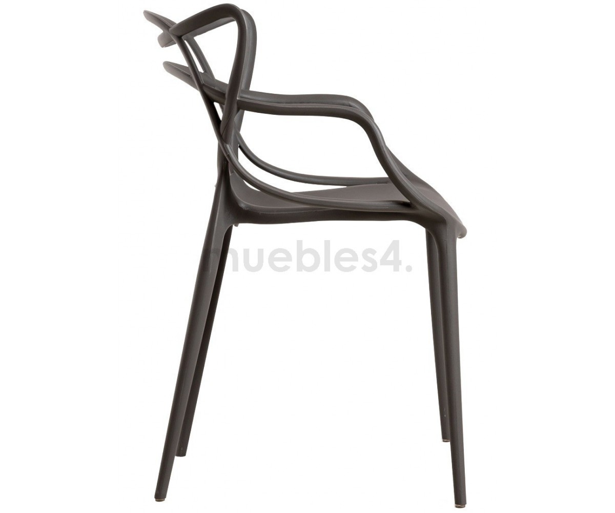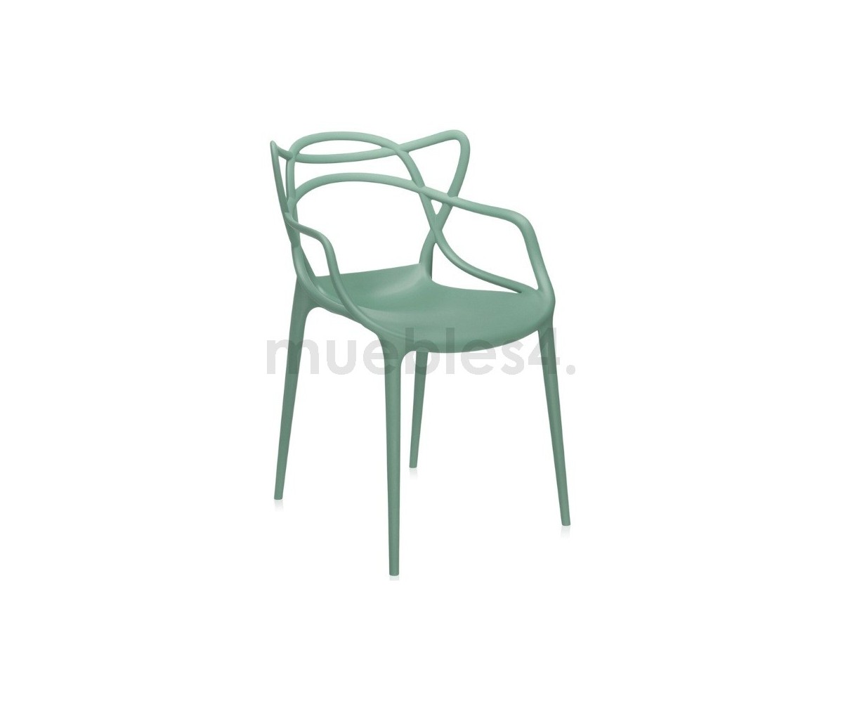 Silla apilables, inspirada en un diseño de Philippe Starck. La silla Masters es un escultórico diseño apilable que rinde homenaje a 3 icónicas piezas del diseño: La silla Tulip de Eero Saarinen, la Serie 7 de Arne Jacobsen y la Plastic Chair con base metálica Eiffel de Charles y Ray Eames. La fusión de las 3 obras forma la silla Masters. Apoyada sobre cuatro finas patas, el asiento de la silla Masters es amplio y cómodo. La particularidad de la silla es por lógica el respaldo, y todo su conjunto tiene un acabado especial con un aspecto atractivo, dando vida a una fusión de diferentes estilos.