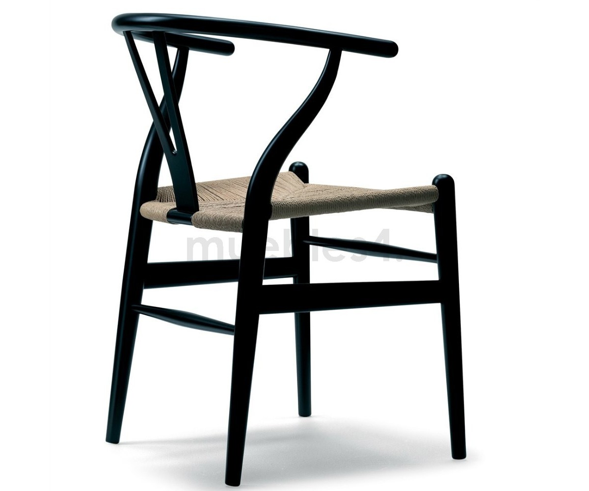 Silla inspirada en un diseño de Hans J. Wegner. Estructura fabricada en madera de roble lacado en color negro, asiento trenzada en enea color natural. Réplica exacta con materiales originales de máxima calidad.