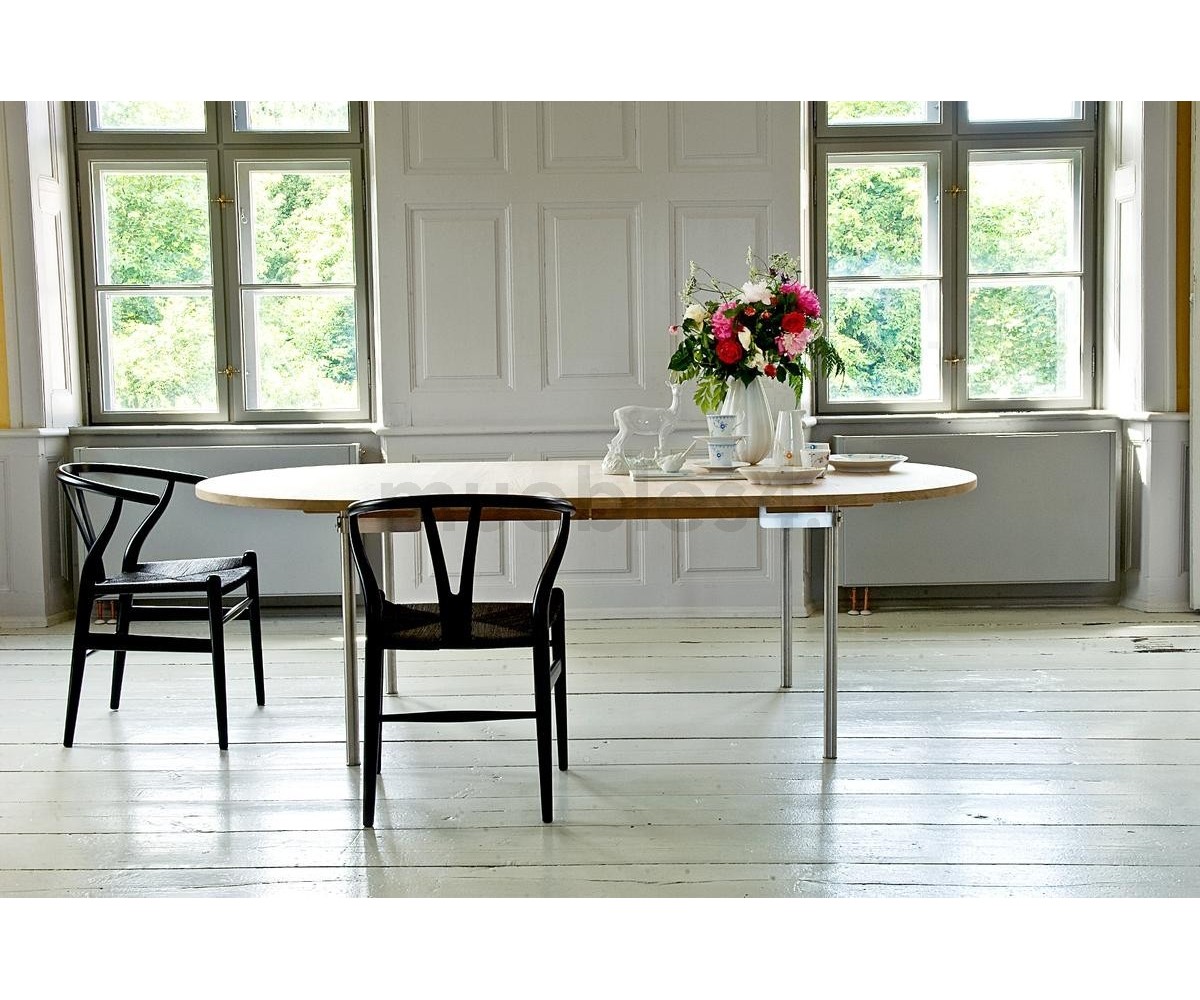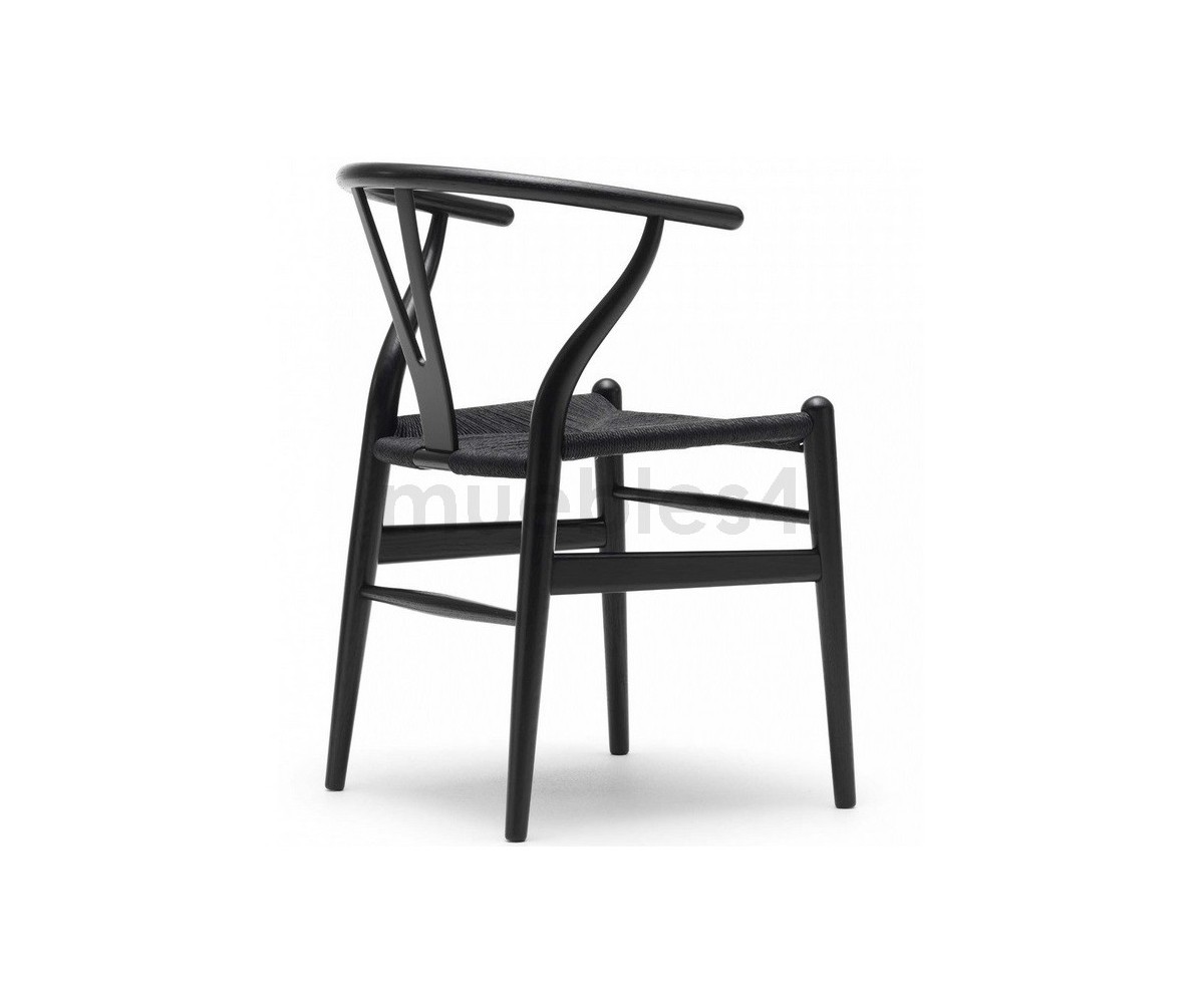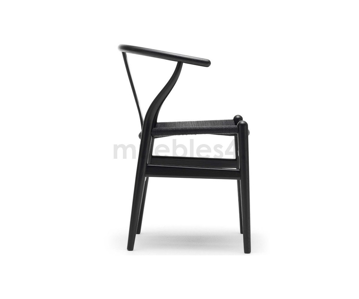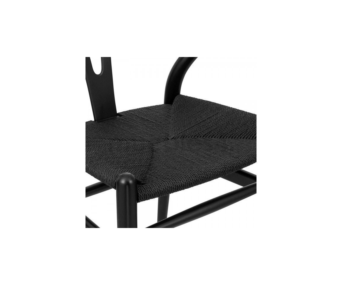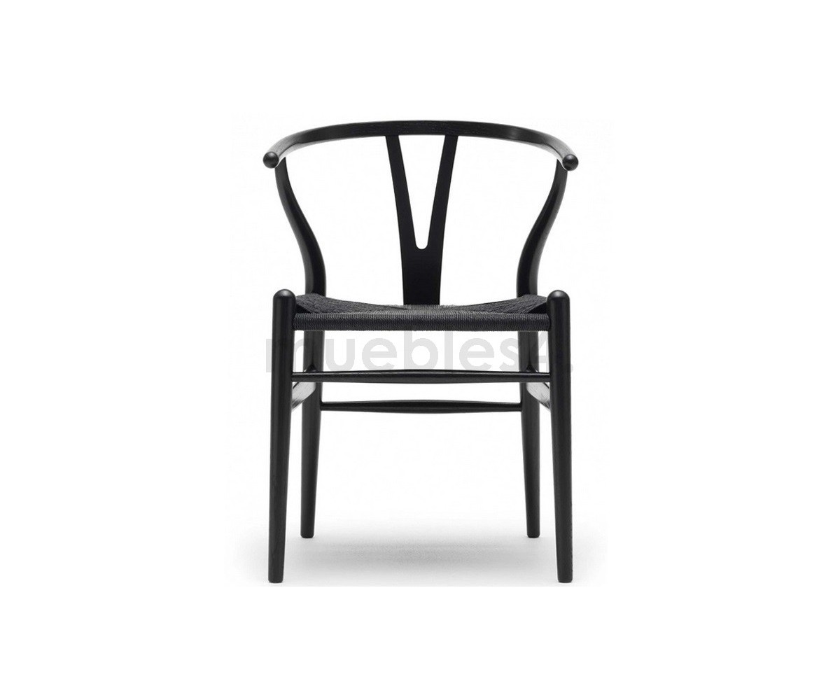 Silla inspirada en un diseño de Hans J. Wegner. Estructura fabricada en madera de roble lacado en color negro, asiento trenzada en enea color negro. Réplica exacta con materiales originales de máxima calidad.