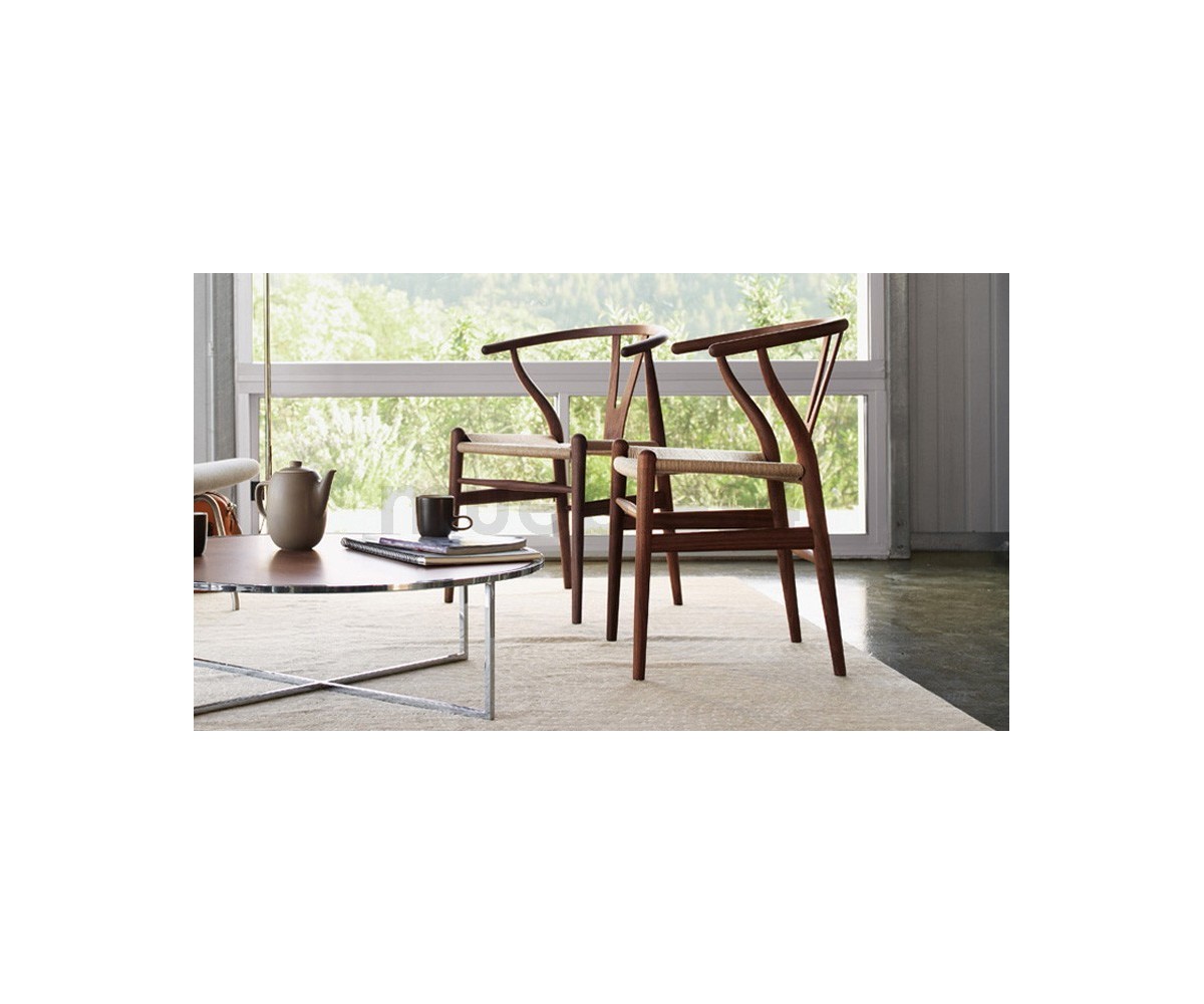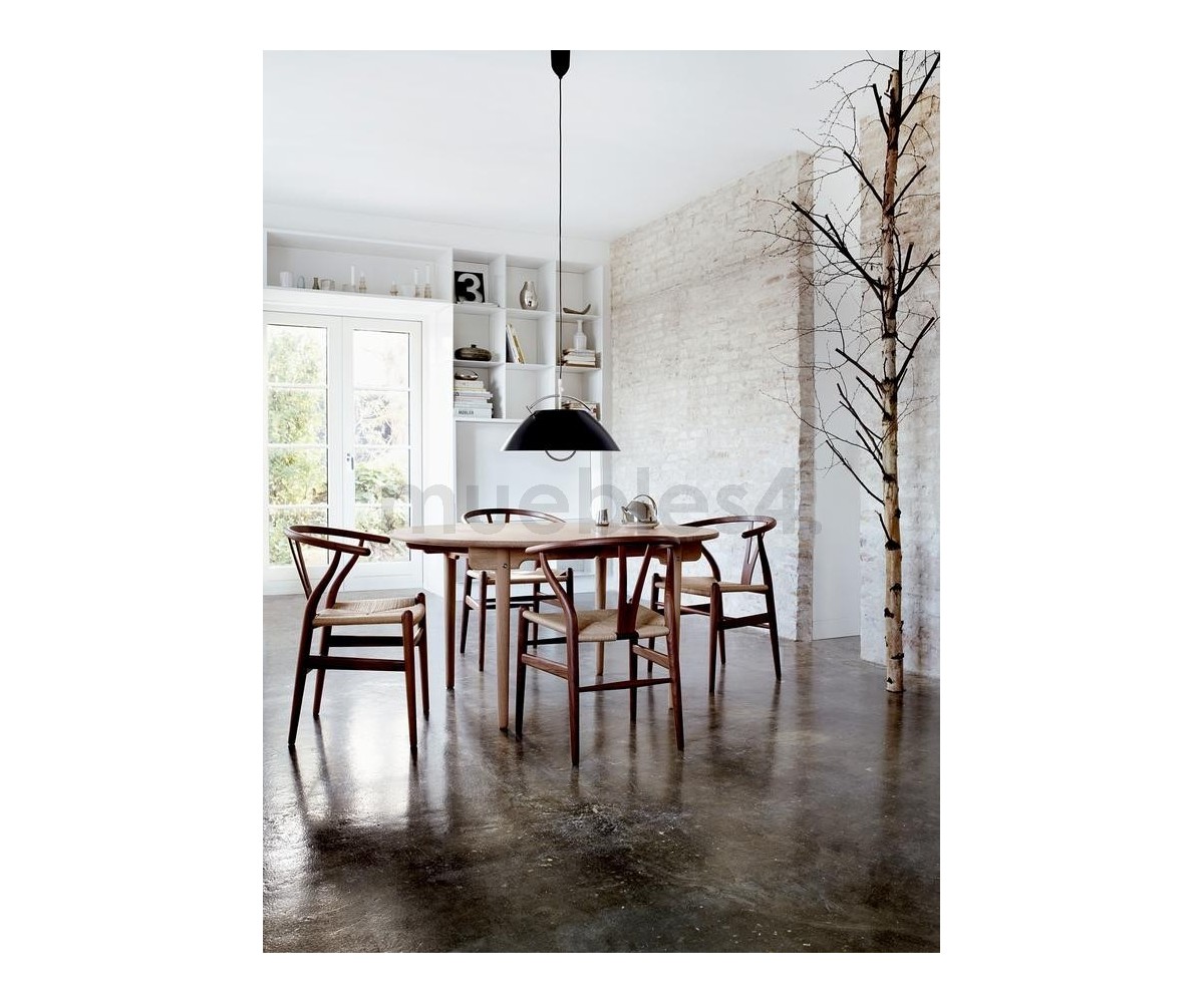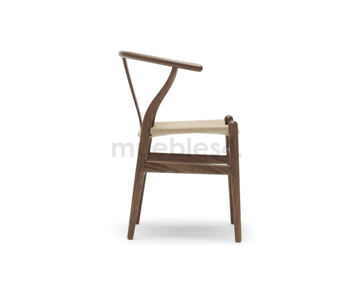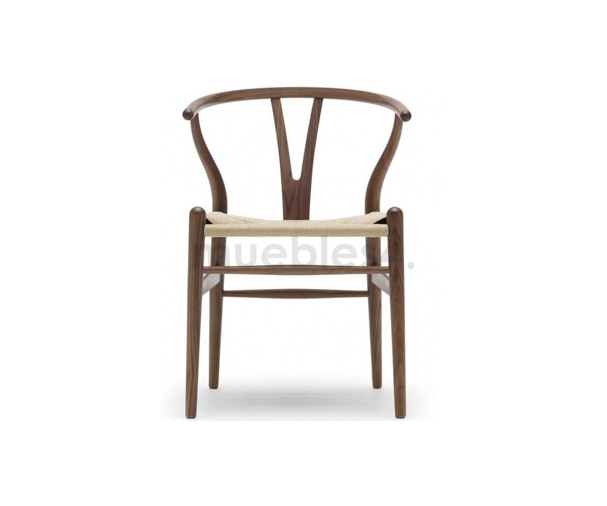 Silla inspirada en un diseño de Hans J. Wegner. Estructura fabricada en madera de roble terminación color nogal, asiento trenzada en enea color natural. TAMBIÉN DISPONIBLE CON ASIENTO ENEA NEGRO, CONSULTAR. Réplica exacta con materiales originales de máxima calidad.