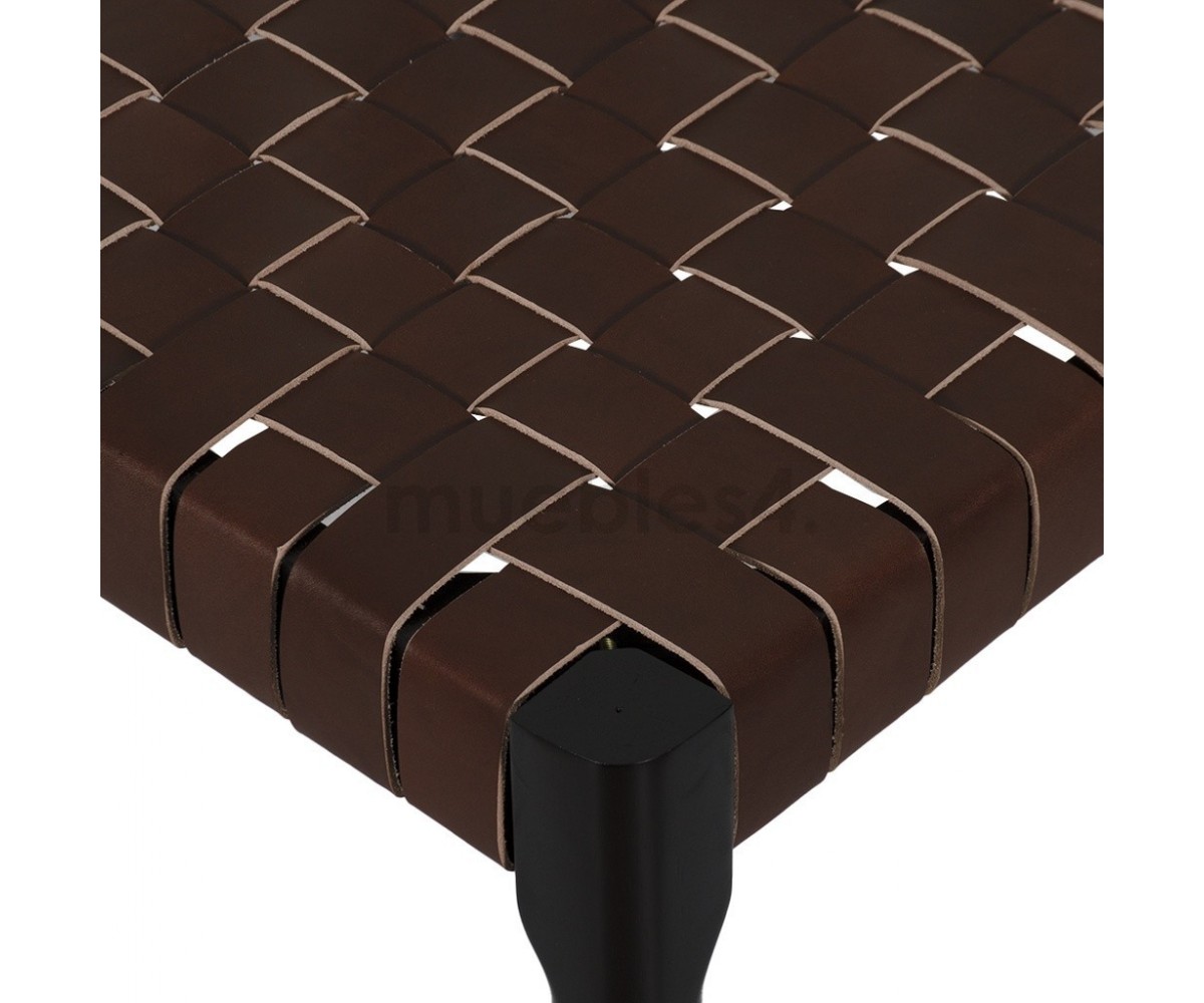 • Asiento fabricado artesanalmente con tiras de piel entrelazadas, terminación marrón o negro.