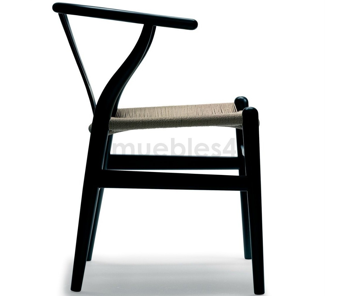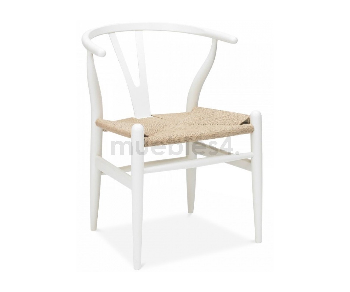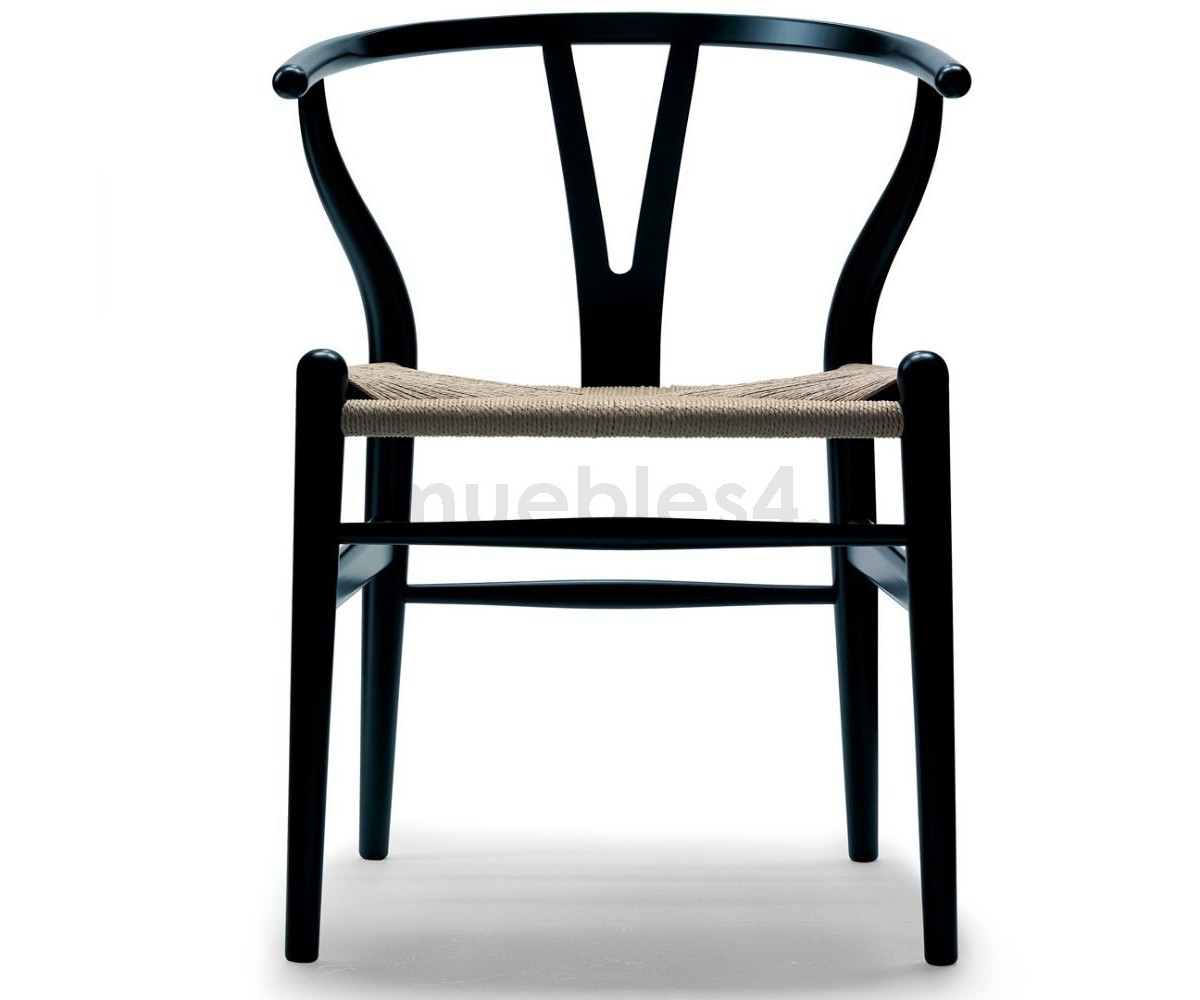 Silla inspirada en un diseño de Hans J. Wegner. Estructura fabricada en madera de haya lacado color negro o blanco, asiento trenzada en enea color natural. Réplica exacta con materiales originales de máxima calidad.