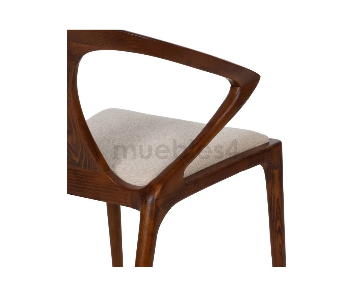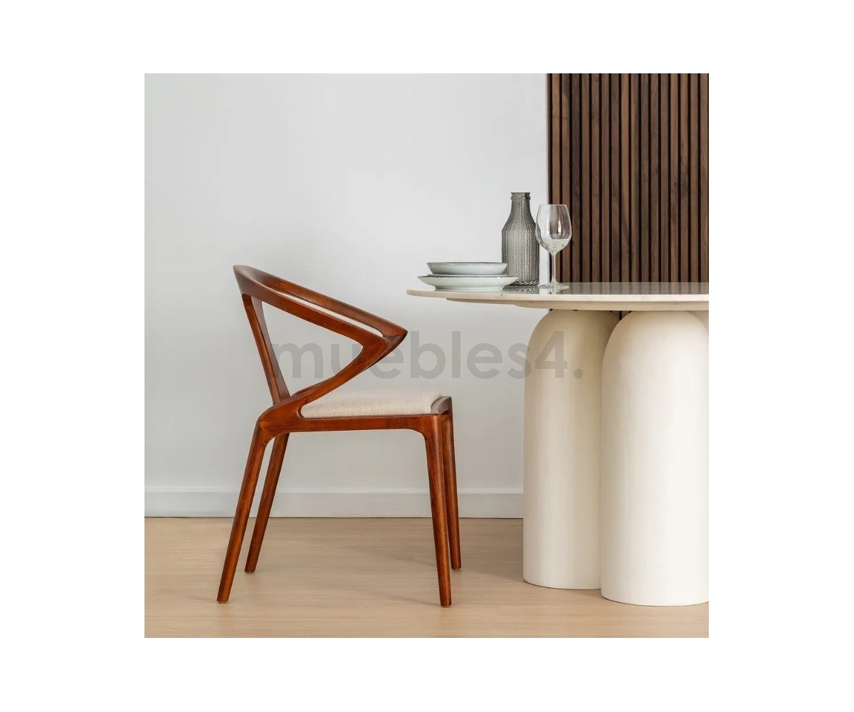 Silla inspirada en un diseño de Agrippa. Sensualidad tallada en madera, como una ráfaga de viento o una danza fluida. El diseño de Salma juega con la estructura para potenciar la sensación de movimiento y redefinir la simbiosis entre concepto y fisicalidad. Sus reposabrazos angulares y su respaldo arqueado crean una silueta sofisticada que seguro no pasará desapercibida.