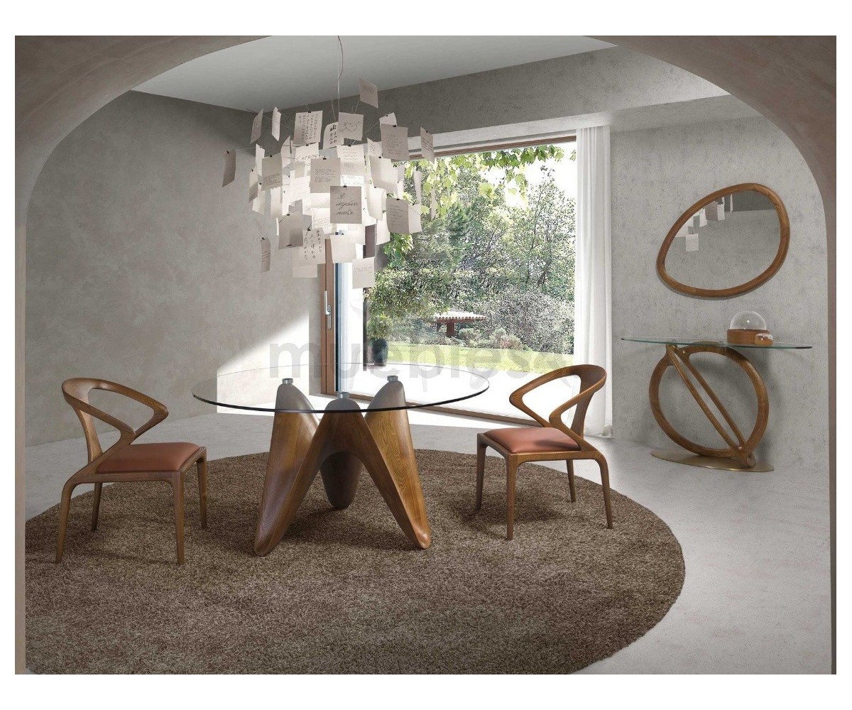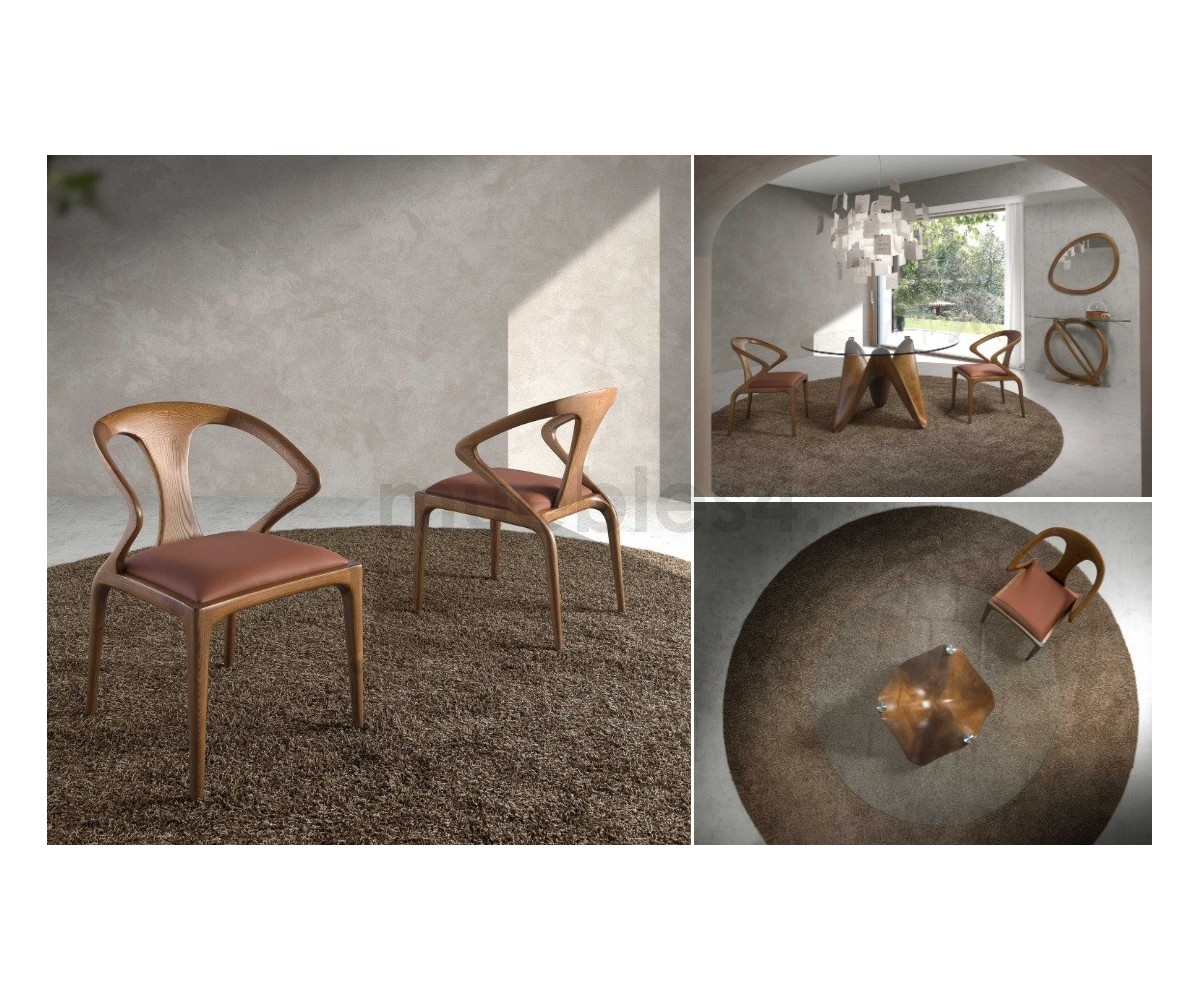Silla inspirada en un diseño de Agrippa. Sensualidad tallada en madera, como una ráfaga de viento o una danza fluida. El diseño de Salma juega con la estructura para potenciar la sensación de movimiento y redefinir la simbiosis entre concepto y fisicalidad. Sus reposabrazos angulares y su respaldo arqueado crean una silueta sofisticada que seguro no pasará desapercibida.