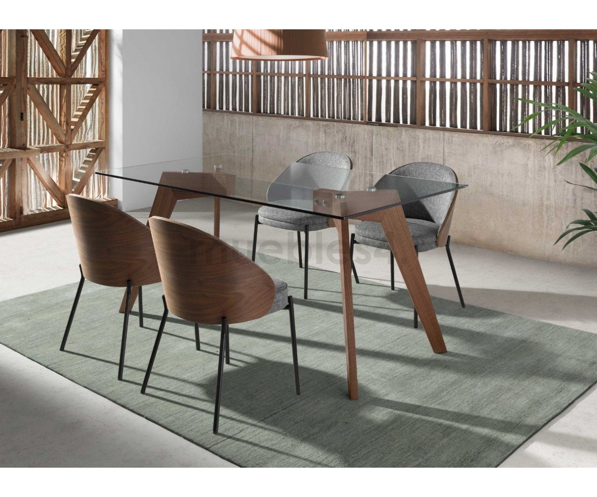 Silla inspirada en un diseño de Driade. Silla discípula de la silla Costes de Philippe Starck. Elegante silla que combina la robustez de la madera con la delicadeza de la tela. Su estructura de acero le otorga una resistencia inigualable, mientras que el asiento en tela proporciona una comodidad excepcional envolvente.