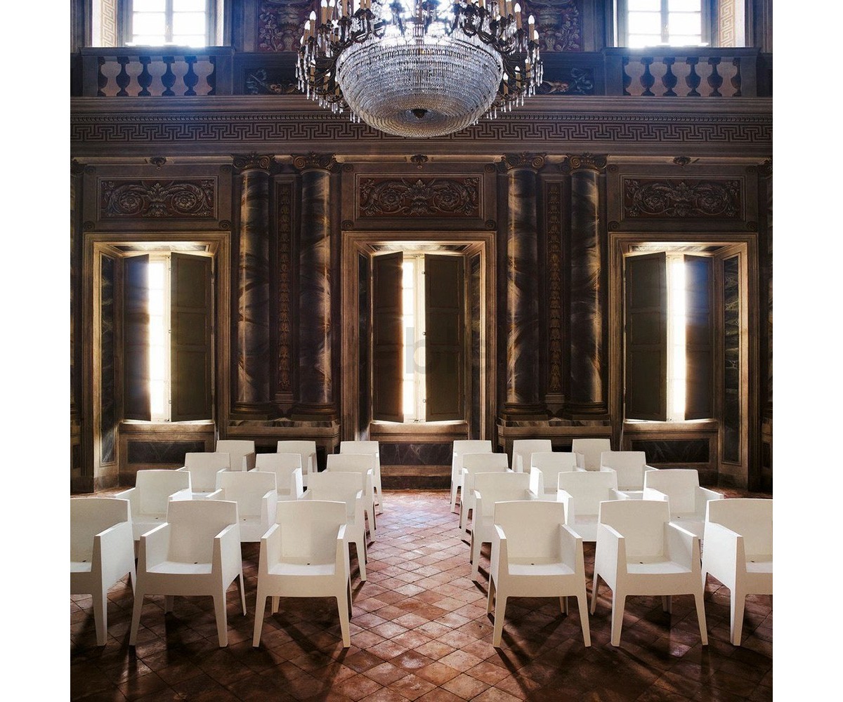 Silla/Sillón inspirado en un diseño de Philippe Starck para Driade. Un icono del diseño moderno que combina simplicidad y personalidad. Con su estructura geométrica y líneas limpias, ofrece un estilo contemporáneo y versátil, ideal para interiores y exteriores, sin elementos desmontables. Su diseño envolvente con apoyabrazos integrados proporciona comodidad y soporte, haciendo que sea tan funcional como elegante. Además, es apilable, lo que facilita su almacenamiento cuando no se utiliza. Disponible en una gama de colores modernos, la Toy se adapta a diferentes estilos y ambientes, aportando un toque fresco y sofisticado. Su estilo atemporal la ha convertido en un clásico en el mundo del diseño de interiores y exteriores.
