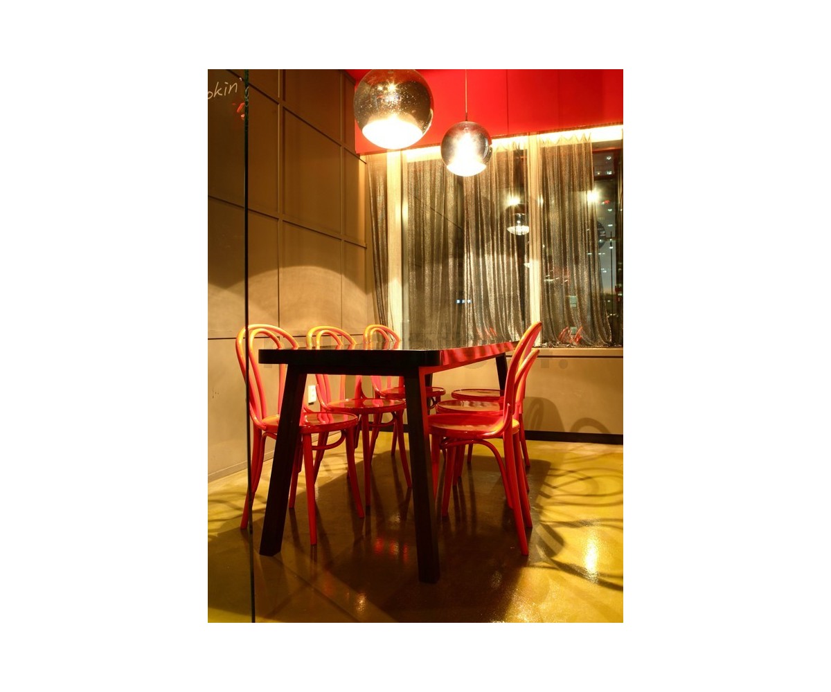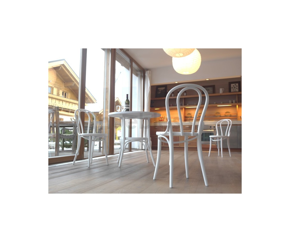 Silla inspirada en un diseño de Michael Thonet. Estructura fabricada en madera de roble macica, acabado en color rojo. Réplica exacta con materiales originales de máxima calidad.