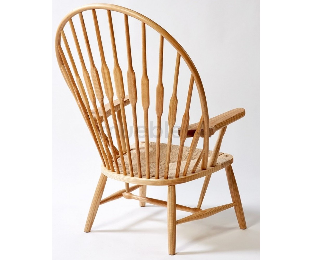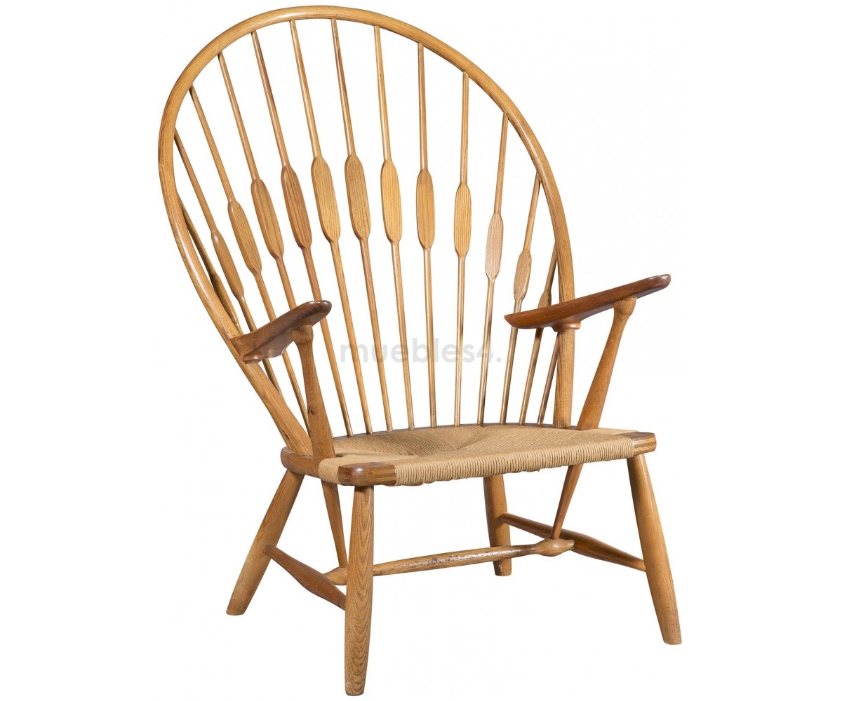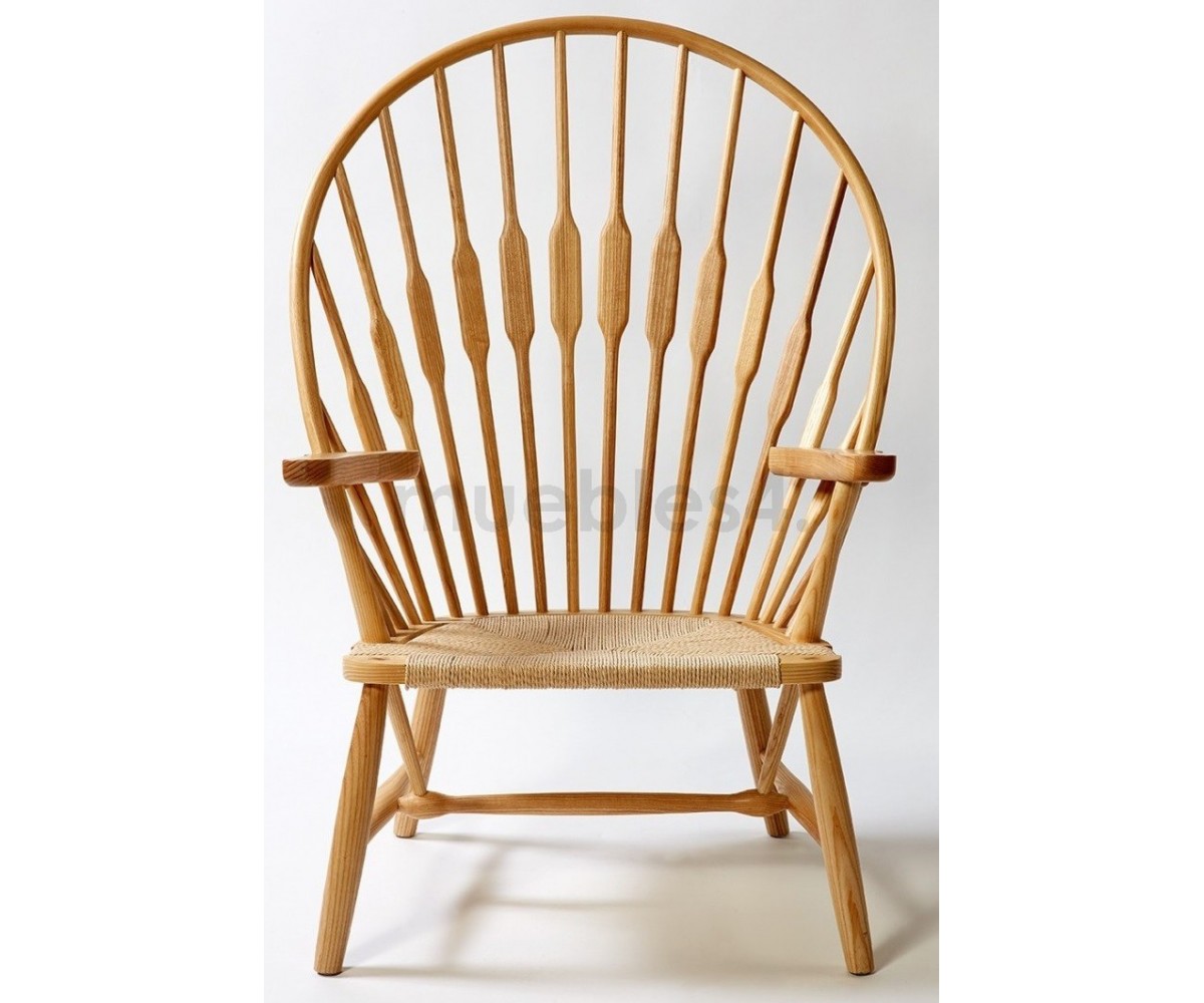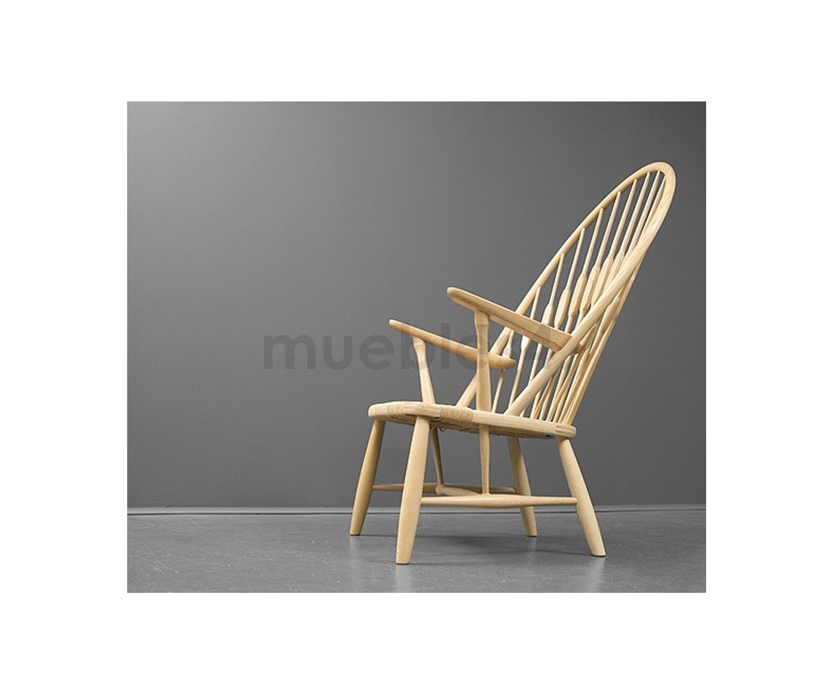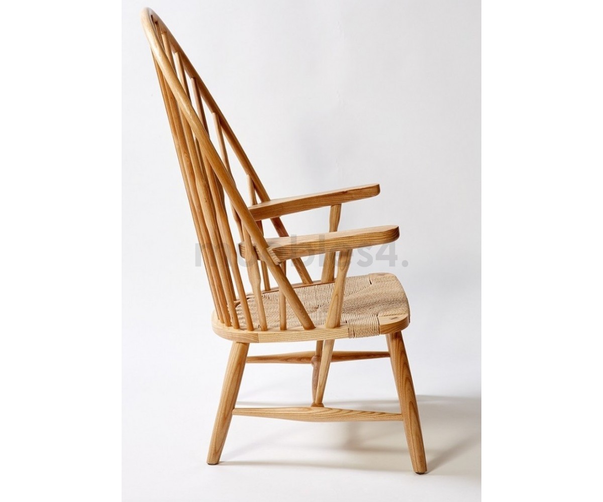 Sillón inspirado en un diseño de Hans J. Wegne. Estructura fabricada en madera de roble macizo, terminación natural tratado, asiento en fribra de cuerda trenzada hecho artesanálmente. Réplica exacta con materiales originales de máxima calidad
