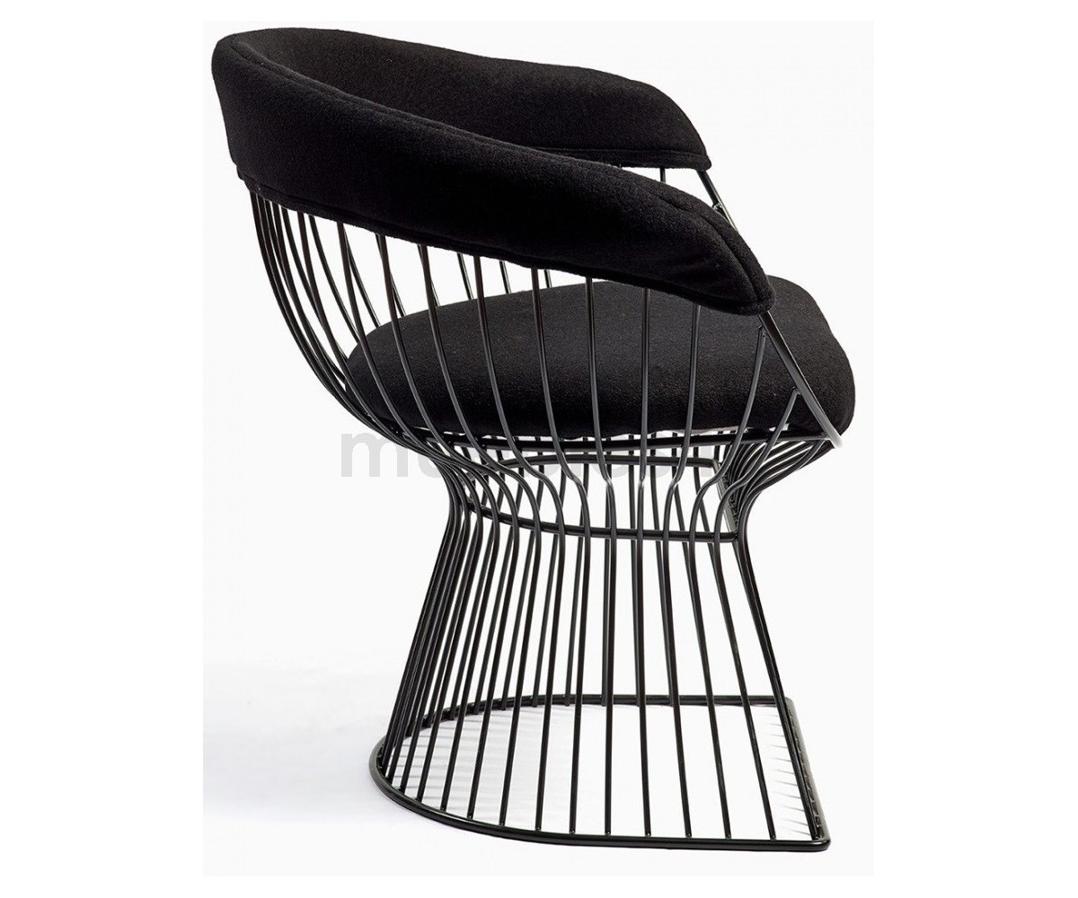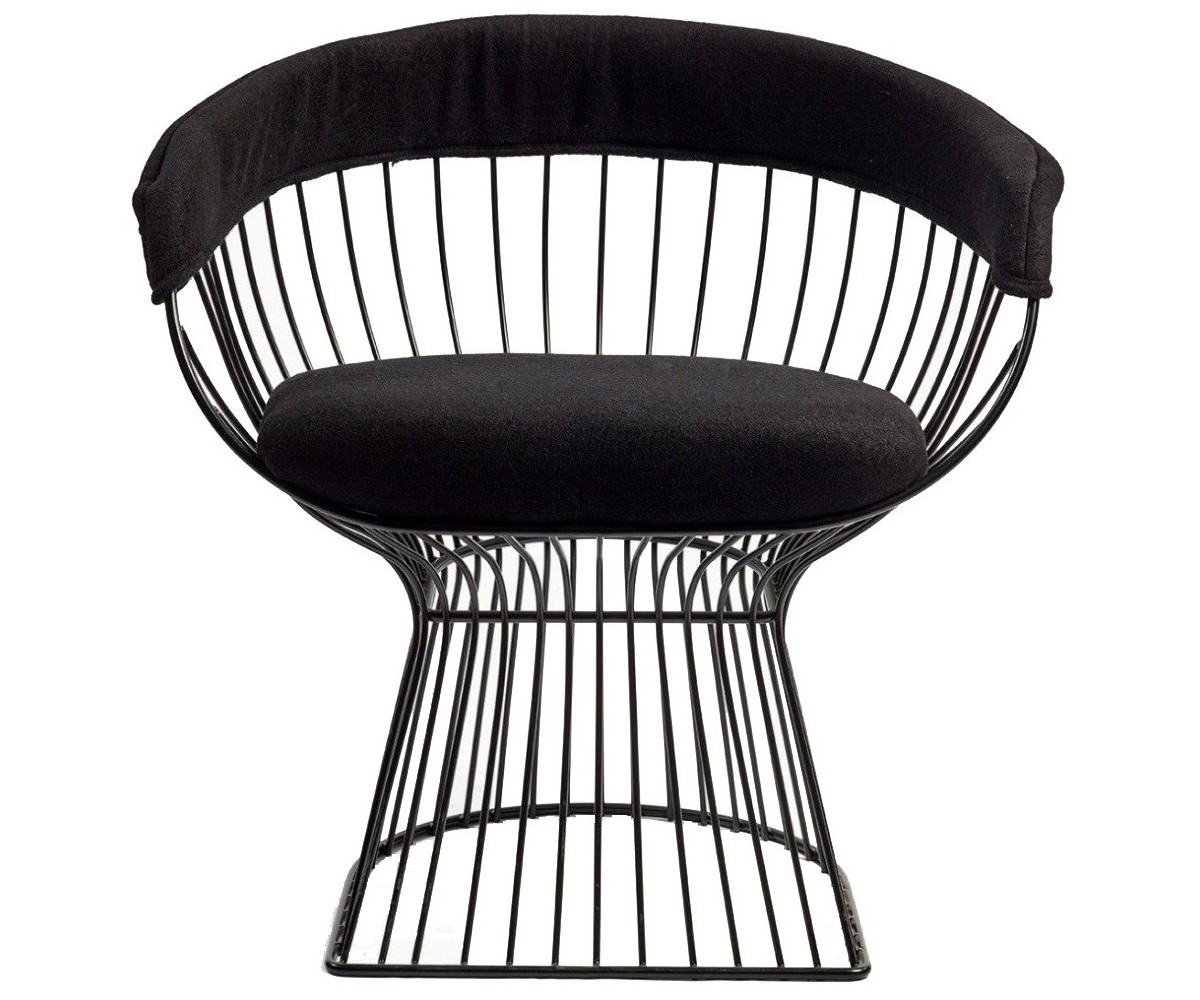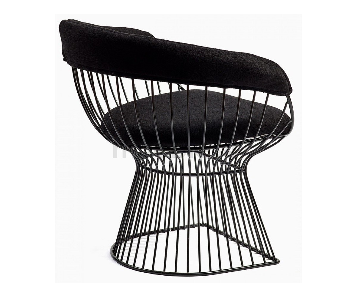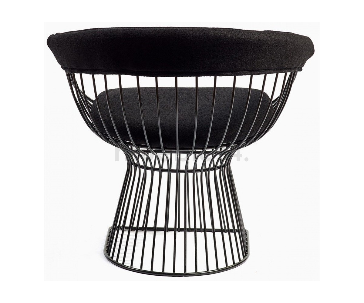 Sillón estilo mid-century inspirado en un diseño de Warren Platner. Estructura en acero tubular lacado al horno color negro. Respaldo y asiento tapizado en tejido de algodón de alta calidad en color negro. Réplica exacta con materiales originales de máxima calidad.