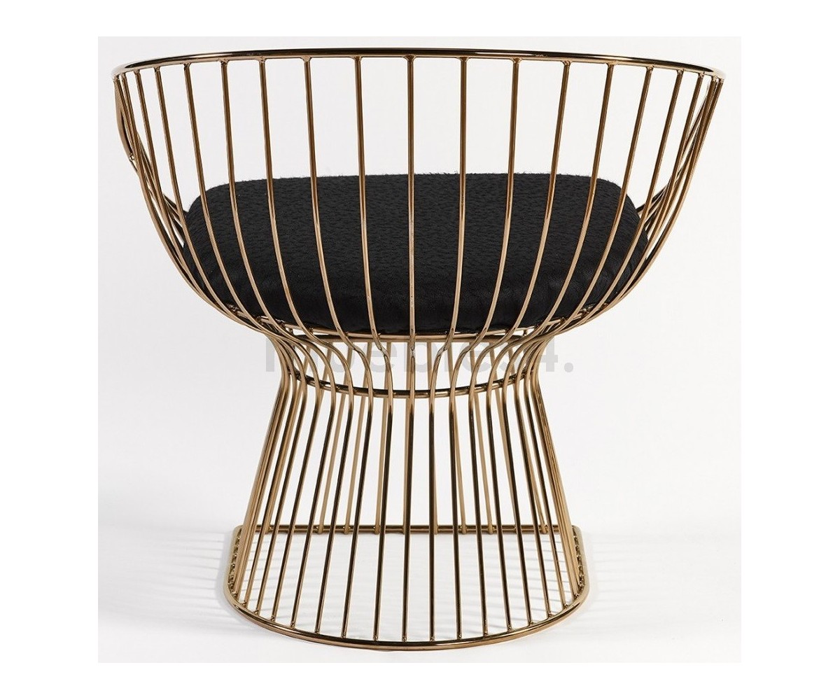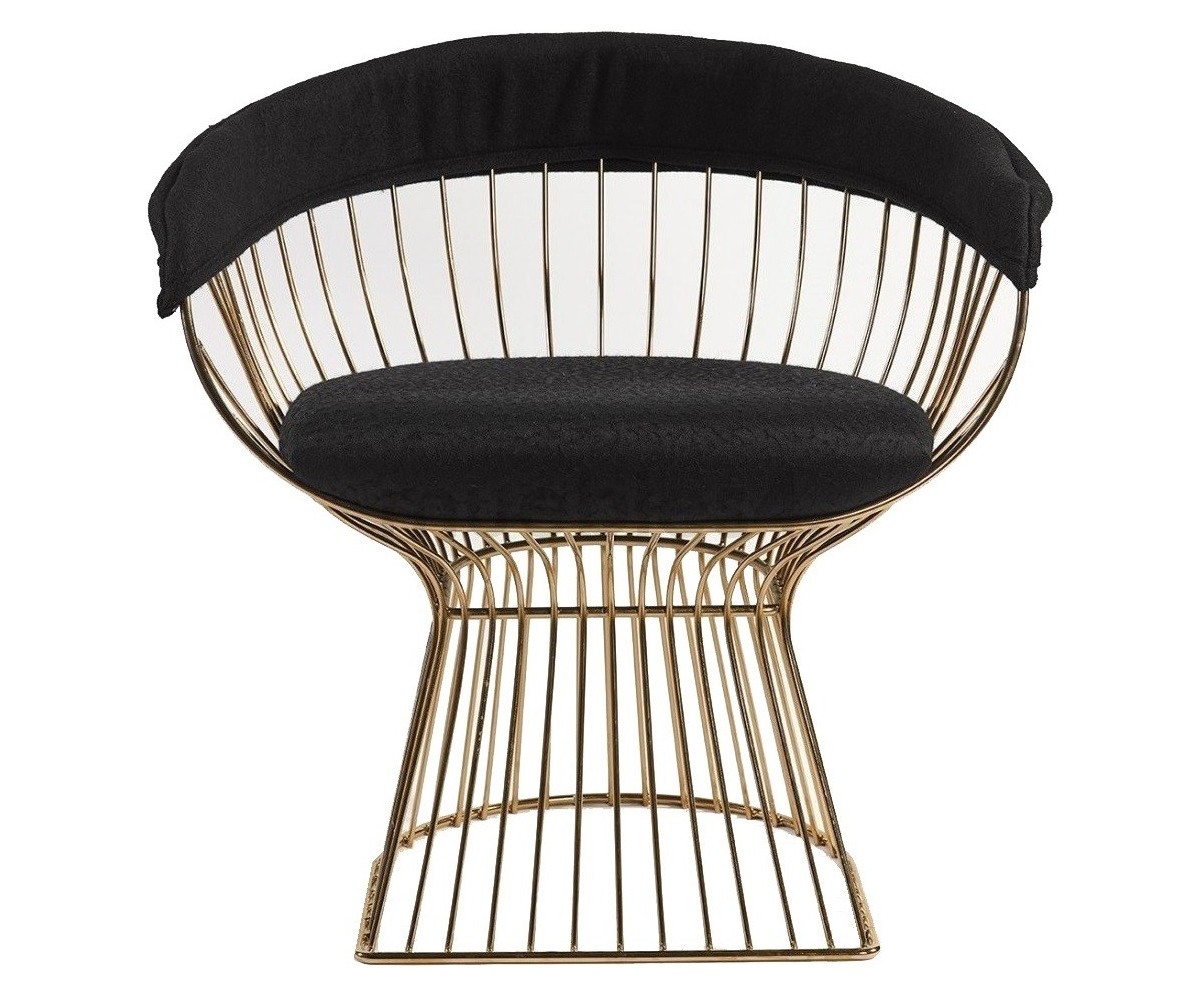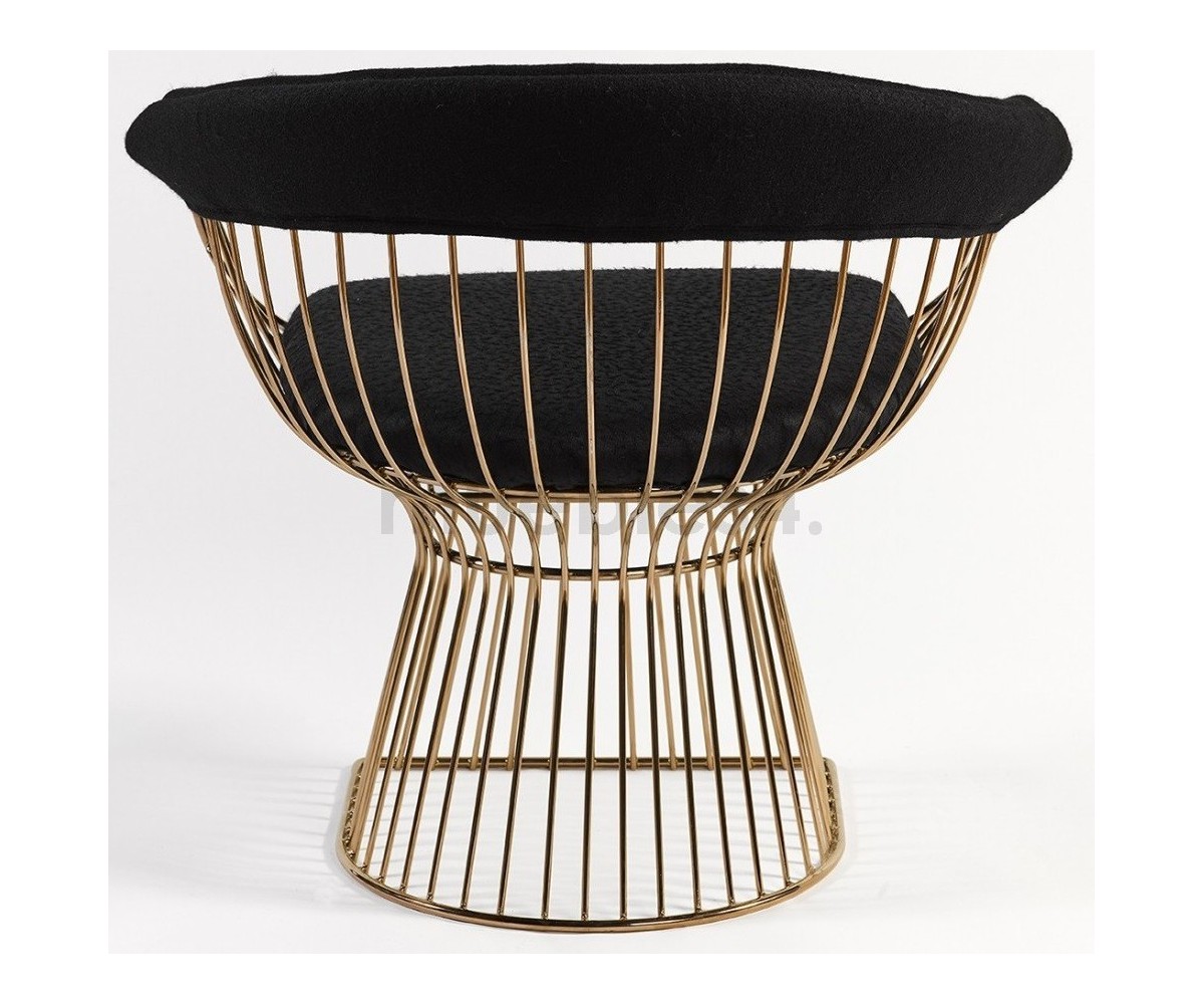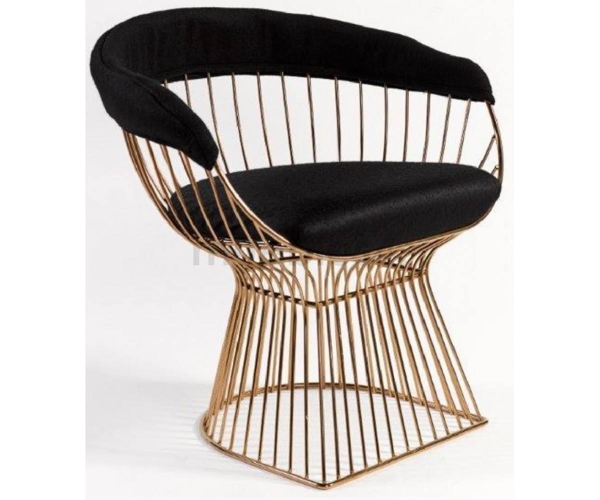Sillón estilo mid-century inspirado en un diseño de Warren Platner. Estructura en acero tubular lterminacón oro rosado. Asiento tapizado en tejido de algodón de alta calidad en color negro. Réplica exacta con materiales originales de máxima calidad.