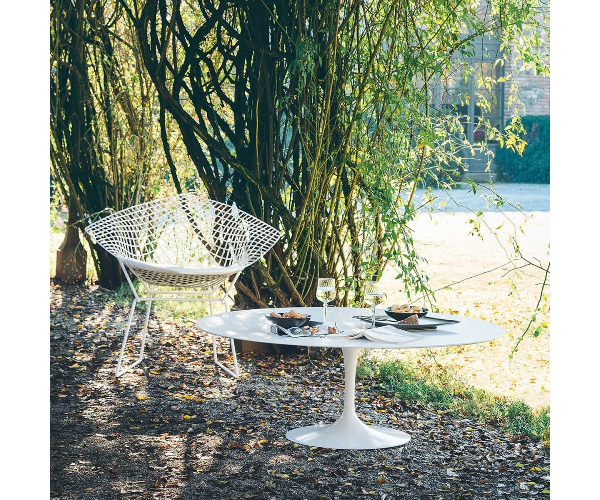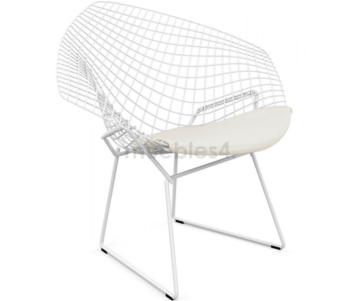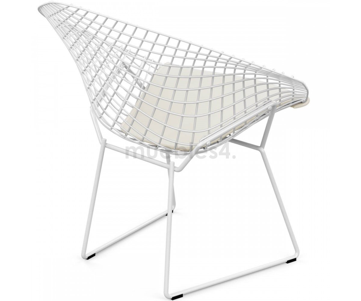 Sillón inspirado en un diseño de Harry Bertoia. Estudio sublime del espacio, la forma y la función de uno de los maestros escultores del siglo pasado. Al igual que Eero Saarinen y Mies van der Rohe, Bertoia encontró la gracia elegante en un material industrial, elevándolo más allá de su utilidad normal hasta convertirlo en una obra de arte.