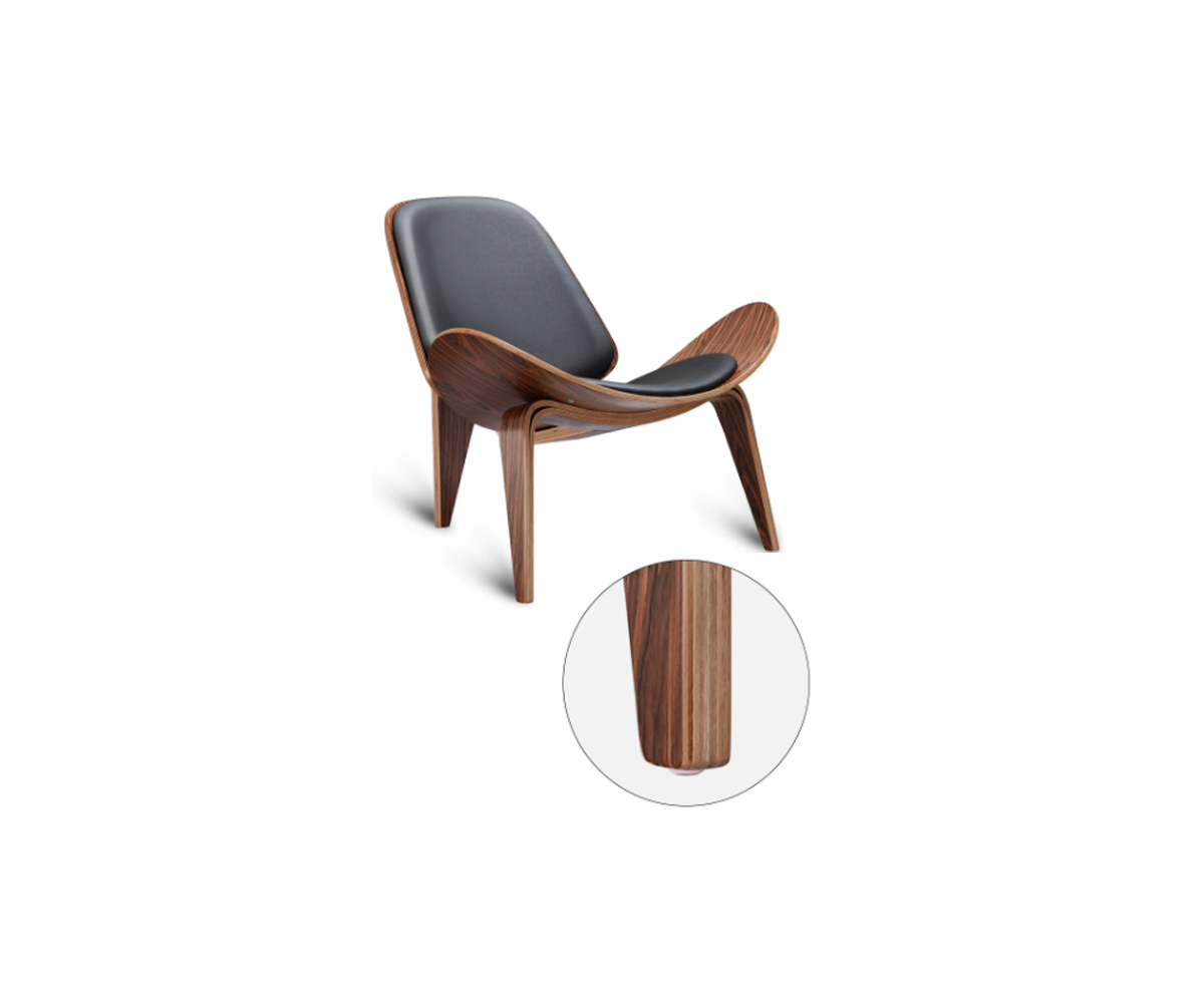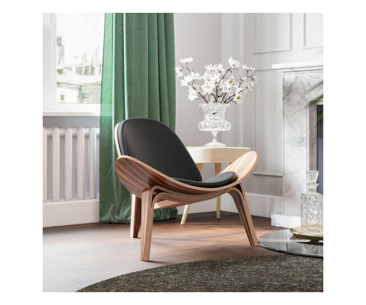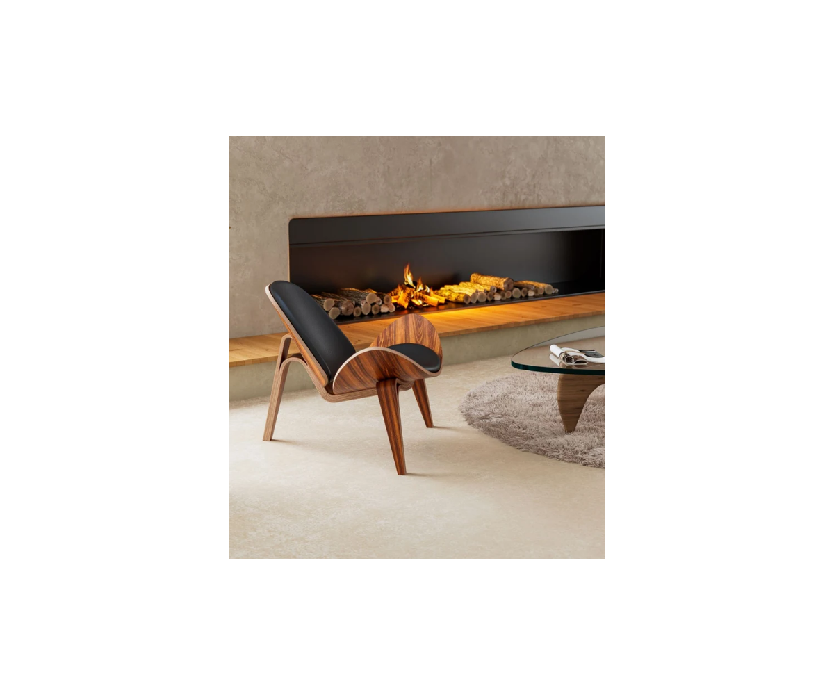 Sillón inspirado en un diseño de Hans J. Wegner y presentado por Carl Hansen and Son, de aspecto ligero por su asiento en forma de ala y respaldo curvo y sus tres patas arqueadas.