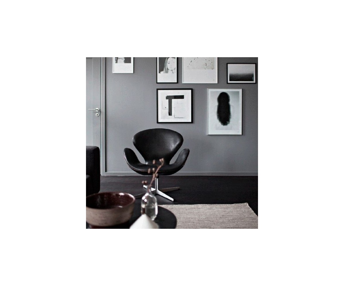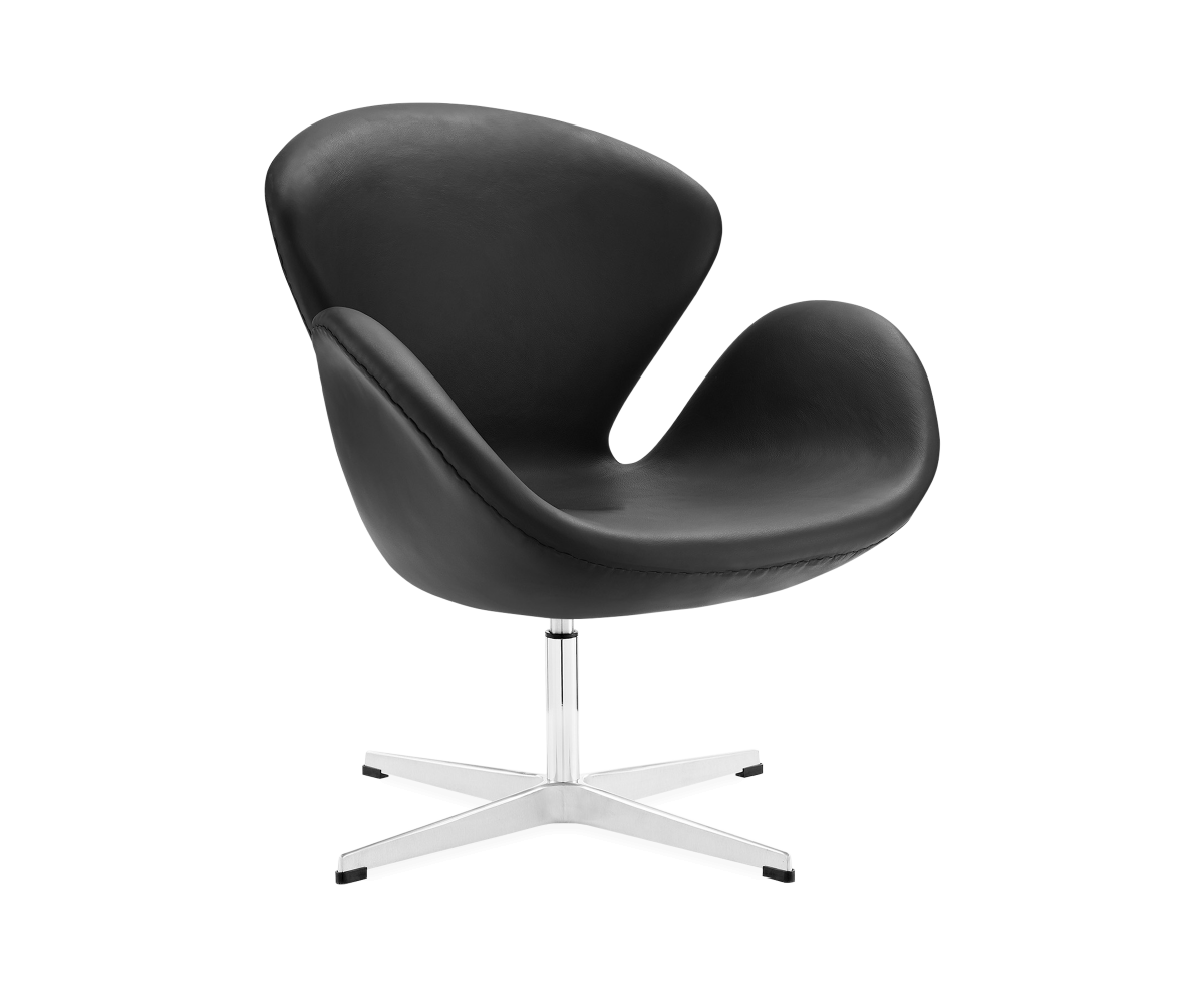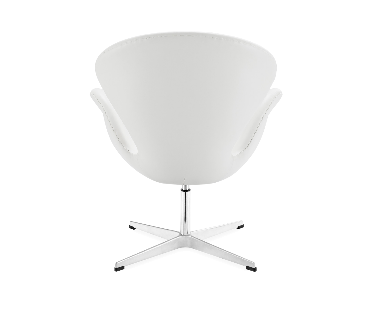 El sillón Cisne fué diseñado por Arne Jacobsen en 1958 para el vestíbulo y las áreas de descanso del SAS Royal Hotel en Copenhague. Es uno de los sillones más populares dentro de la colección de sillas de Fritz Hansen. Base de aluminio y acero satinado con cuerpo central tubular y cuatro aspas. Carcasa de acero con espuma inyectada de poliuretano y fibra de vidrio, tapizado en Piel Italiana terminación color blanco o negro, para otros colores consultar disponibilidad. También está disponible el sillón de respaldo algo (EGG) y la mesa centro con la misma base. Réplica exacta con materiales originales de máxima calidad.