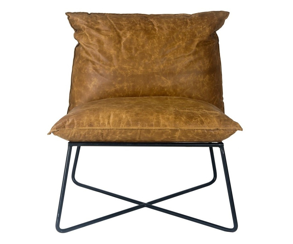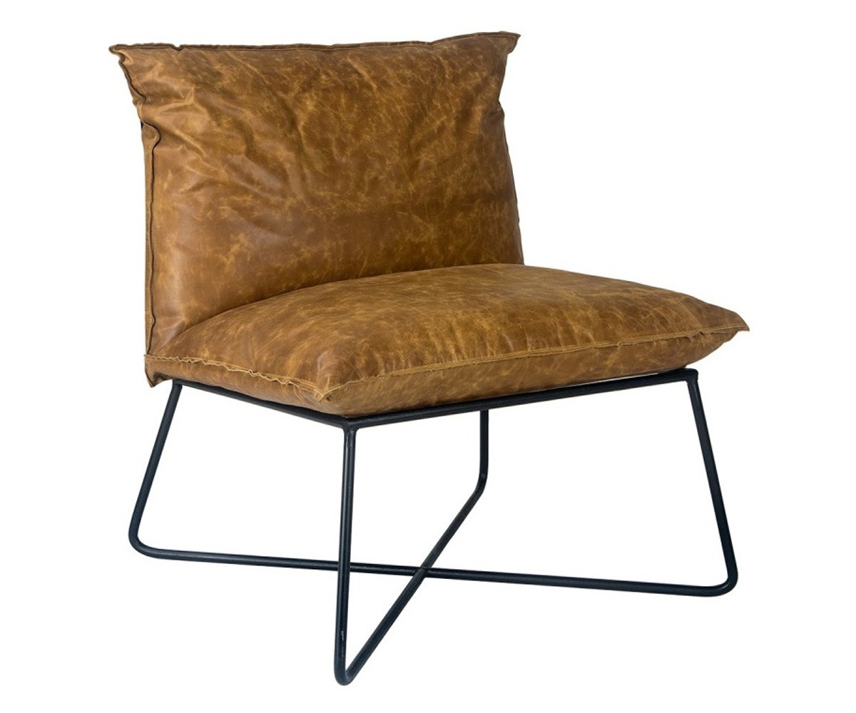 . Estructura fabricada en acero tubular terminación triple lacado color negro. Asiento y respalco cuadrados cosidos a mano en PIEL color marrón envejecido.11242