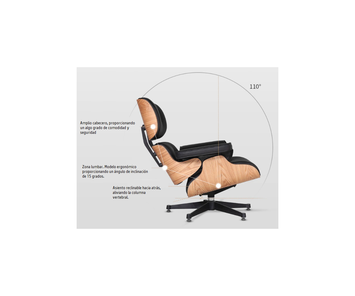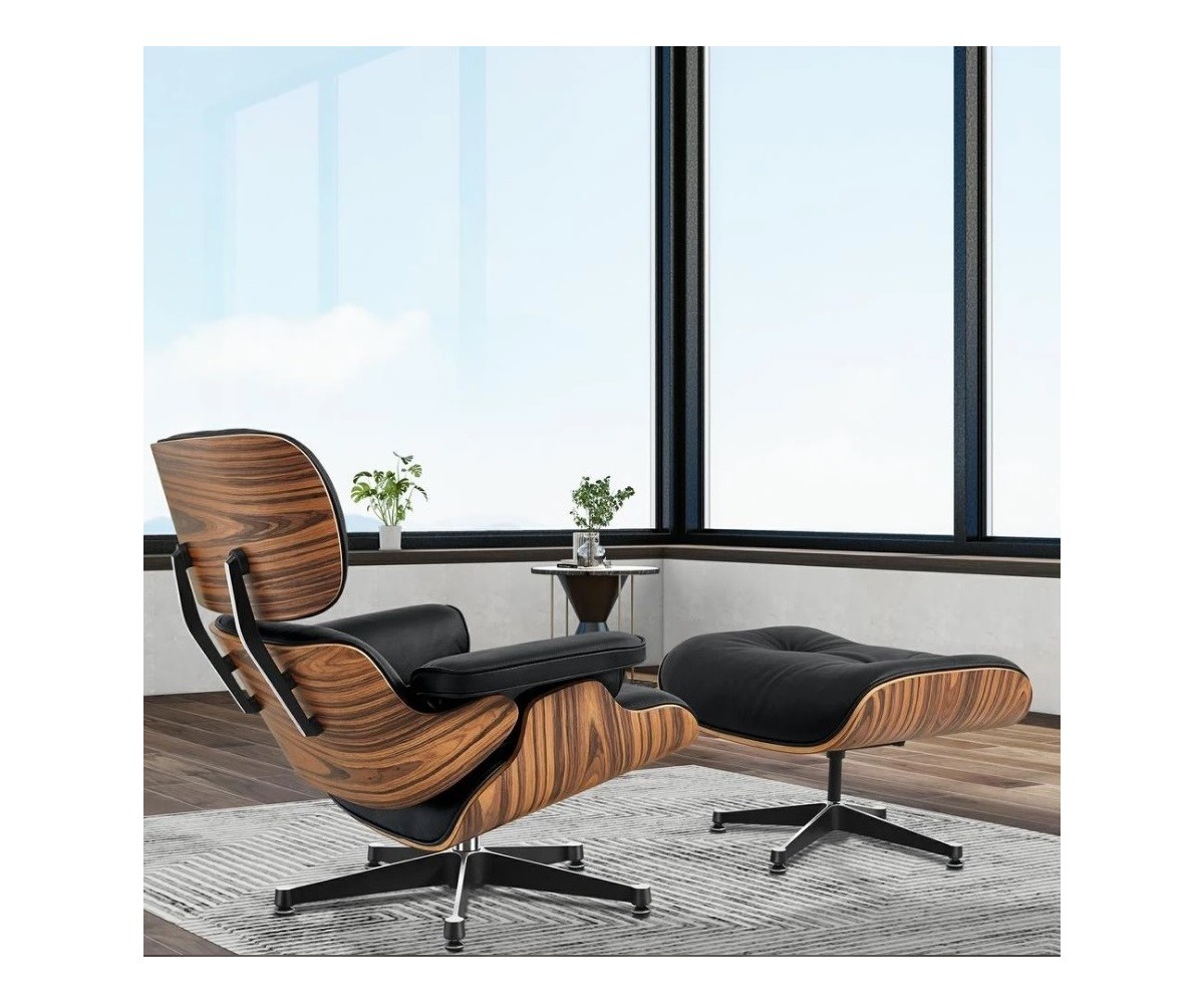 El sillón Lounge Chair & Ottoman, fué diseñada en 1956 y se ha convertido en un clásico atemporal, inspirado en un diseño de Charles & Ray Eames. Desde su inicio a alcanzado un estatus icónico. La pareja de diseñadores logró diseñar una versión elegante, cómoda y más ligera del sillón moderno y, gracias a su comodidad excepcional y su artesanía de alta calidad, el sillón es ahora uno de los clásicos del diseño más famosos