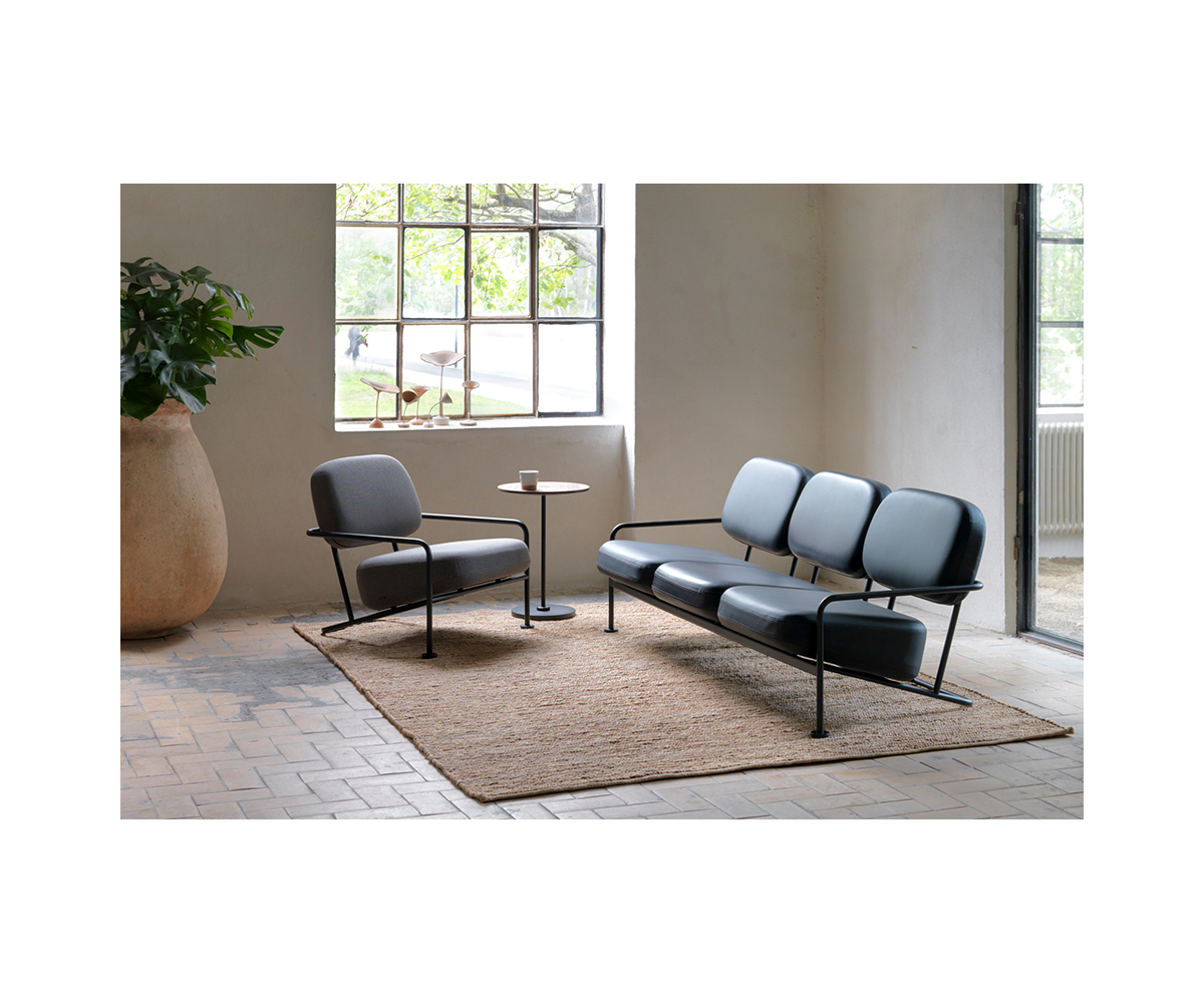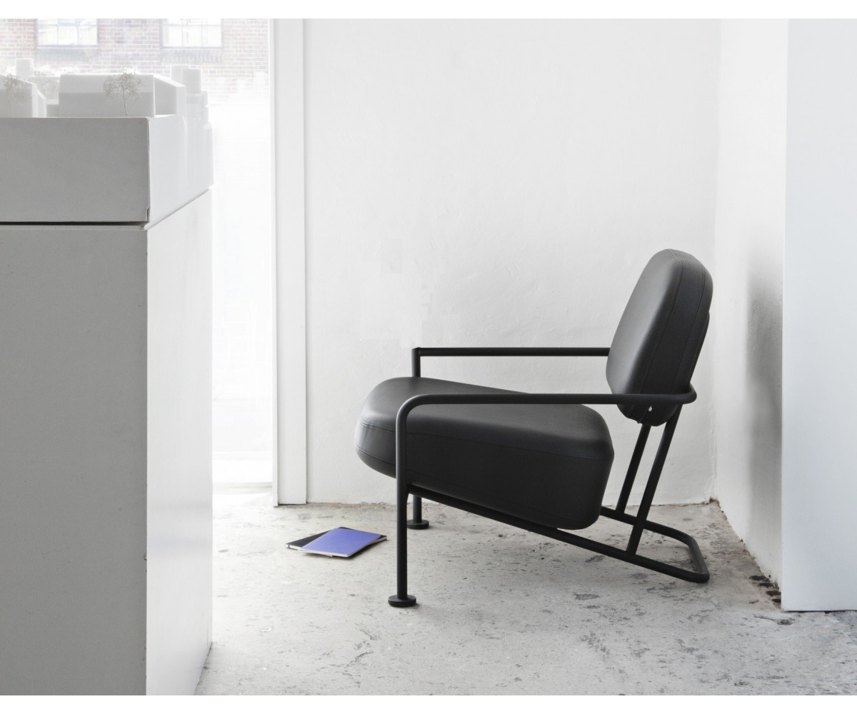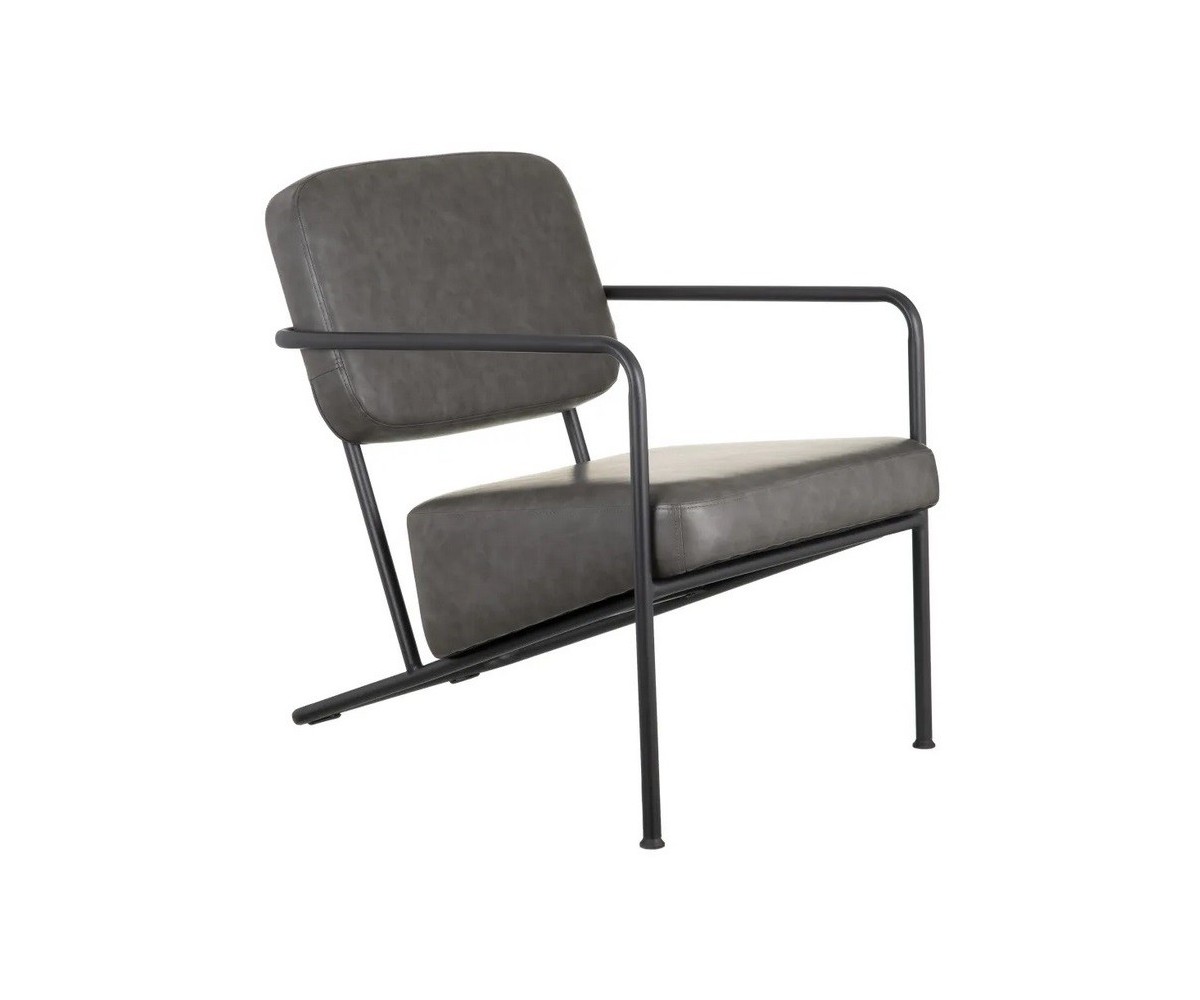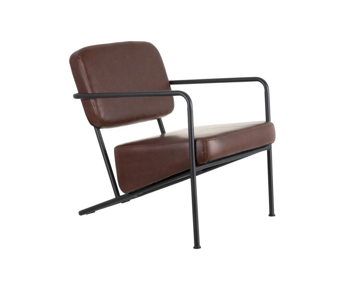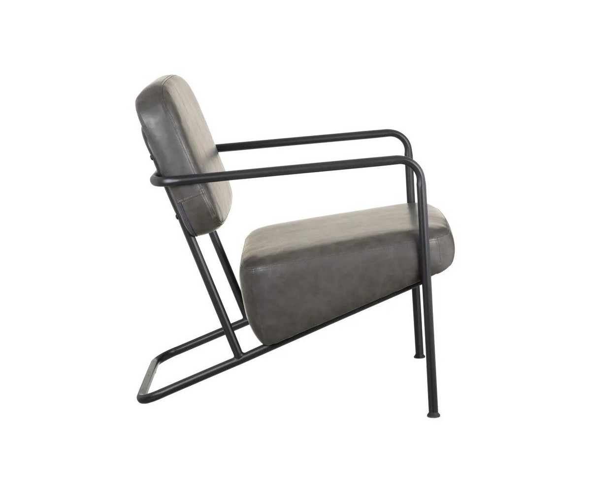 Butaca inspirada en un diseño de Outofstock para Bla Station. Fabricado en acero tubular lacado color negro. Asiento relleno de foam indeformable y madera contrachapada. Densidad 28. Tapizado en piel ecológica color marrón o gris. Réplica exacta con materiales originales de máxima calidad.